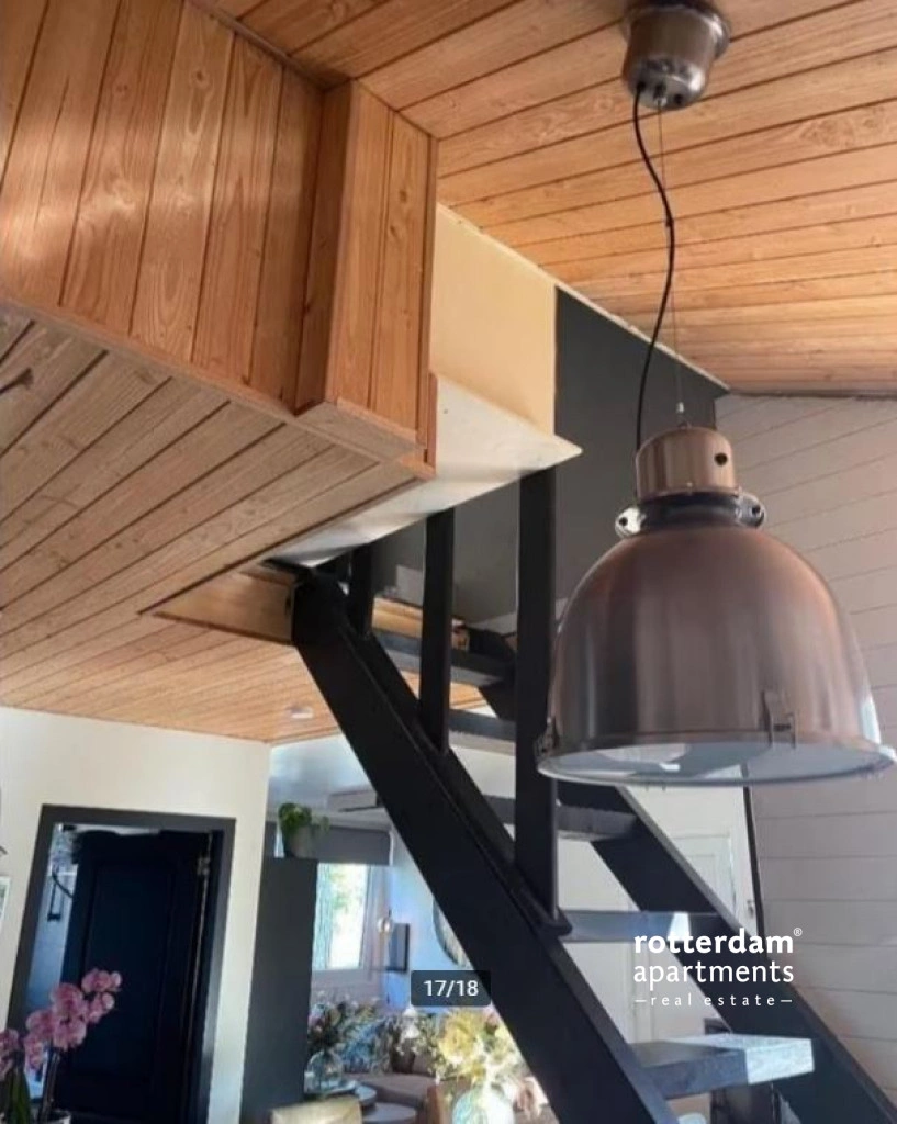 The hall provides access to the luxuriously furnished living room. The living room is furnished with a sofa, relax chair, fireplace and cozy dining area. The accommodation has an open kitchen with several built-in appliances such as an oven and gas hob. The bathroom has a double washbasin, jacuzzi and toilet. In the living room you will find the stairs to the bedroom.