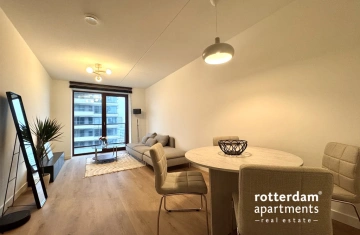 SNEAK PEEK! A brand-new furnished 1-bedroom apartment in the new Downtown residential tower at the Baan in the heart of Rotterdam. Located on the 14th floor it offers stunning city views.