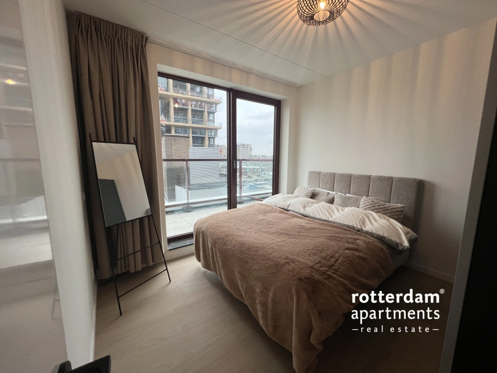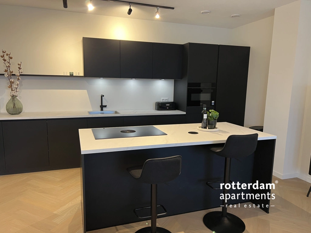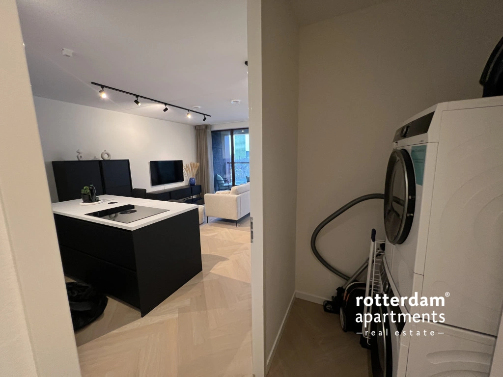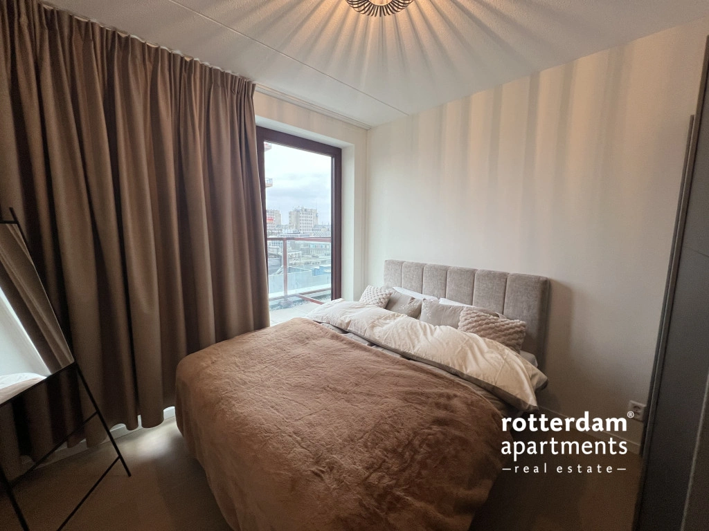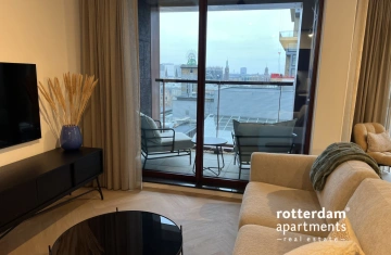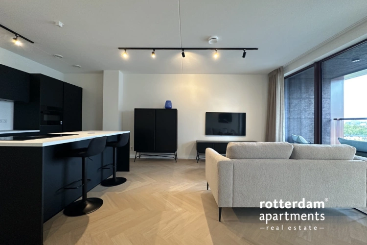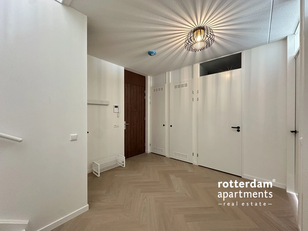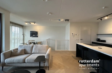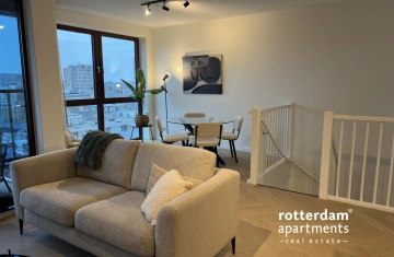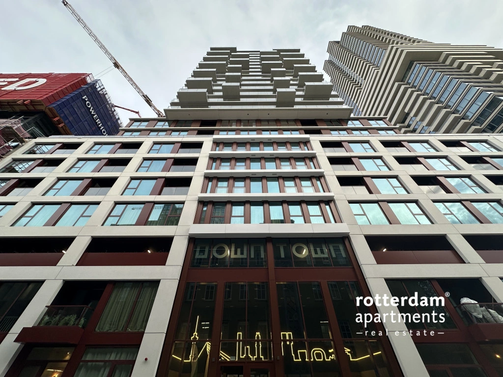 This beautiful apartment offers luxurious and comfortable living. It features underfloor heating and cooling, high-quality finishes, and two balconies with stunning city views. The apartment is located in Downtown Baan, a dynamic and popular neighborhood in the heart of Rotterdam. It offers a central location, within walking distance of shops, restaurants, and charming cafés. Public transport is easily accessible, with Blaak metro station just a few minutes' walk away and Rotterdam Central Station nearby. The neighborhood offers both the convenience of city life and the tranquility of modern developments in a vibrant setting. Major attractions such as the Markthal, the Cube Houses, and the Erasmus Bridge are also within easy reach.