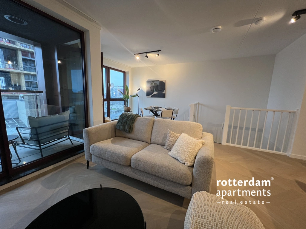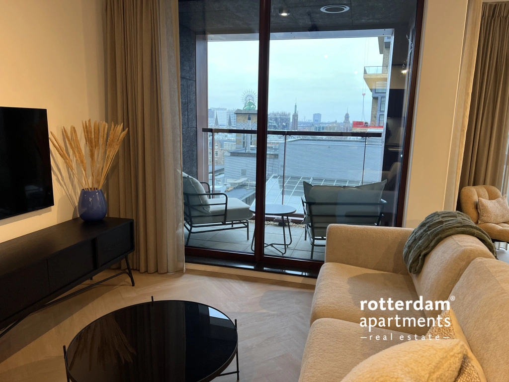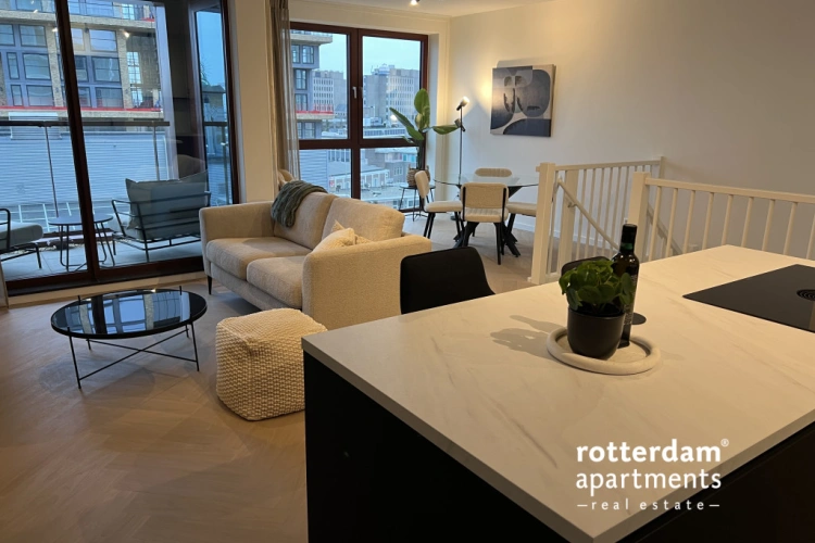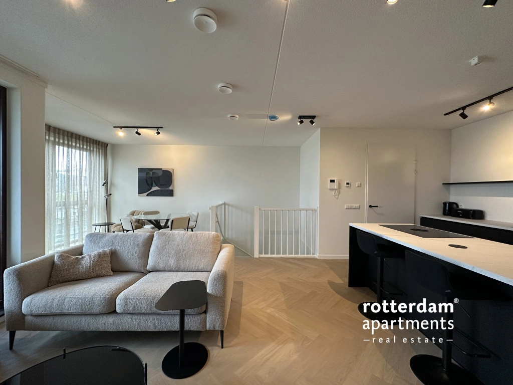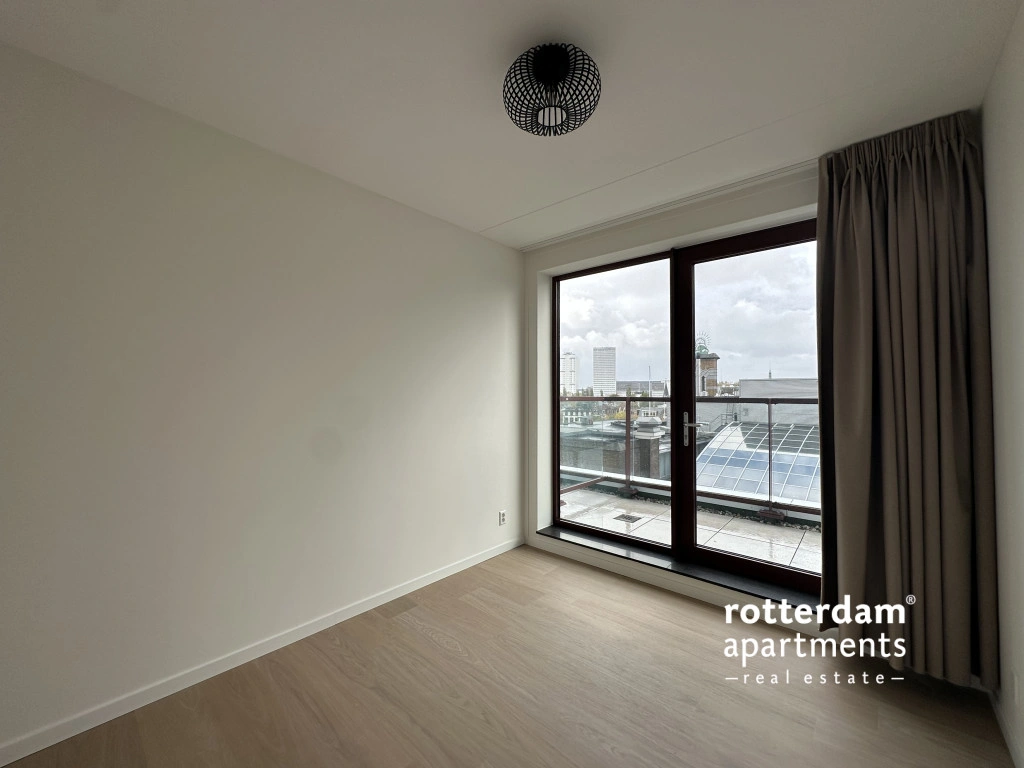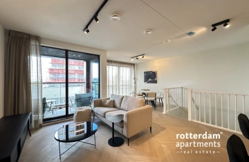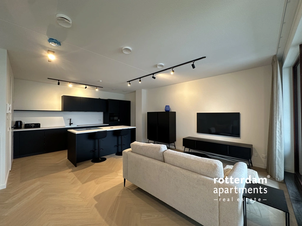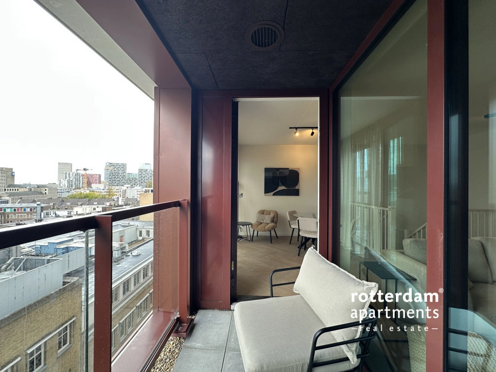 This beautiful apartment offers luxurious and comfortable living. It features underfloor heating and cooling, high-quality finishes, and two balconies with stunning city views. The apartment is located in Downtown Baan, a dynamic and popular neighborhood in the heart of Rotterdam. It offers a central location, within walking distance of shops, restaurants, and charming cafés. Public transport is easily accessible, with Blaak metro station just a few minutes' walk away and Rotterdam Central Station nearby. The neighborhood offers both the convenience of city life and the tranquility of modern developments in a vibrant setting. Major attractions such as the Markthal, the Cube Houses, and the Erasmus Bridge are also within easy reach.