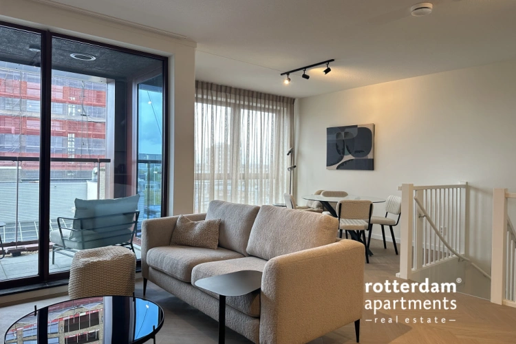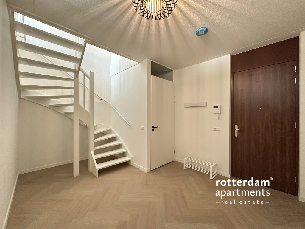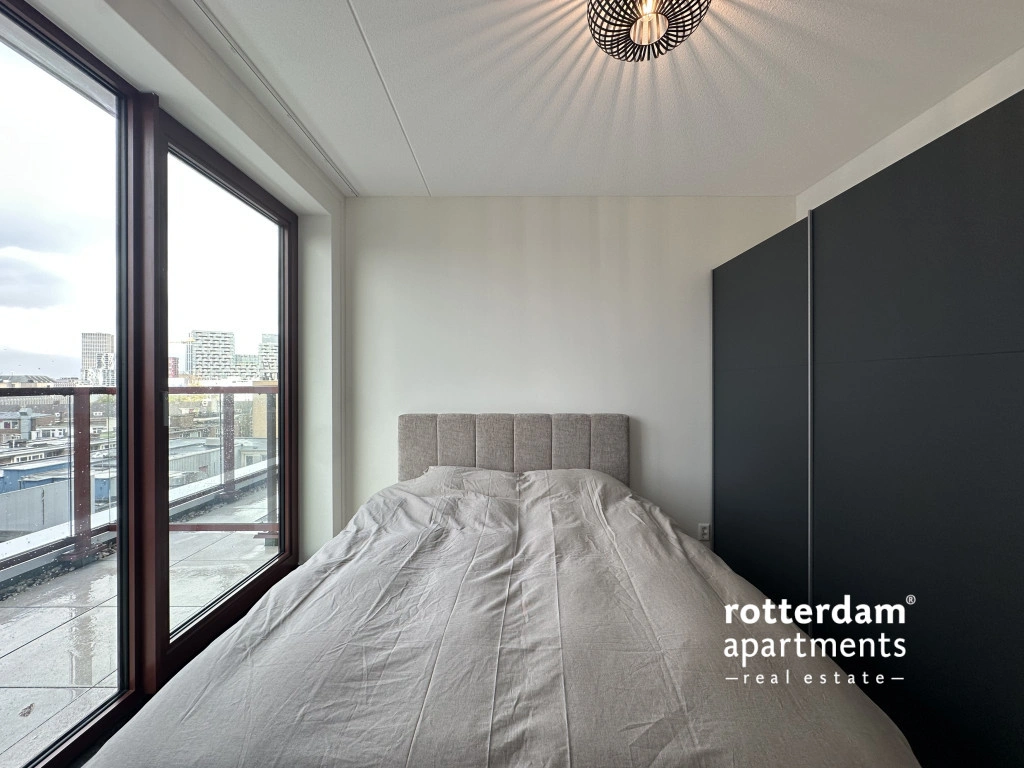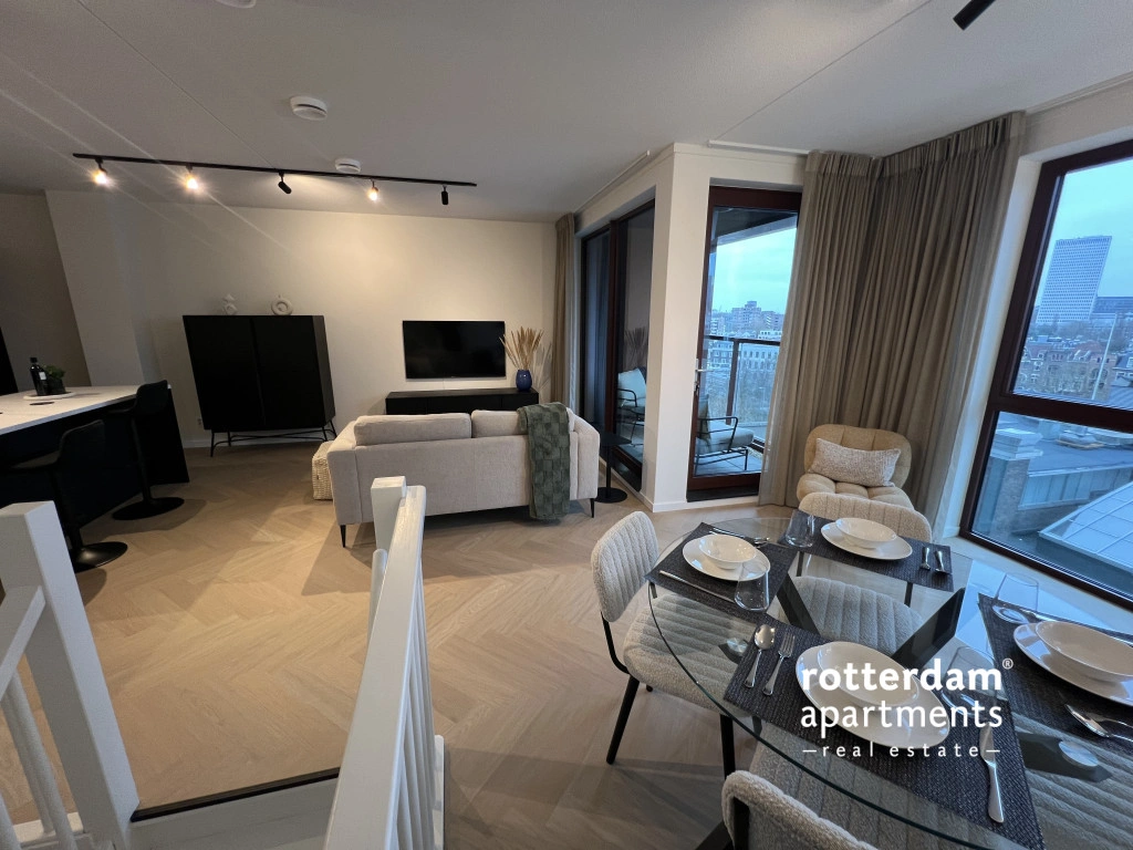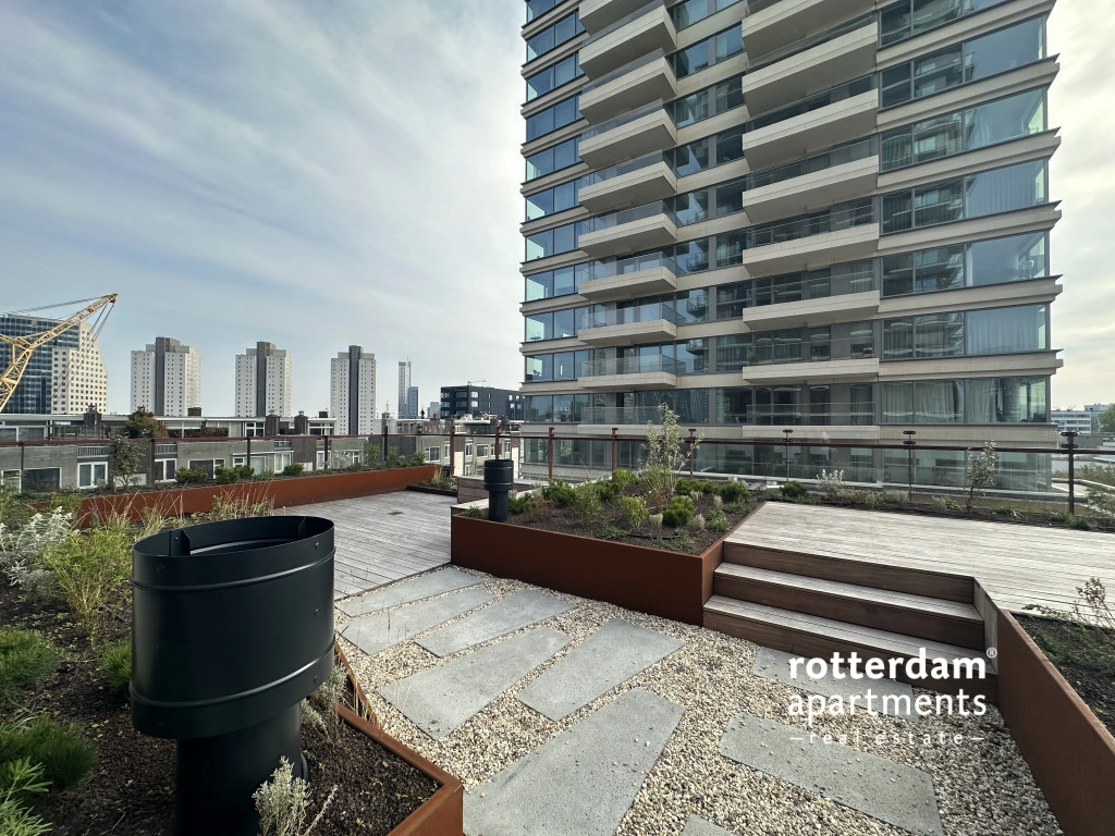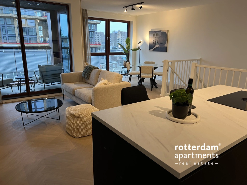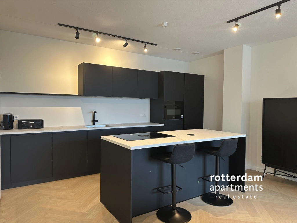 This beautiful apartment offers luxurious and comfortable living. It features underfloor heating and cooling, high-quality finishes, and two balconies with stunning city views. The apartment is located in Downtown Baan, a dynamic and popular neighborhood in the heart of Rotterdam. It offers a central location, within walking distance of shops, restaurants, and charming cafés. Public transport is easily accessible, with Blaak metro station just a few minutes' walk away and Rotterdam Central Station nearby. The neighborhood offers both the convenience of city life and the tranquility of modern developments in a vibrant setting. Major attractions such as the Markthal, the Cube Houses, and the Erasmus Bridge are also within easy reach.