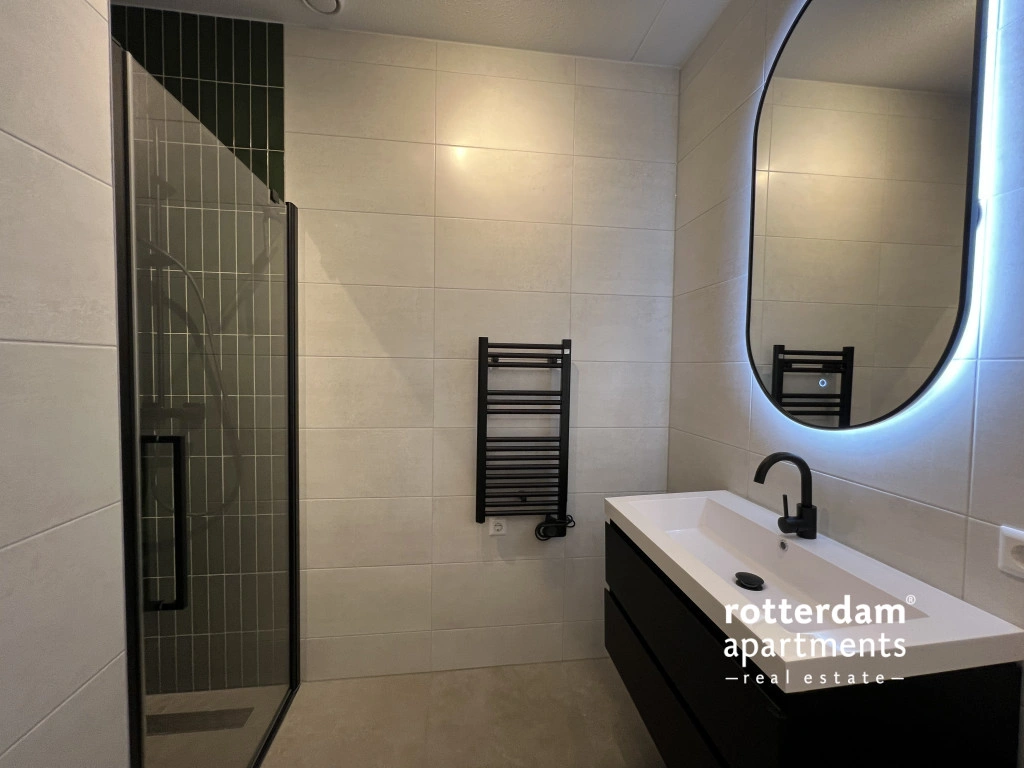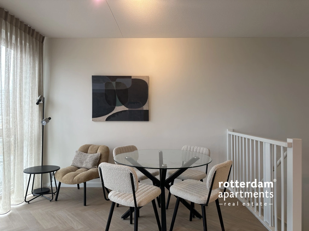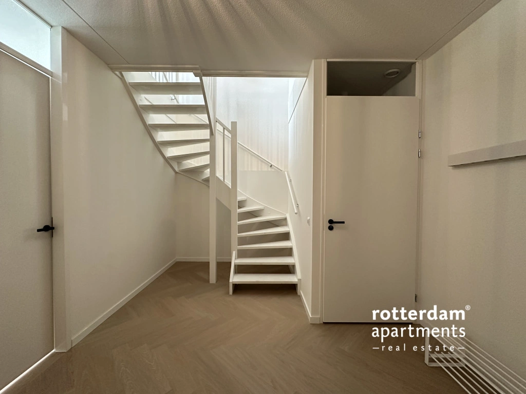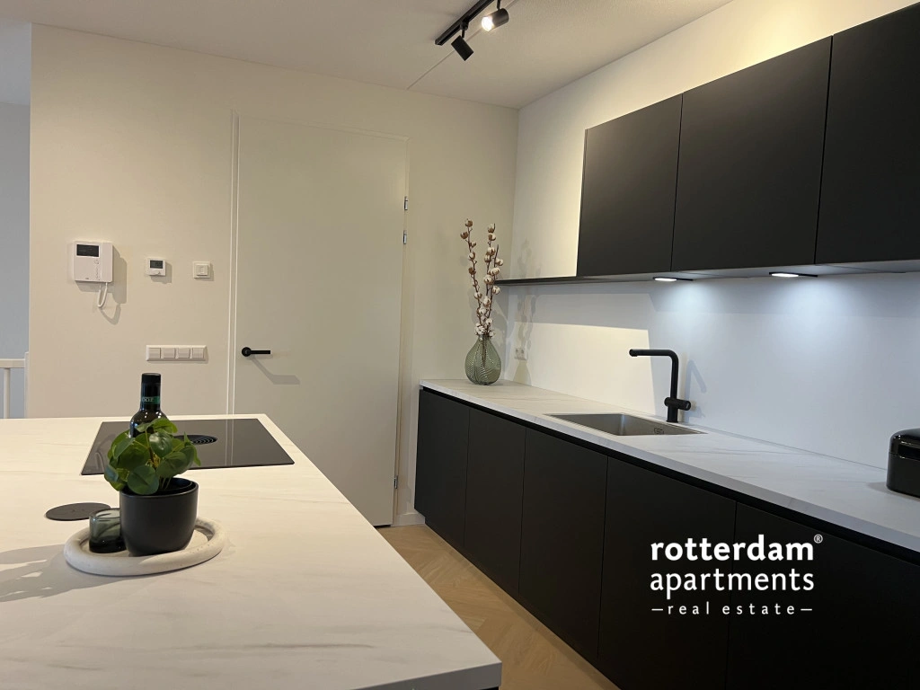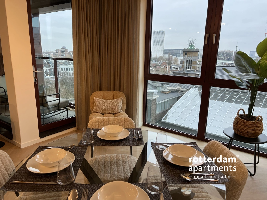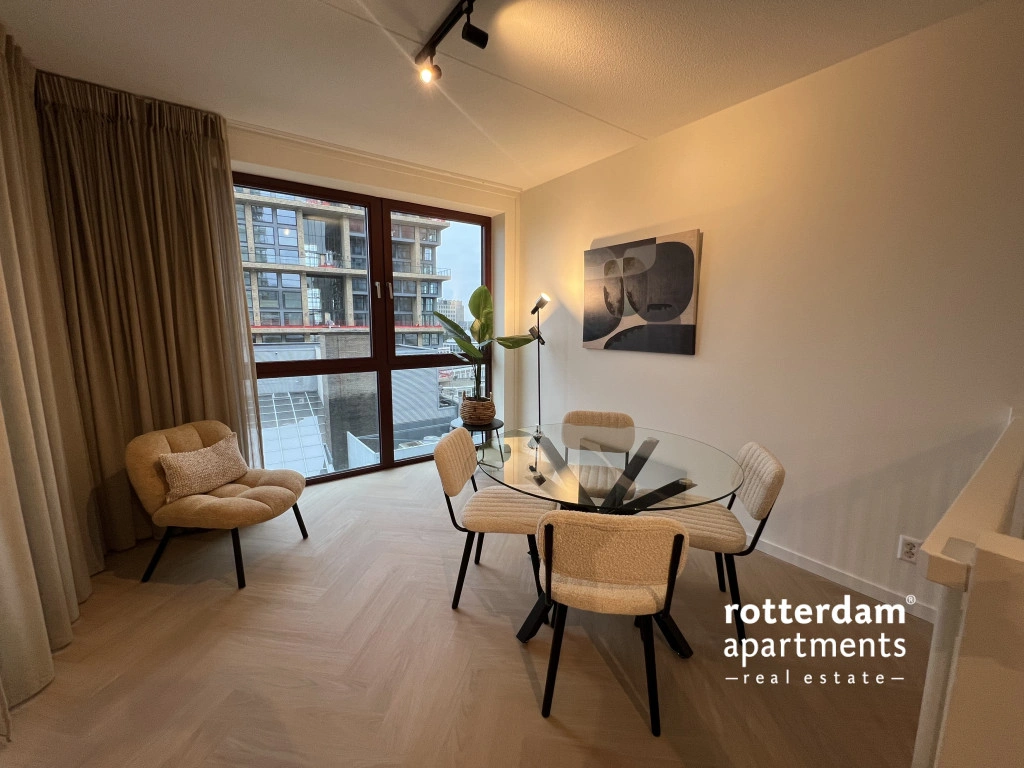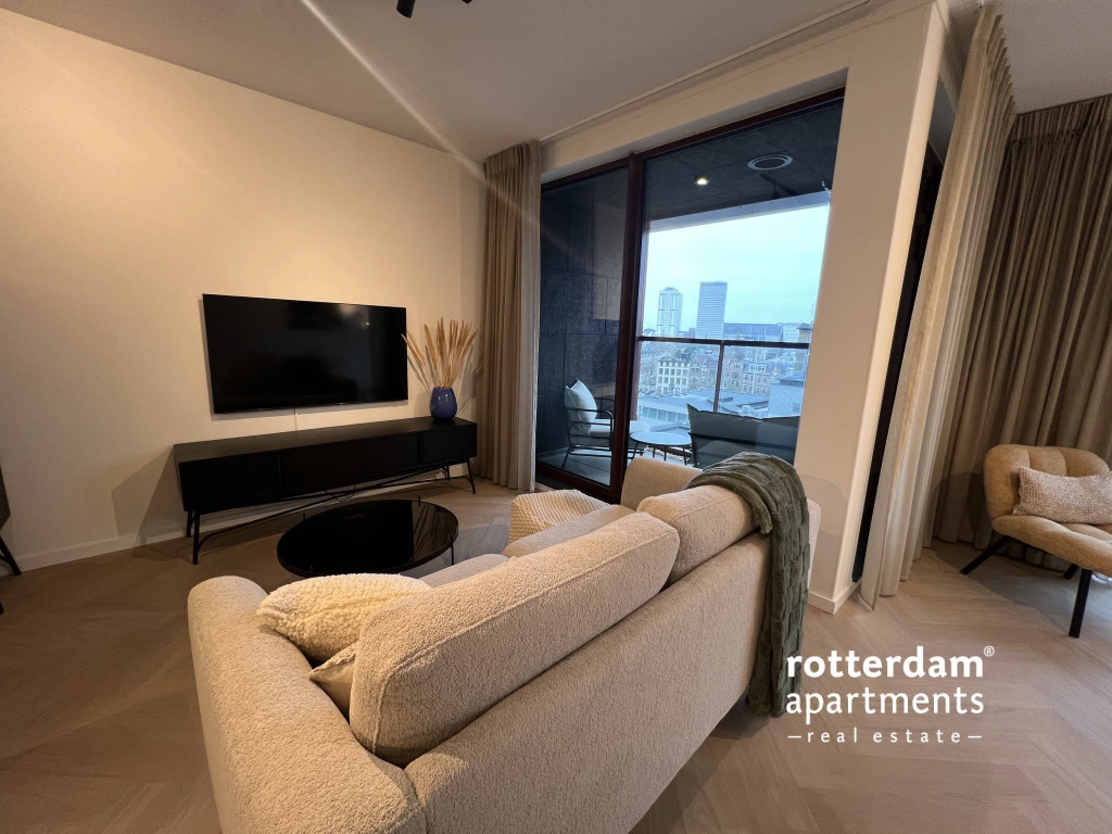 This beautiful apartment offers luxurious and comfortable living. It features underfloor heating and cooling, high-quality finishes, and two balconies with stunning city views. The apartment is located in Downtown Baan, a dynamic and popular neighborhood in the heart of Rotterdam. It offers a central location, within walking distance of shops, restaurants, and charming cafés. Public transport is easily accessible, with Blaak metro station just a few minutes' walk away and Rotterdam Central Station nearby. The neighborhood offers both the convenience of city life and the tranquility of modern developments in a vibrant setting. Major attractions such as the Markthal, the Cube Houses, and the Erasmus Bridge are also within easy reach.