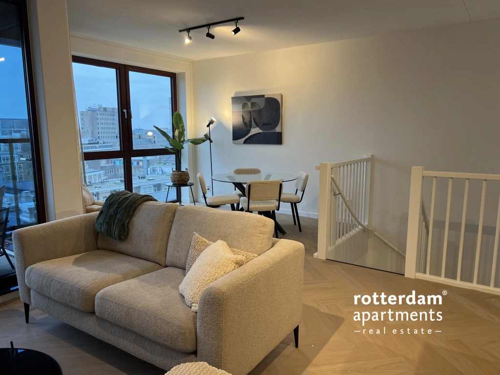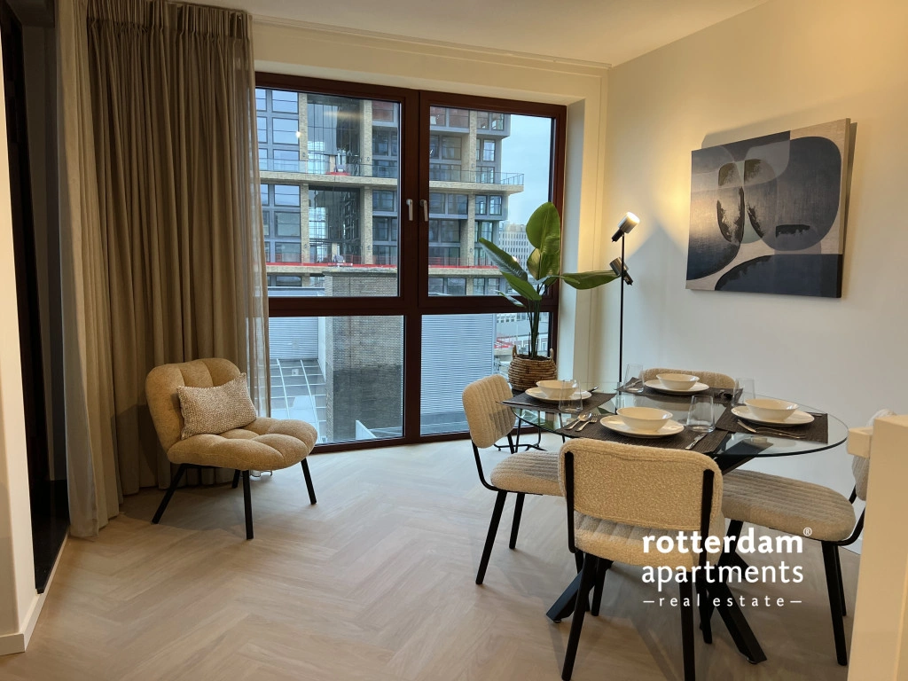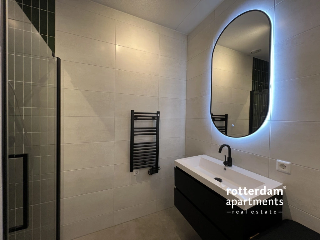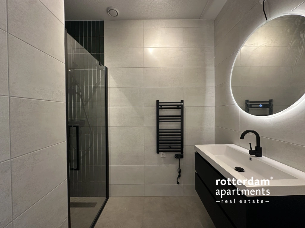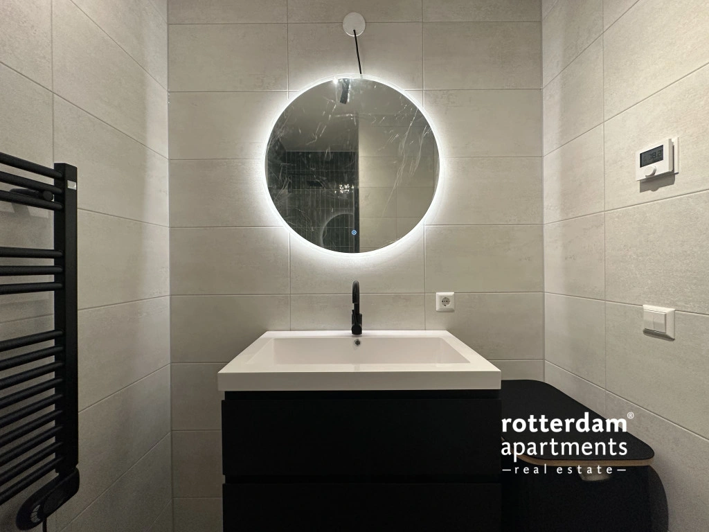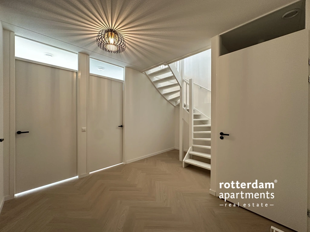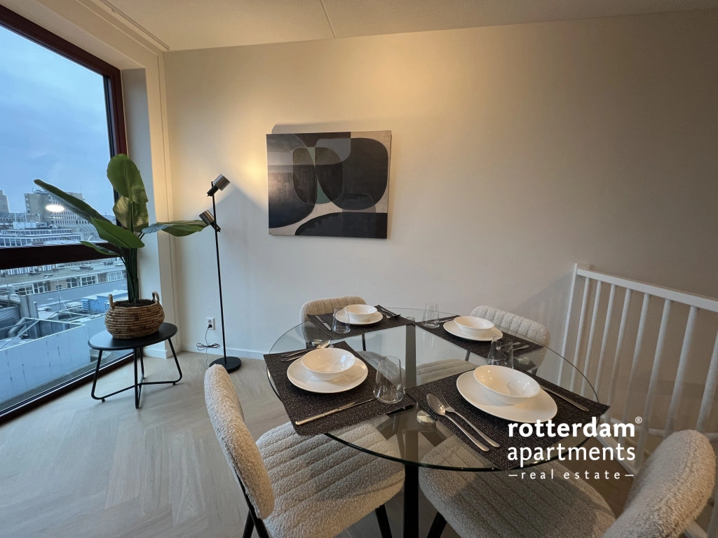 This beautiful apartment offers luxurious and comfortable living. It features underfloor heating and cooling, high-quality finishes, and two balconies with stunning city views. The apartment is located in Downtown Baan, a dynamic and popular neighborhood in the heart of Rotterdam. It offers a central location, within walking distance of shops, restaurants, and charming cafés. Public transport is easily accessible, with Blaak metro station just a few minutes' walk away and Rotterdam Central Station nearby. The neighborhood offers both the convenience of city life and the tranquility of modern developments in a vibrant setting. Major attractions such as the Markthal, the Cube Houses, and the Erasmus Bridge are also within easy reach.
