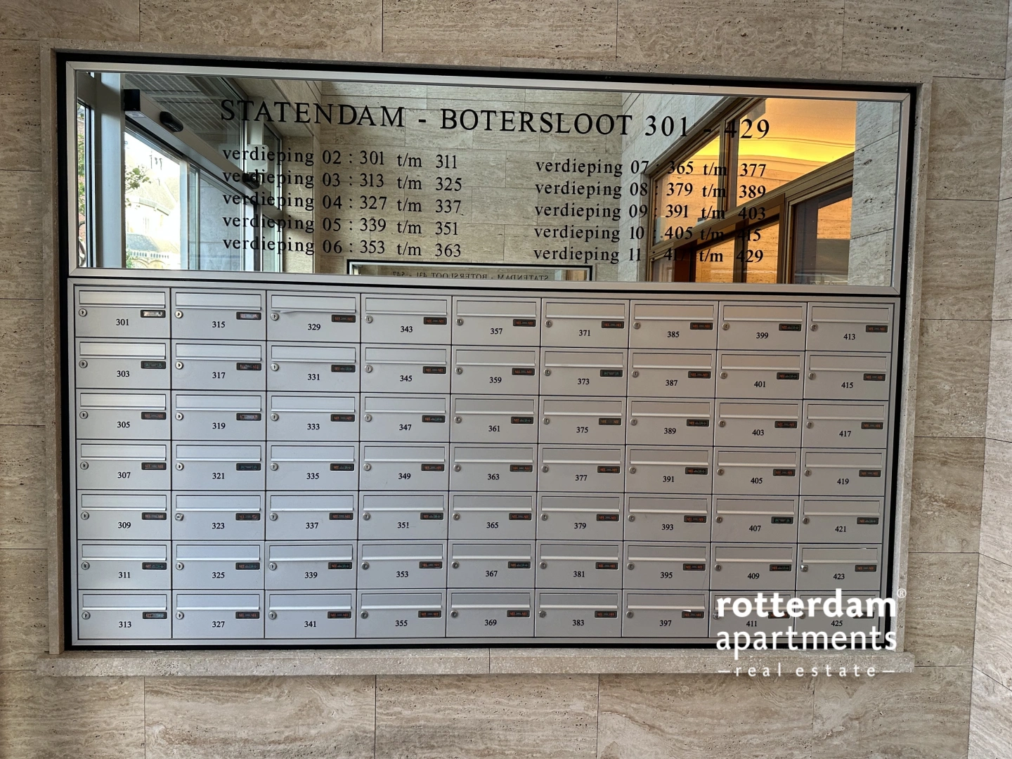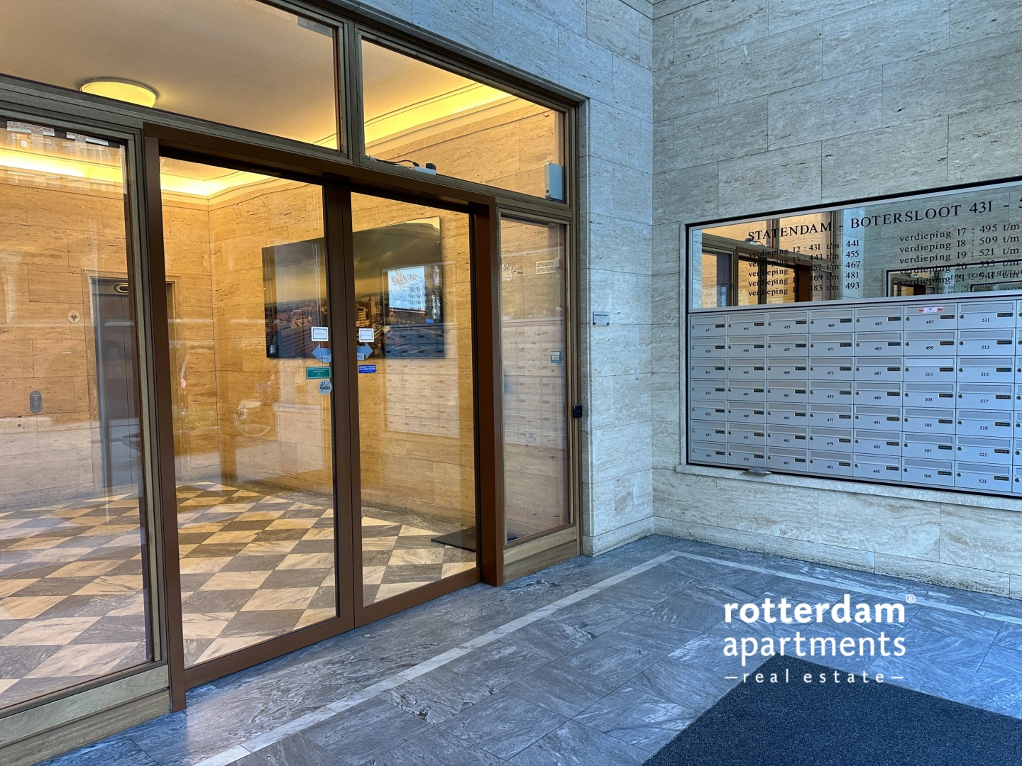Representative entrance on the ground floor with intercom, access to the storage rooms, elevators and the stairwell.