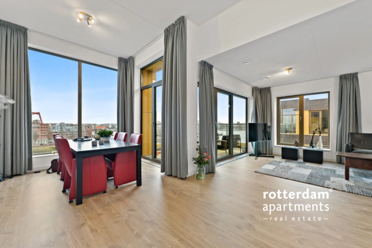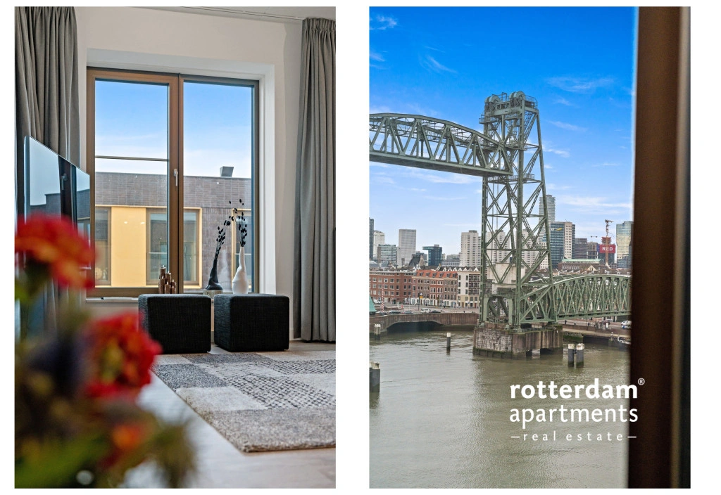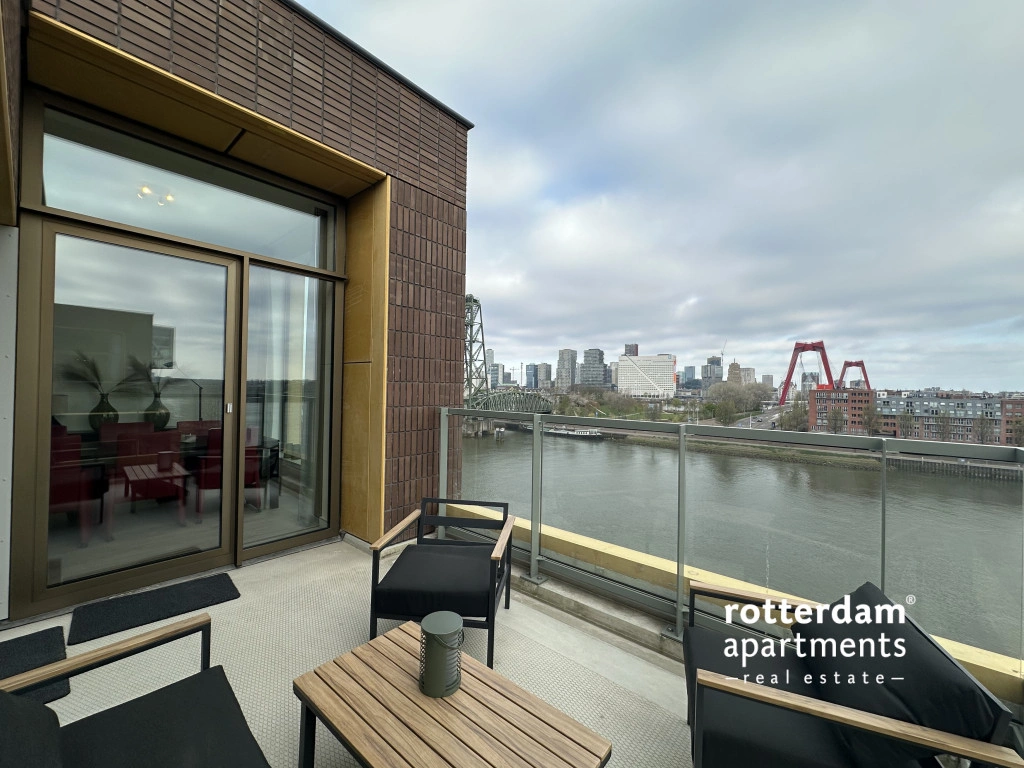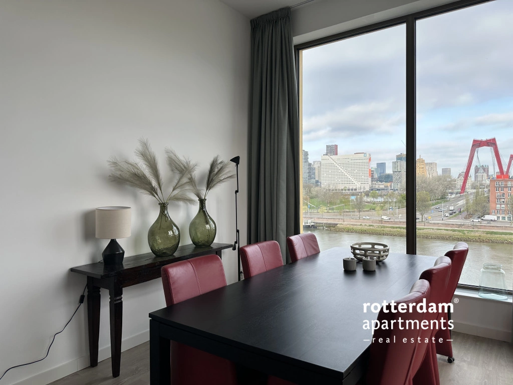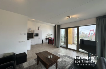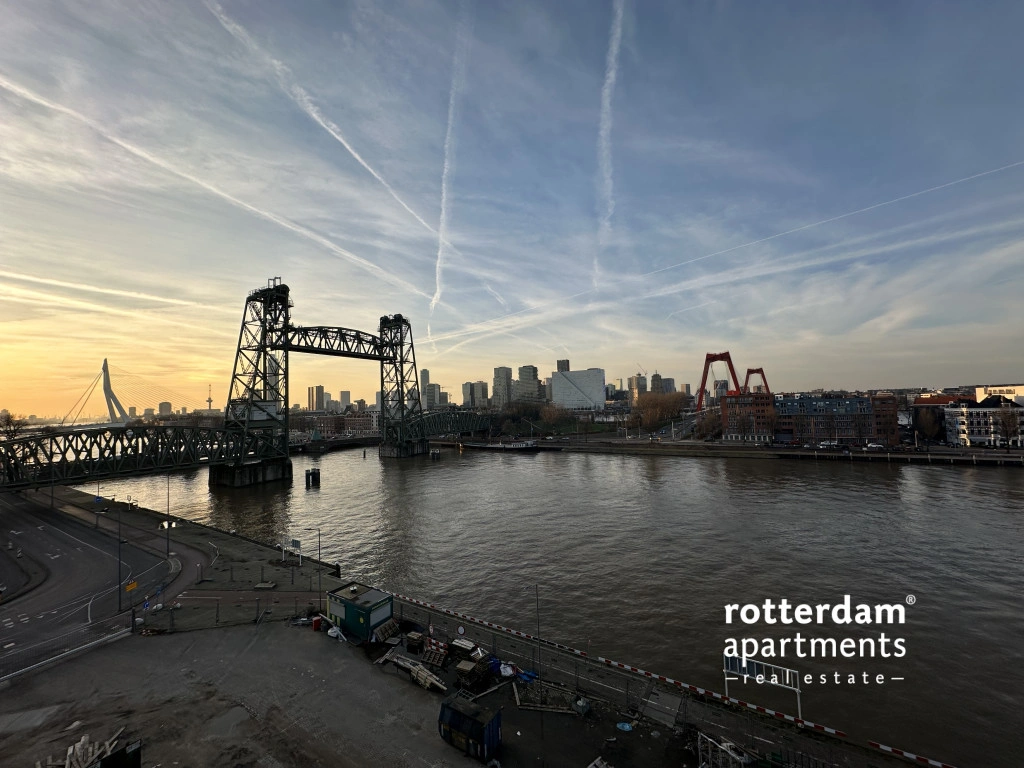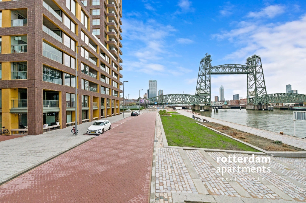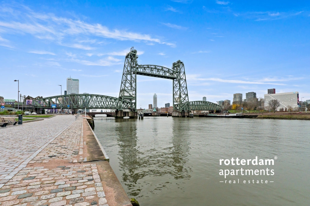 The view of the Willemsbrug, the Hef and the Rotterdam skyline is truly breathtaking. Whether you sit inside or outside on the terrace, you can enjoy the best the city has to offer every day. You are right between the Erasmus Bridge and the Willems Bridge, with the center of Rotterdam just a 5-minute bike ride away. The connections are excellent: public transport, highways and even water transport are all close by. There are also various supermarkets, restaurants and walking routes along the water within easy reach.