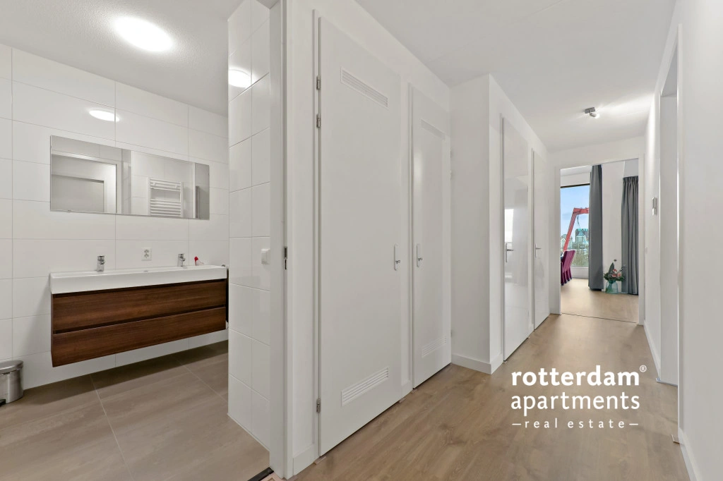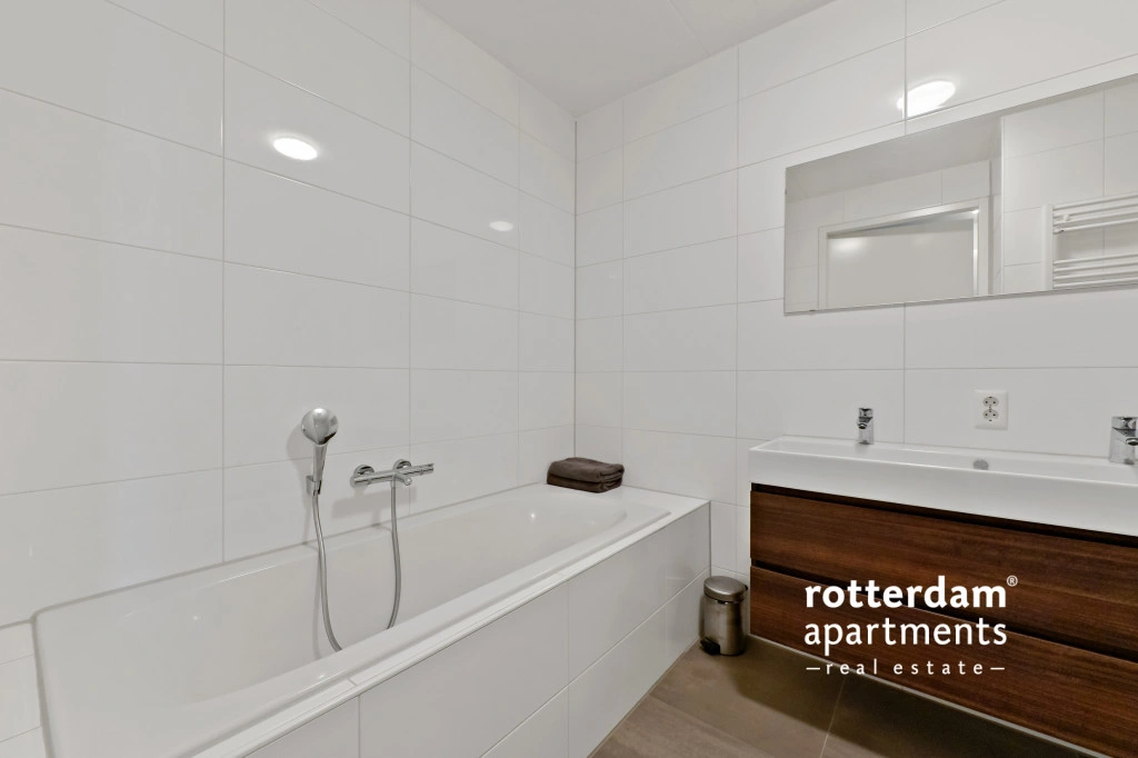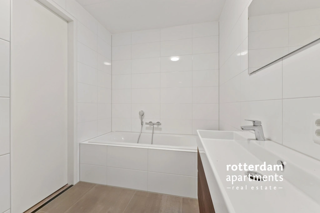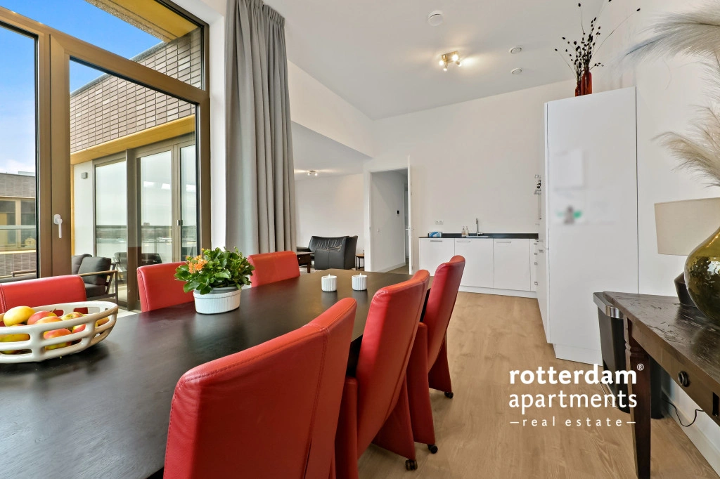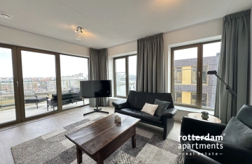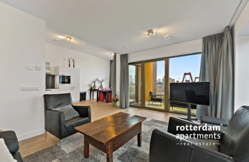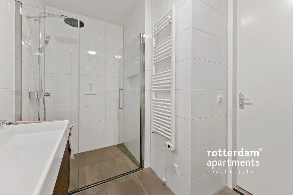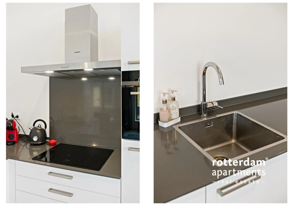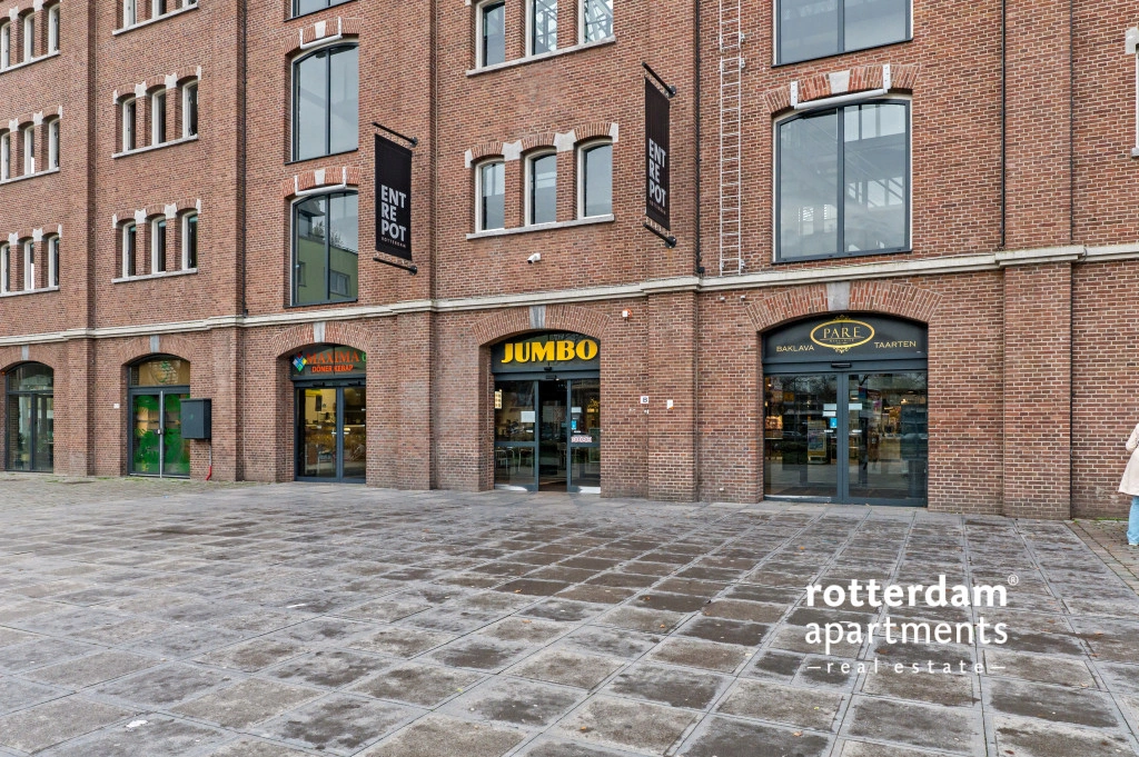 The view of the Willemsbrug, the Hef and the Rotterdam skyline is truly breathtaking. Whether you sit inside or outside on the terrace, you can enjoy the best the city has to offer every day. You are right between the Erasmus Bridge and the Willems Bridge, with the center of Rotterdam just a 5-minute bike ride away. The connections are excellent: public transport, highways and even water transport are all close by. There are also various supermarkets, restaurants and walking routes along the water within easy reach.