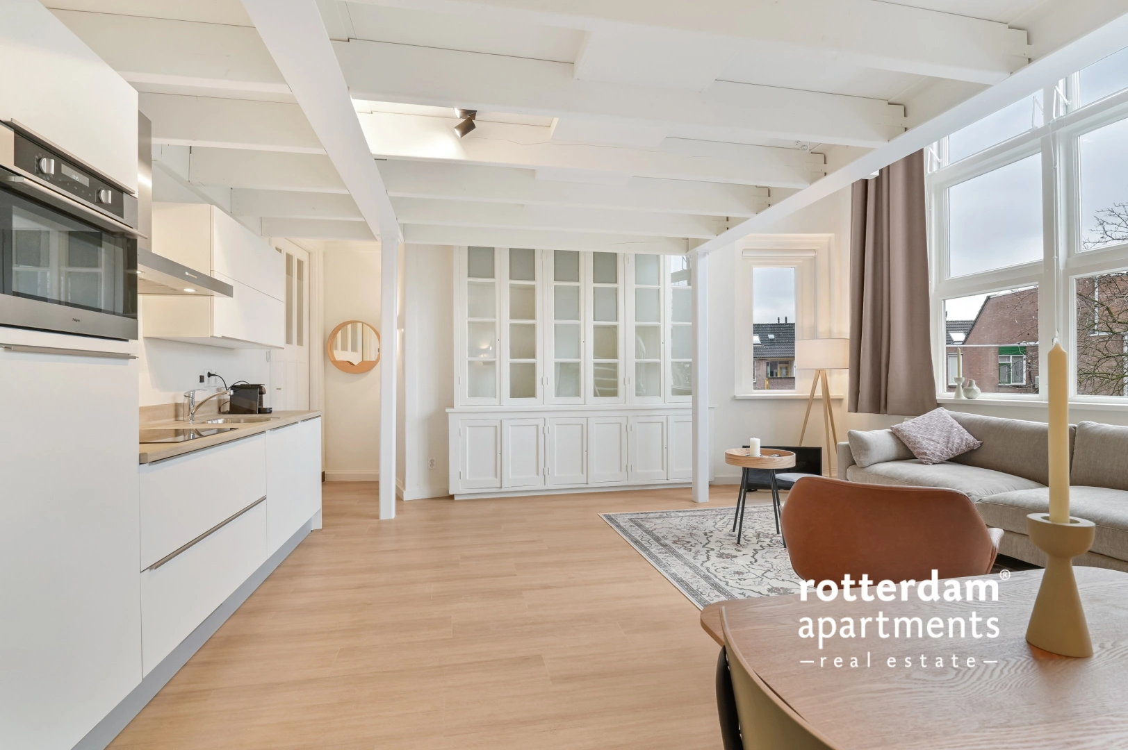 neutral and modern, yet cozy in an urban style.