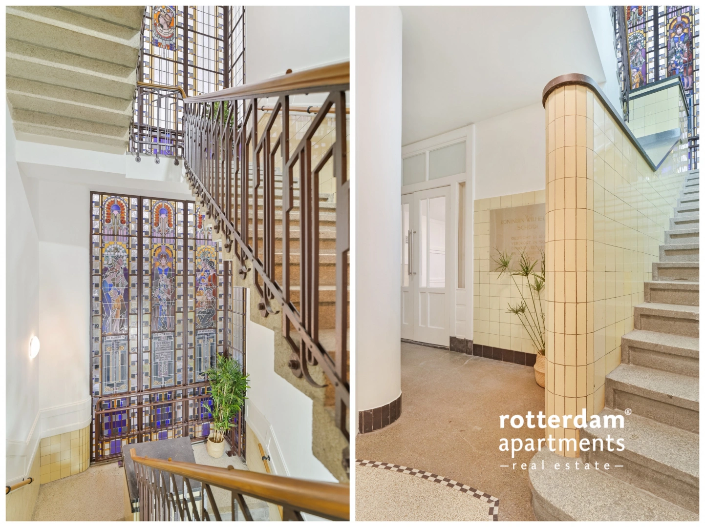 On one of the most beautiful canals in Rotterdam, 27 loft apartments have been realized in a historic school building. The former