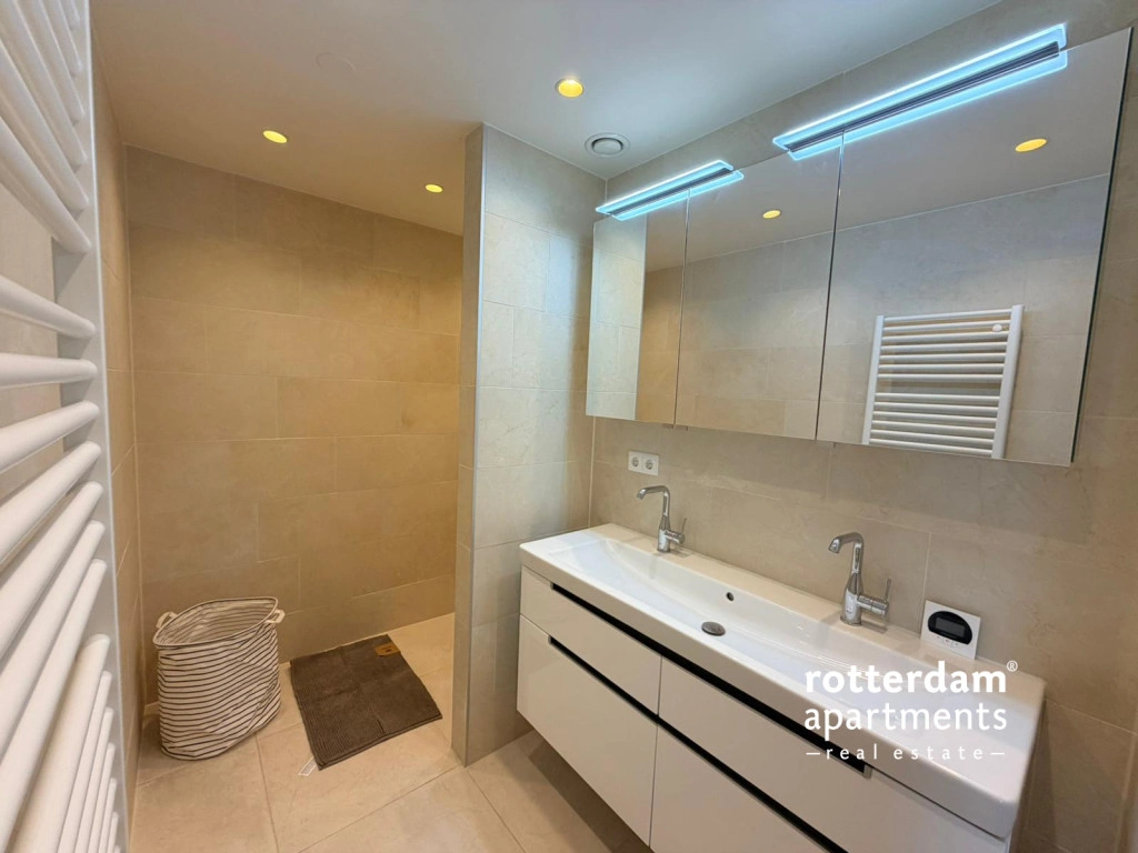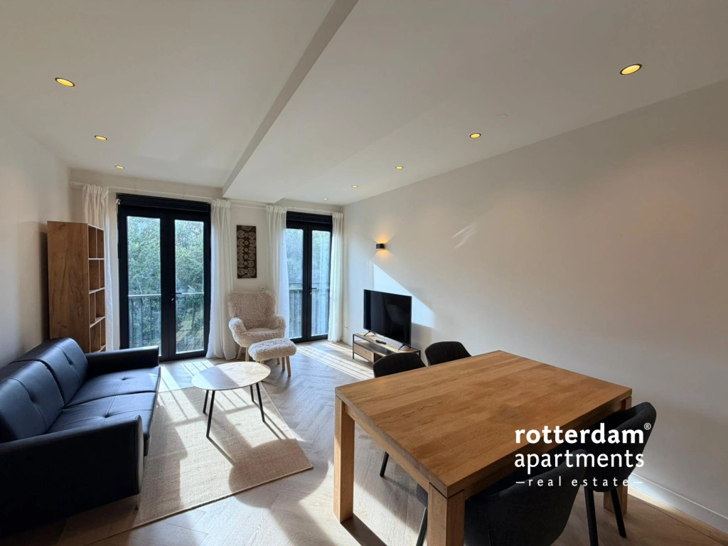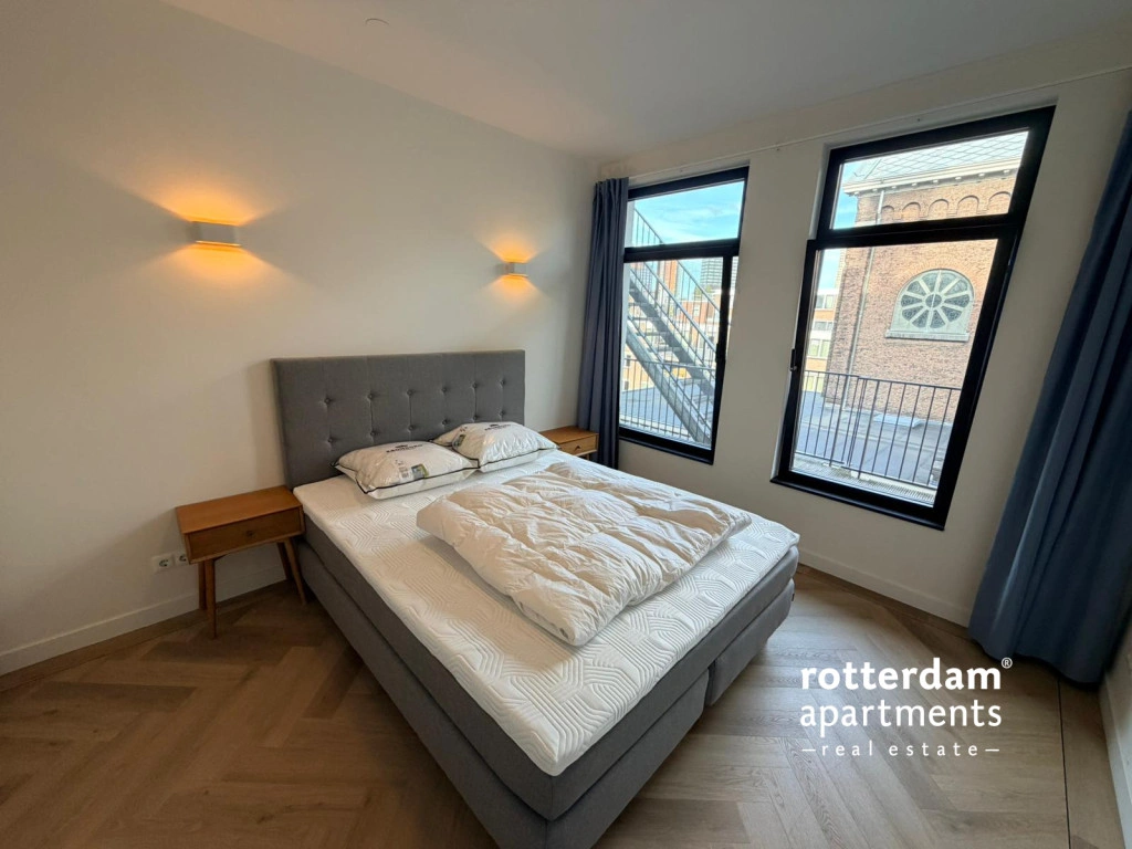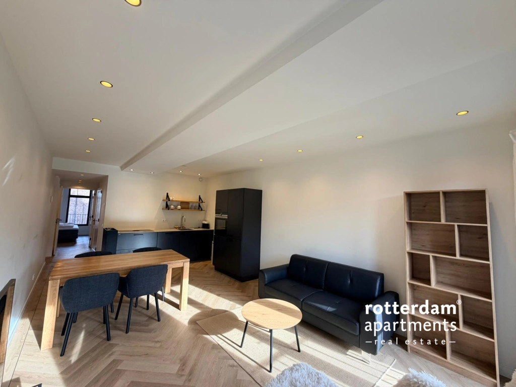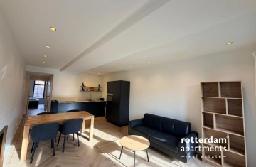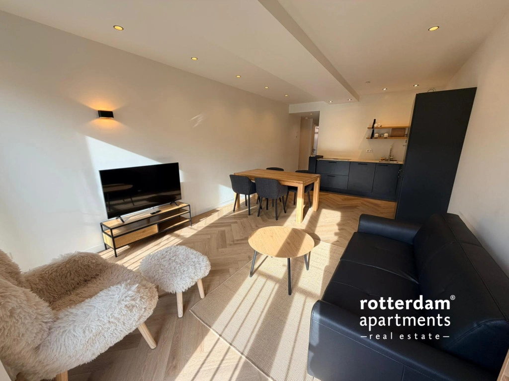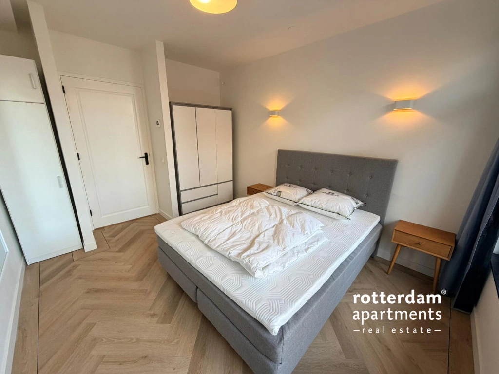 Furnished 1-bedroom apartment on the 3rd floor in the center of Rotterdam. This newly built apartment has a high-quality finish with underfloor heating, automatic blinds, Siemens Studio Line equipment and underfloor heating. Around the corner from all restaurants and shops and public transport. Central station at 10 minutes walking distance.The apartment will be fully furnished and is only available for 6 months.