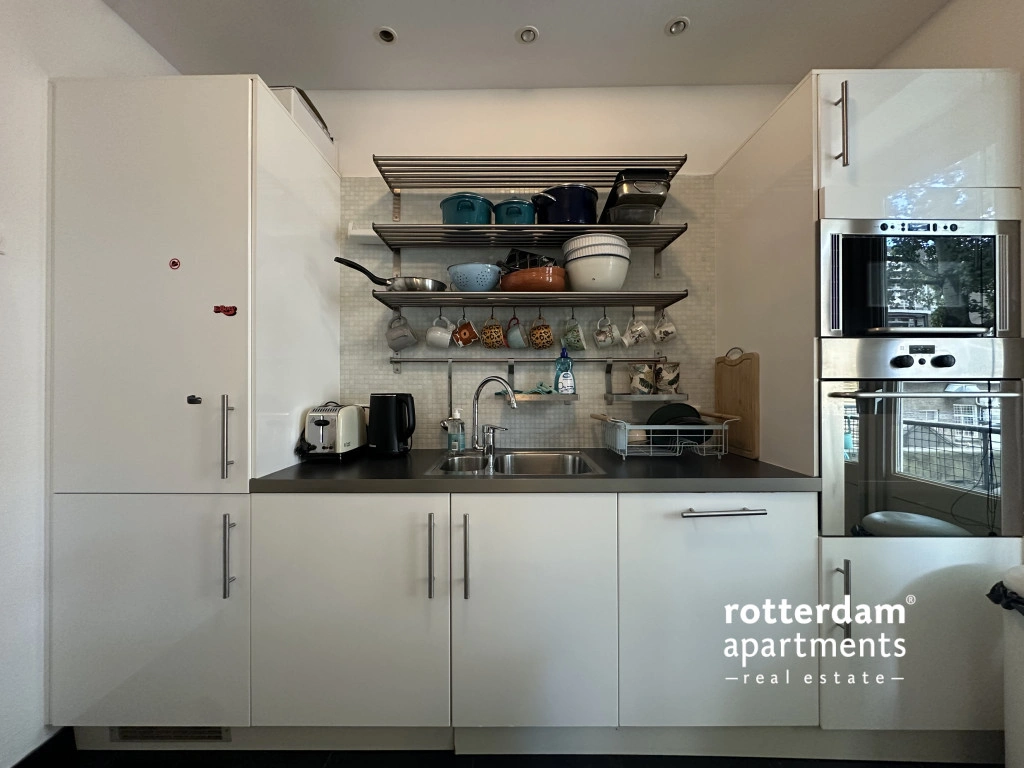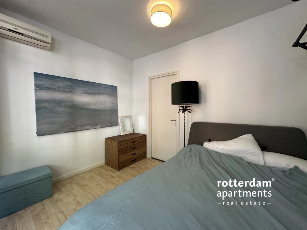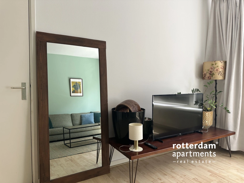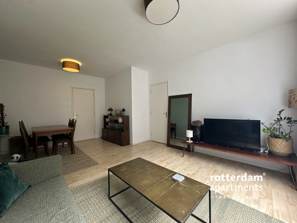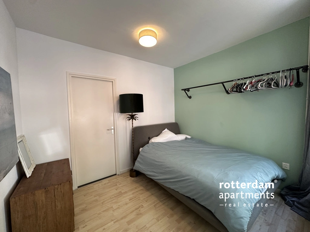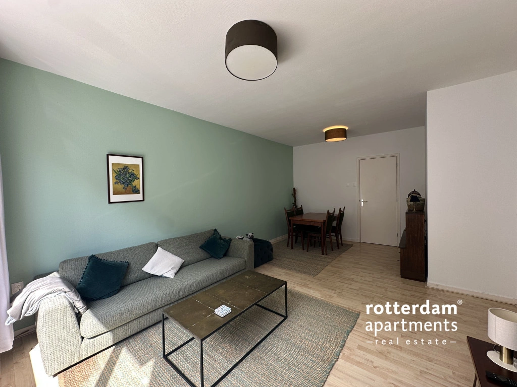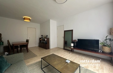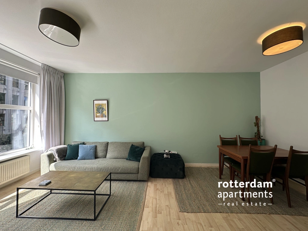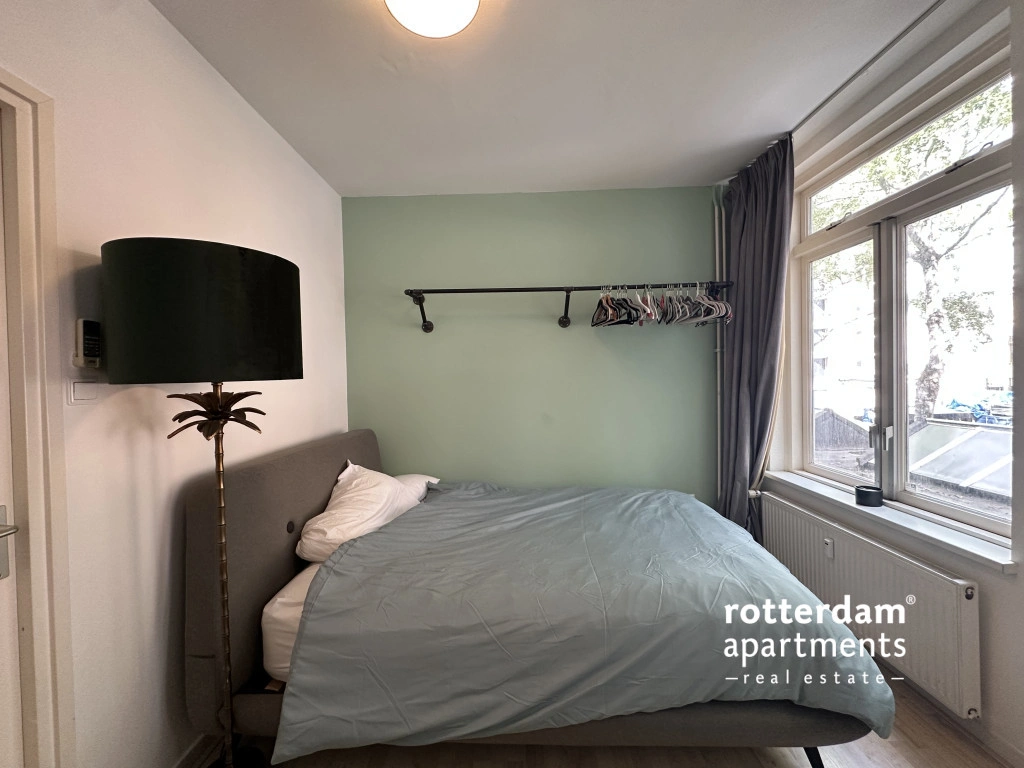 Furnished 3-room apartment on Hartmansstraat , in the heart of Rotterdam's vibrant city center. The apartment is located on the first floor and features a balcony spanning the entire width of the apartment at the rear.