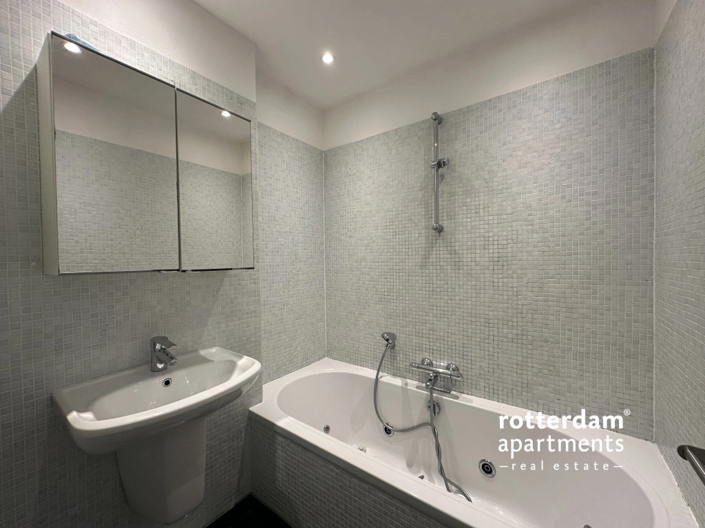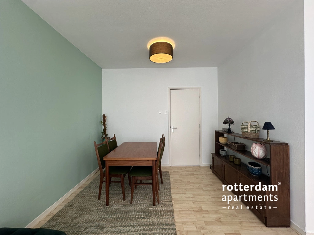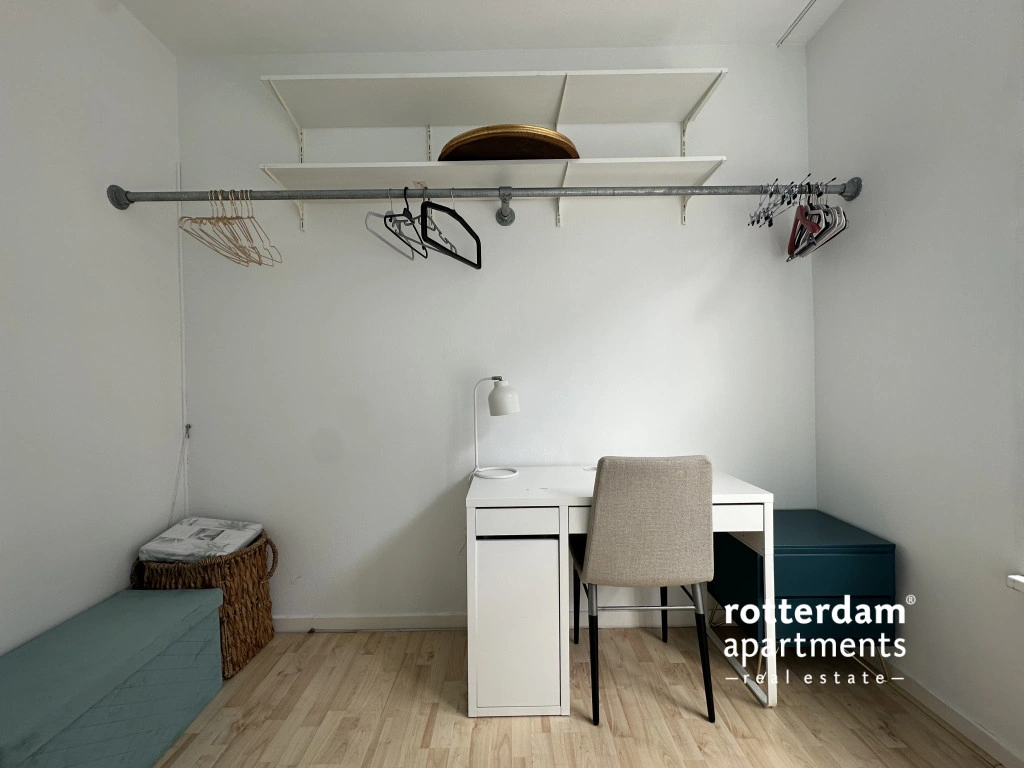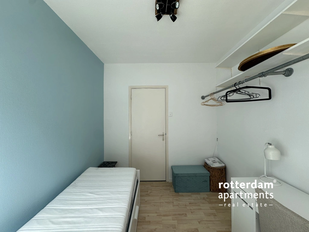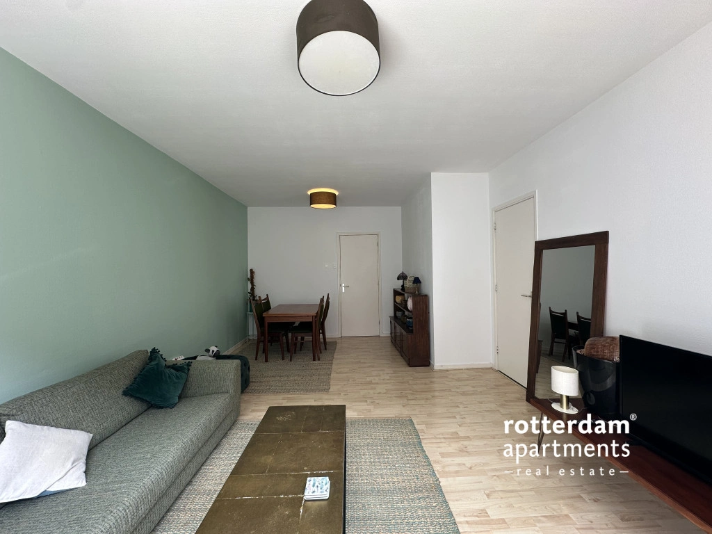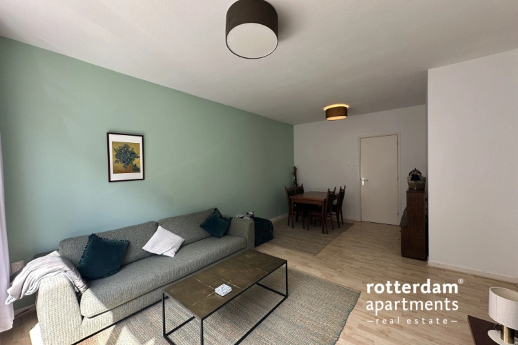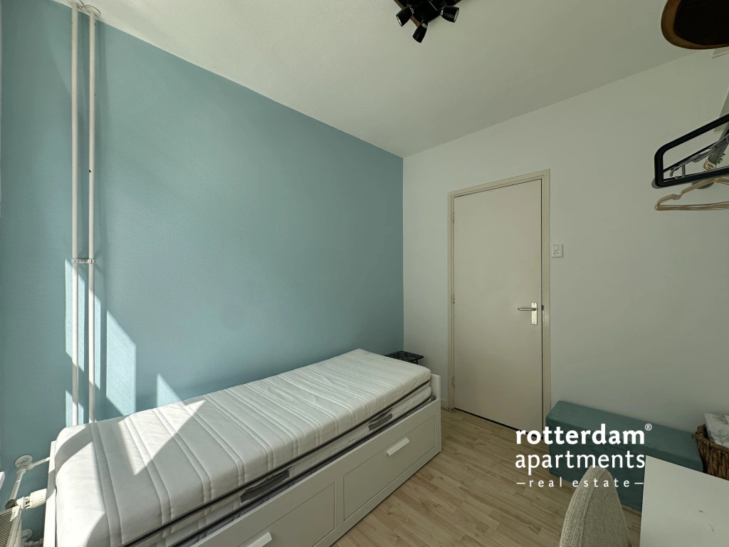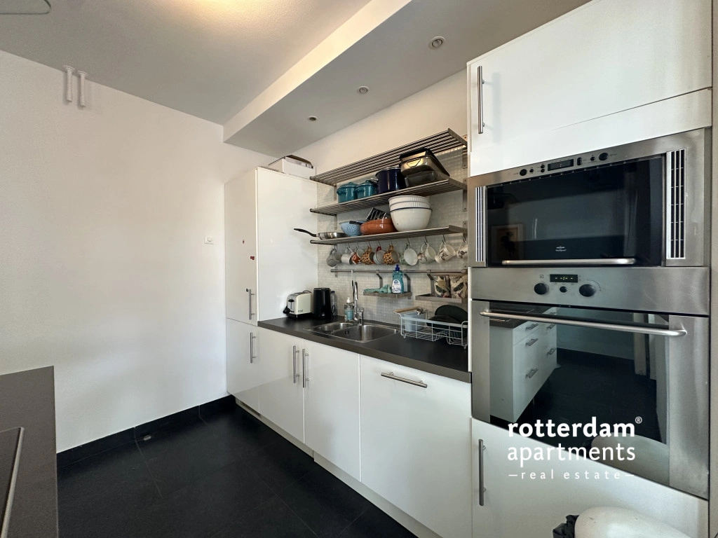 Furnished 3-room apartment on Hartmansstraat , in the heart of Rotterdam's vibrant city center. The apartment is located on the first floor and features a balcony spanning the entire width of the apartment at the rear.