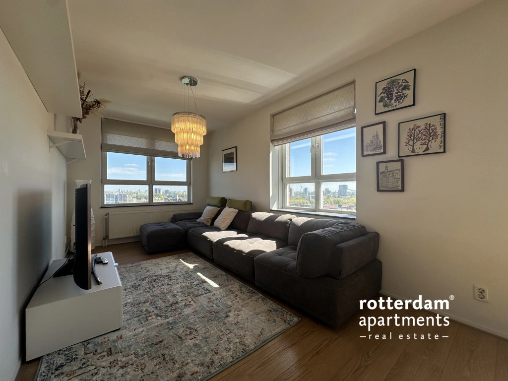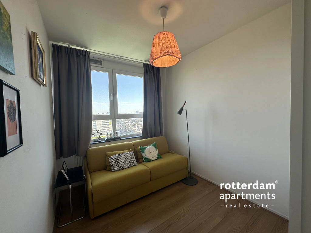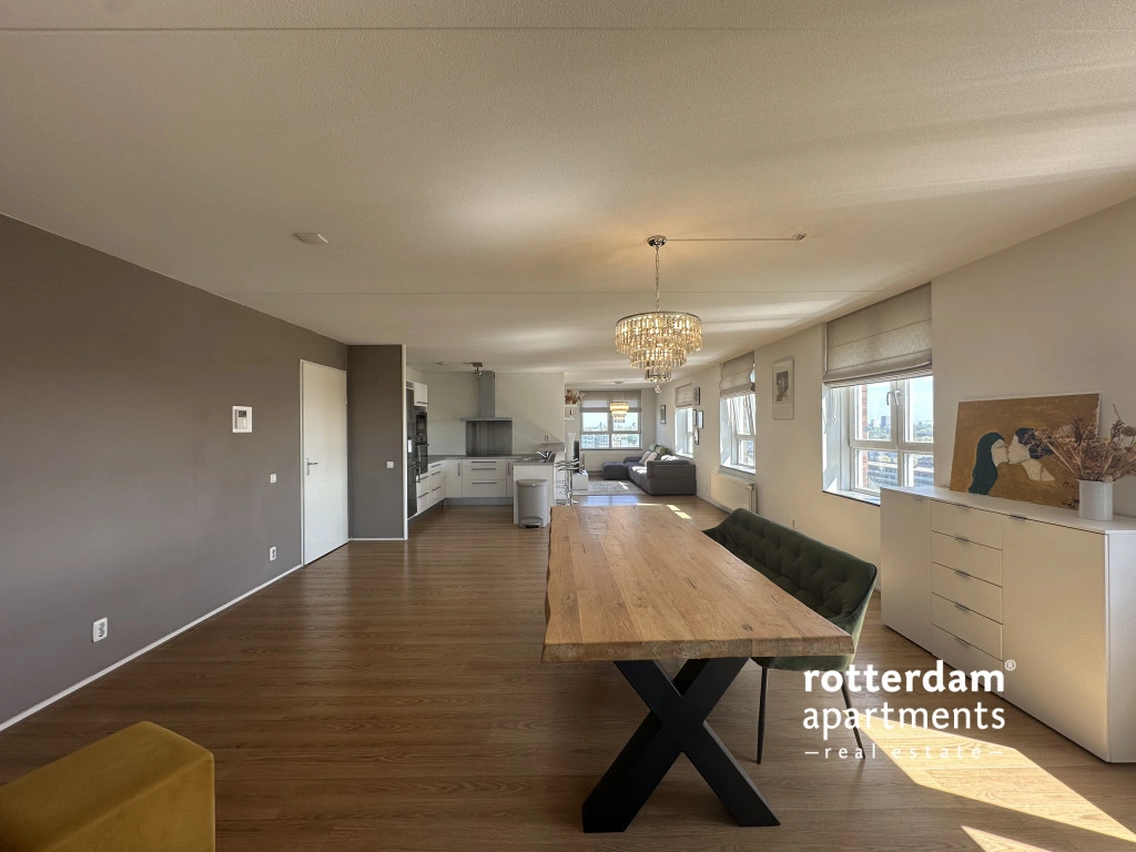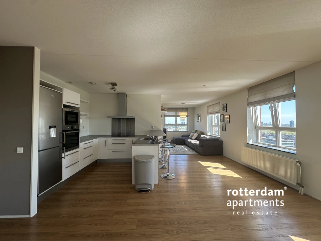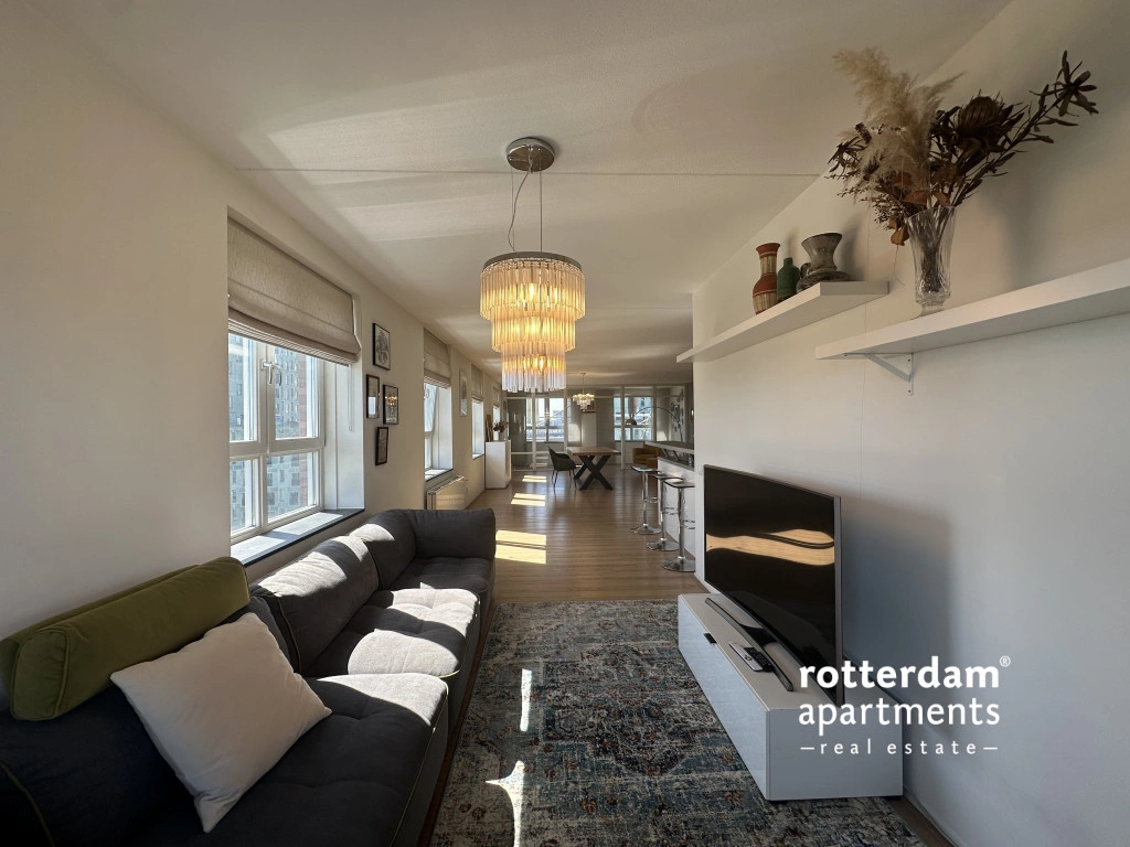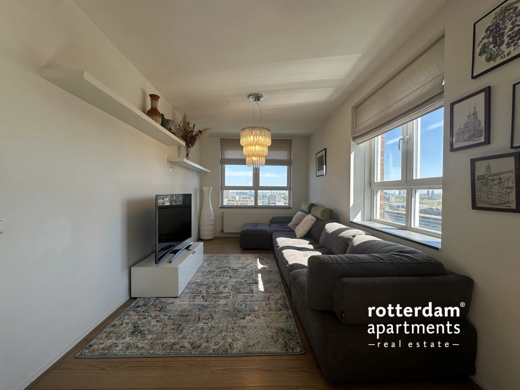 Spacious and bright furnished 3-bedroom apartment located on the 14th floor on Laan op Zuid in Rotterdam. The property offers a spectacular panoramic view of the city, with views of De Kuip, the Willemsbrug, De Hef, the Van Brienenoordbrug, and the Spoorweghaven, among others. Thanks to the large windows and high location, you enjoy plenty of natural light throughout the day.