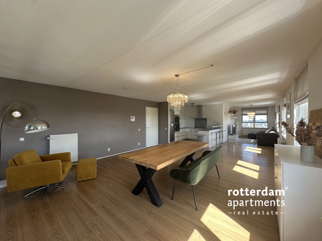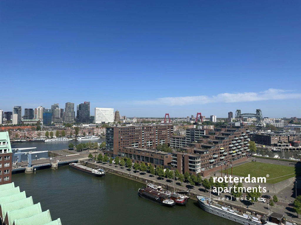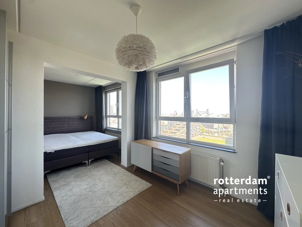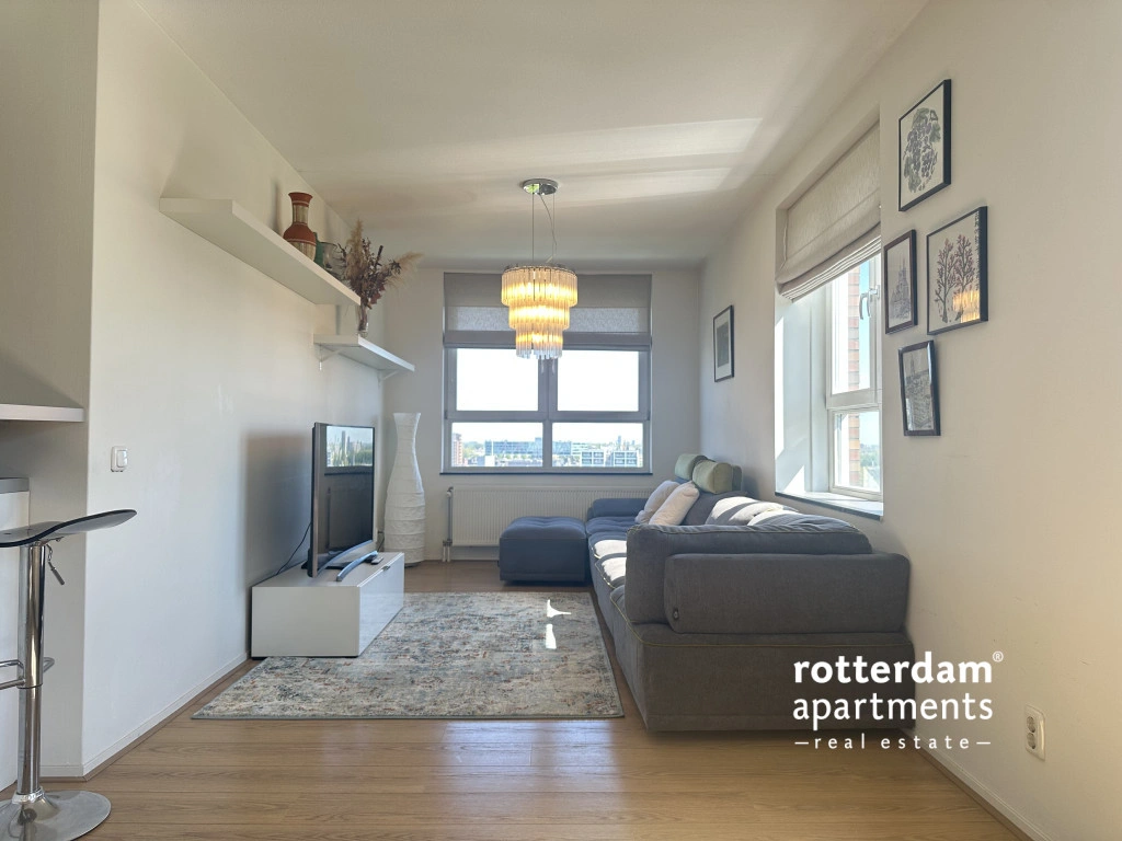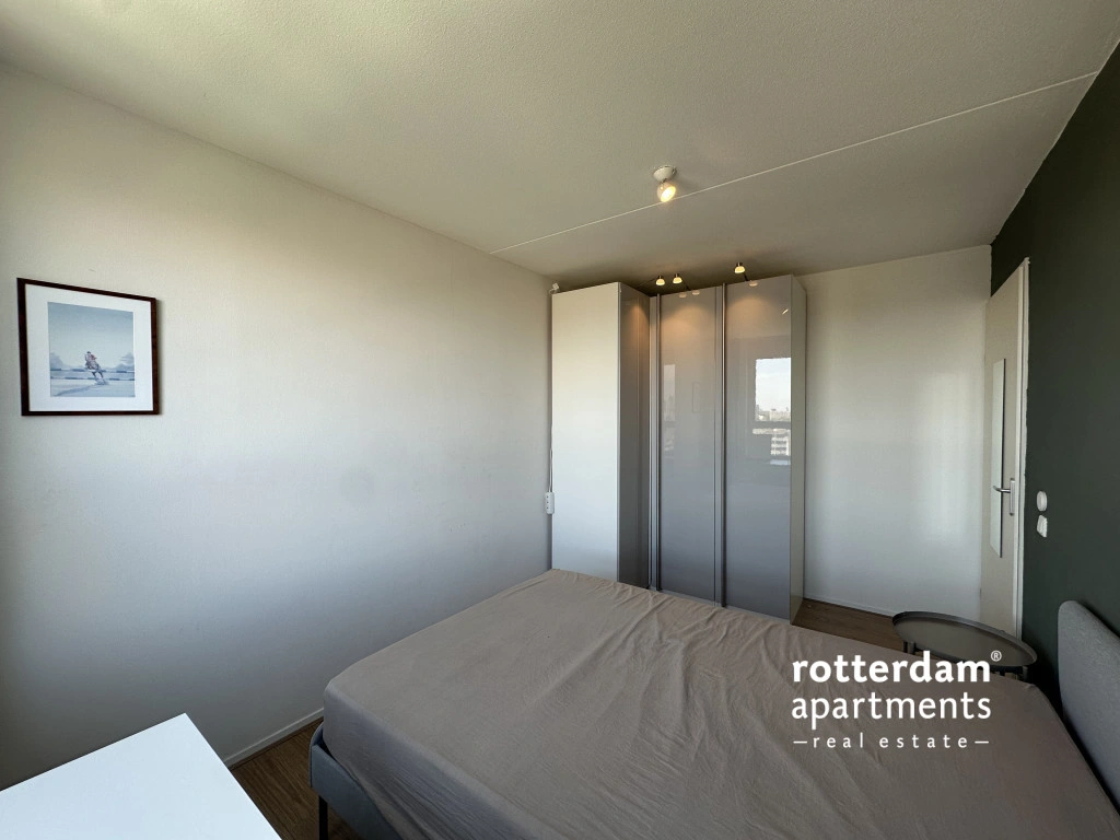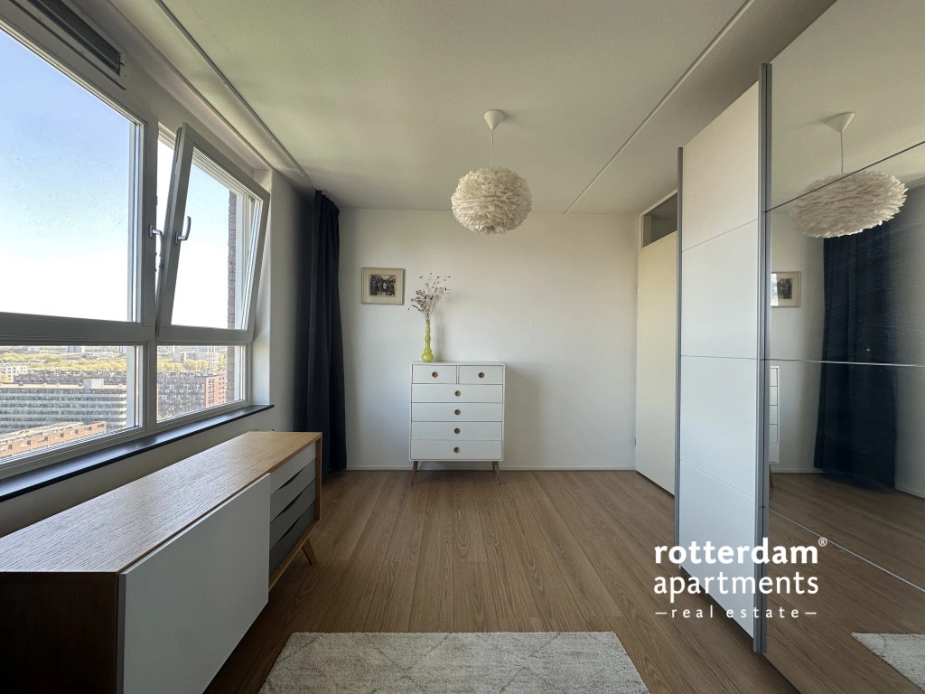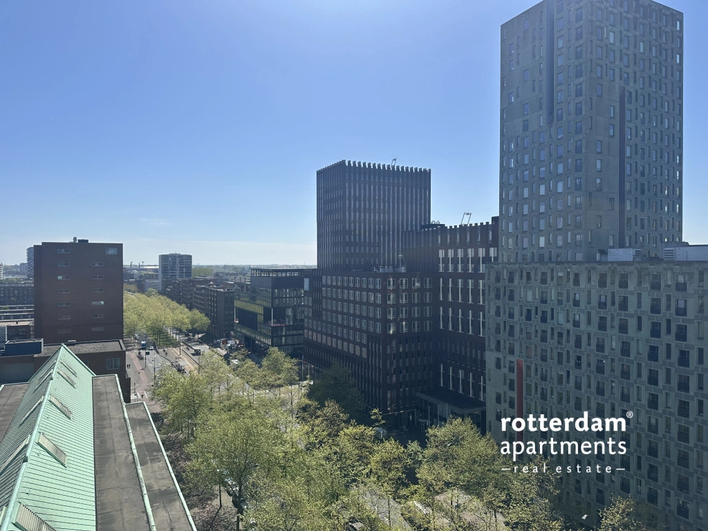 Spacious and bright furnished 3-bedroom apartment located on the 14th floor on Laan op Zuid in Rotterdam. The property offers a spectacular panoramic view of the city, with views of De Kuip, the Willemsbrug, De Hef, the Van Brienenoordbrug, and the Spoorweghaven, among others. Thanks to the large windows and high location, you enjoy plenty of natural light throughout the day.