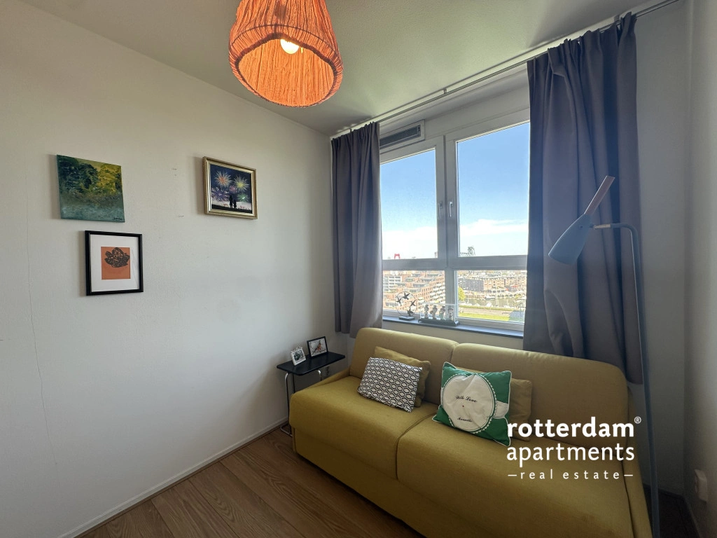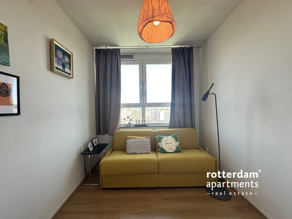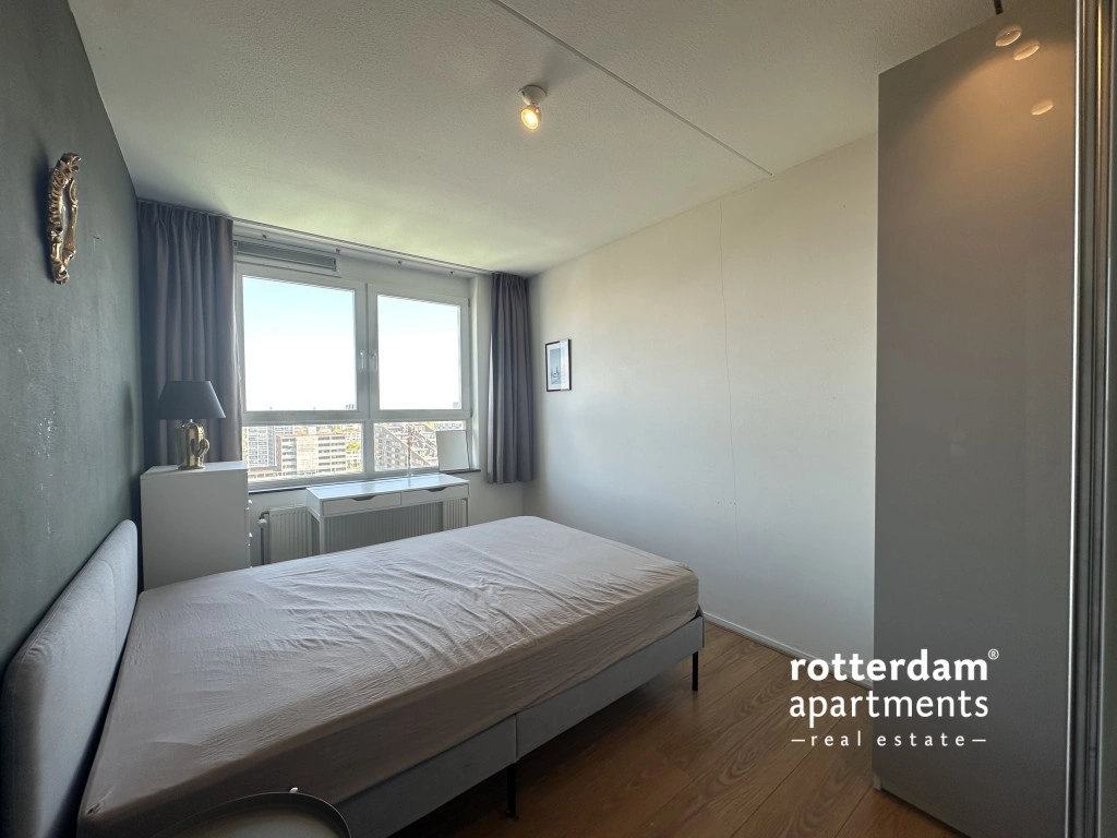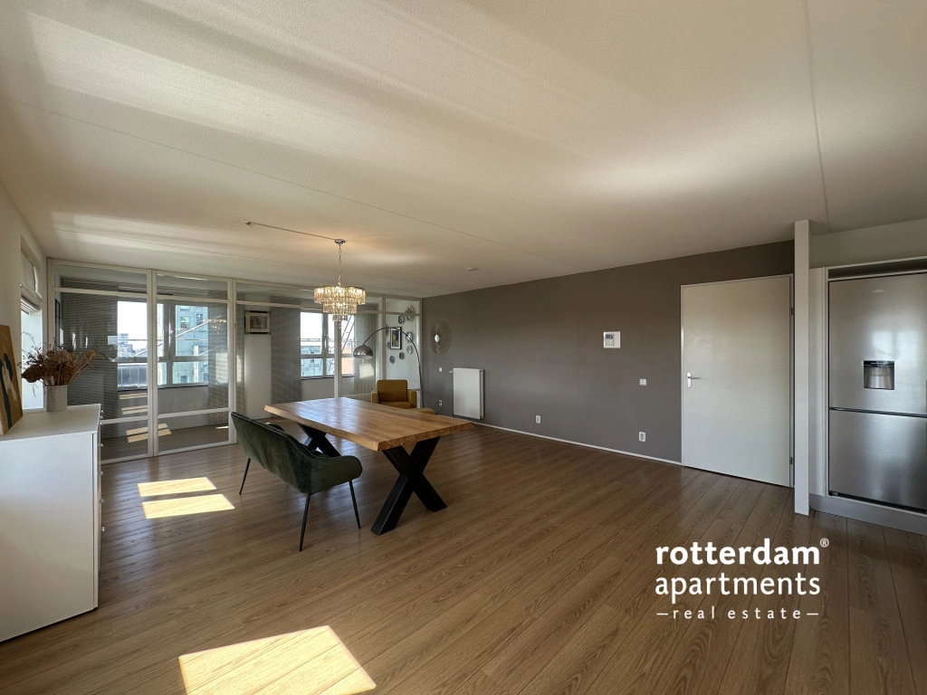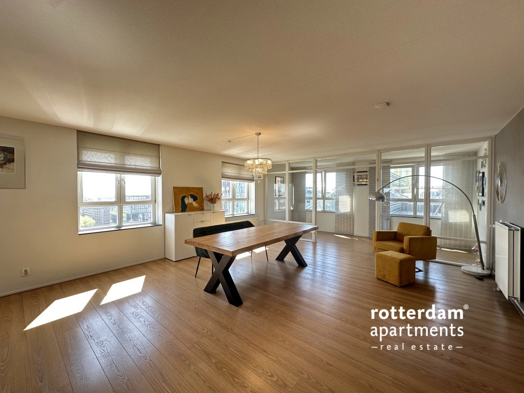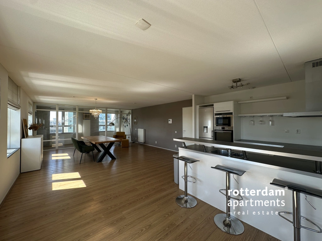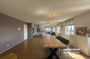 Spacious and bright furnished 3-bedroom apartment located on the 14th floor on Laan op Zuid in Rotterdam. The property offers a spectacular panoramic view of the city, with views of De Kuip, the Willemsbrug, De Hef, the Van Brienenoordbrug, and the Spoorweghaven, among others. Thanks to the large windows and high location, you enjoy plenty of natural light throughout the day.