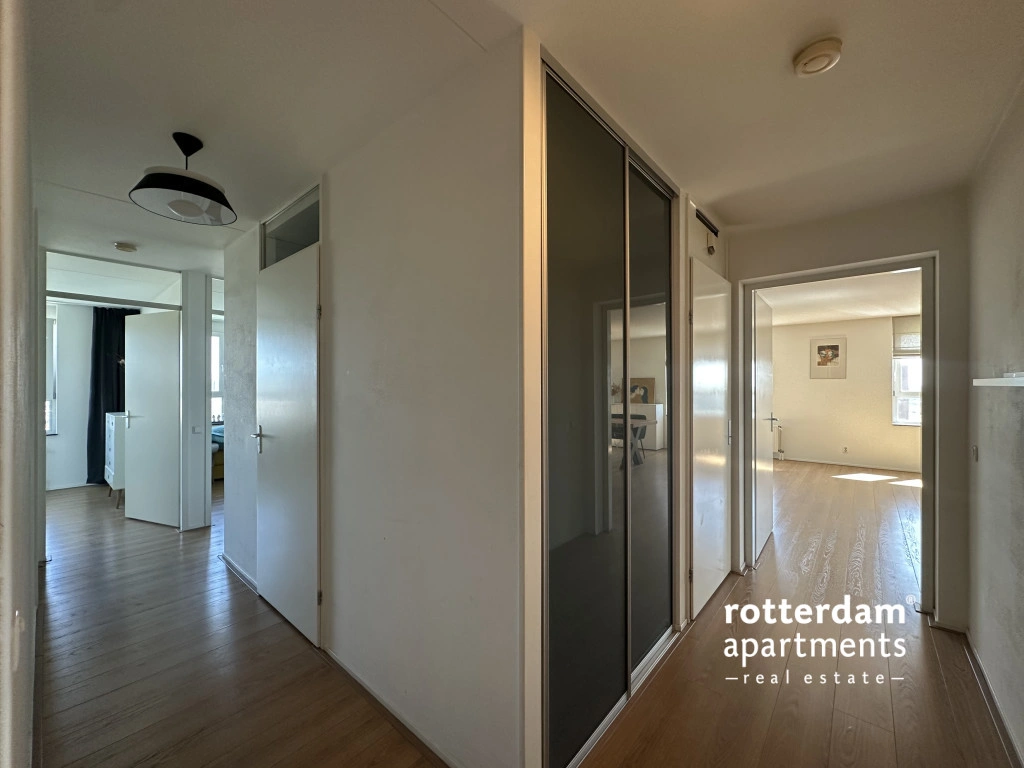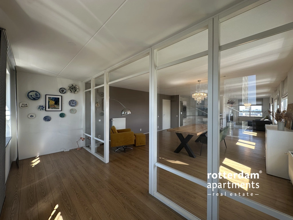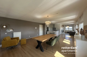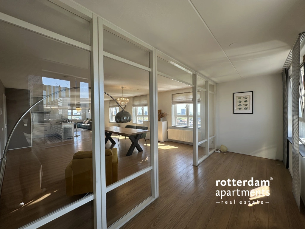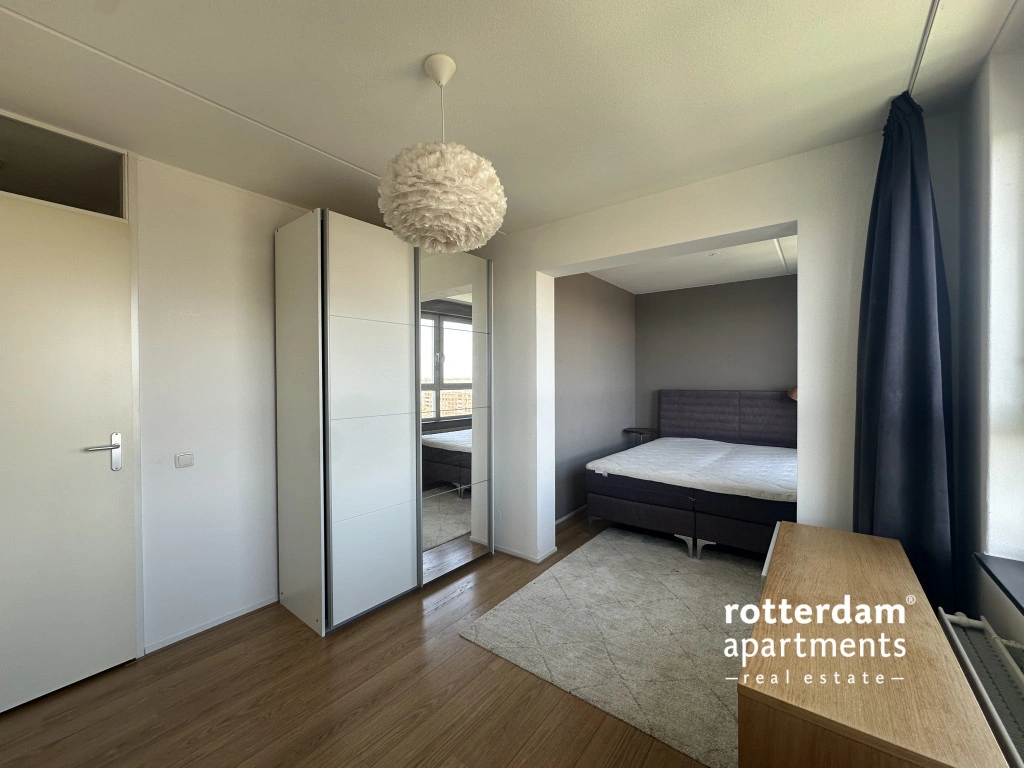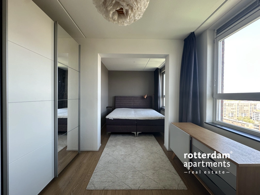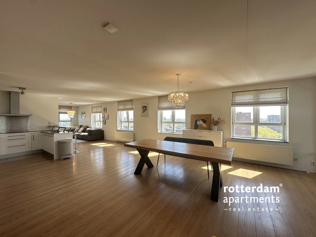 Spacious and bright furnished 3-bedroom apartment located on the 14th floor on Laan op Zuid in Rotterdam. The property offers a spectacular panoramic view of the city, with views of De Kuip, the Willemsbrug, De Hef, the Van Brienenoordbrug, and the Spoorweghaven, among others. Thanks to the large windows and high location, you enjoy plenty of natural light throughout the day.