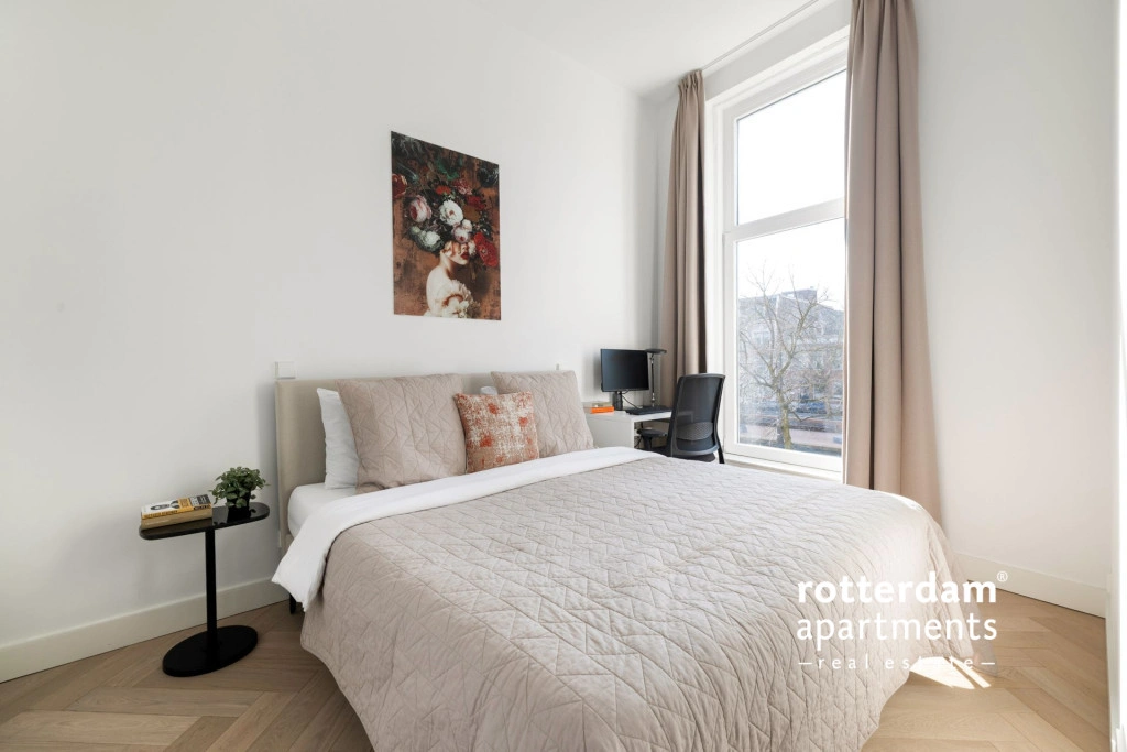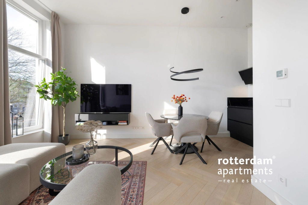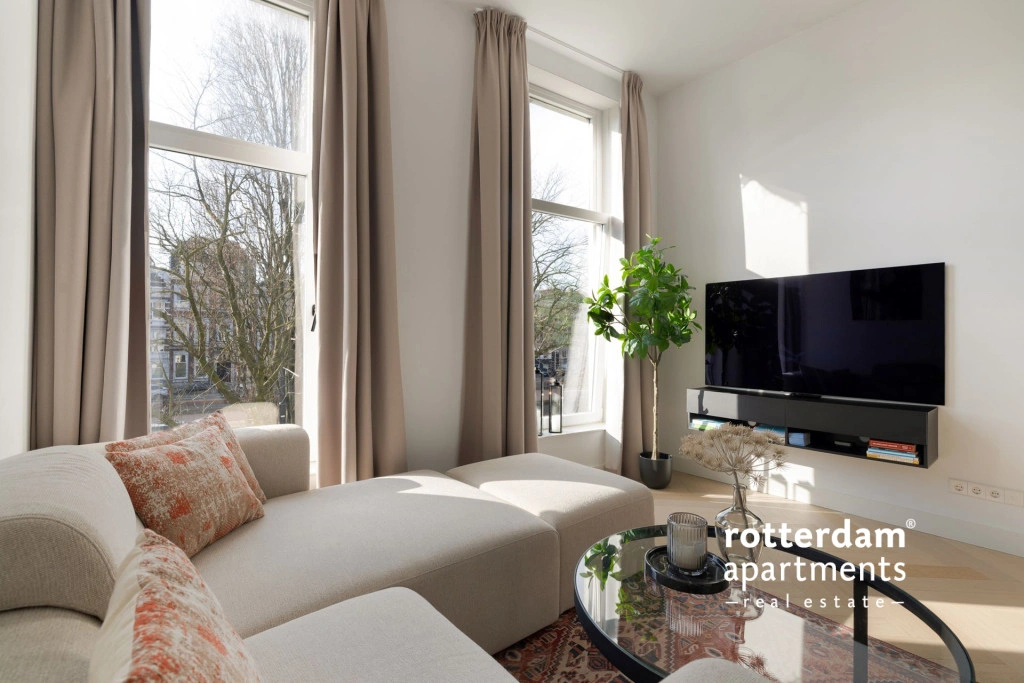 Experience city living at its best in this beautifully renovated and fully furnished one-bedroom apartment on the lively Mauritsweg, just steps away from Rotterdam Central Station. Located on the first floor, it offers a bright living room with an open kitchen, a stylish bathroom, and a cozy bedroom. With access to a large communal backyard, this apartment is perfect for anyone seeking comfort and convenience in the heart of Rotterdam.