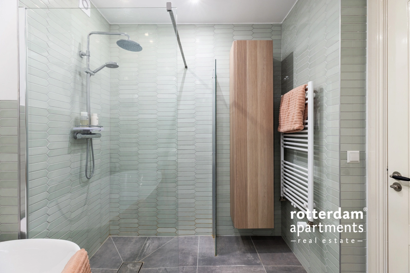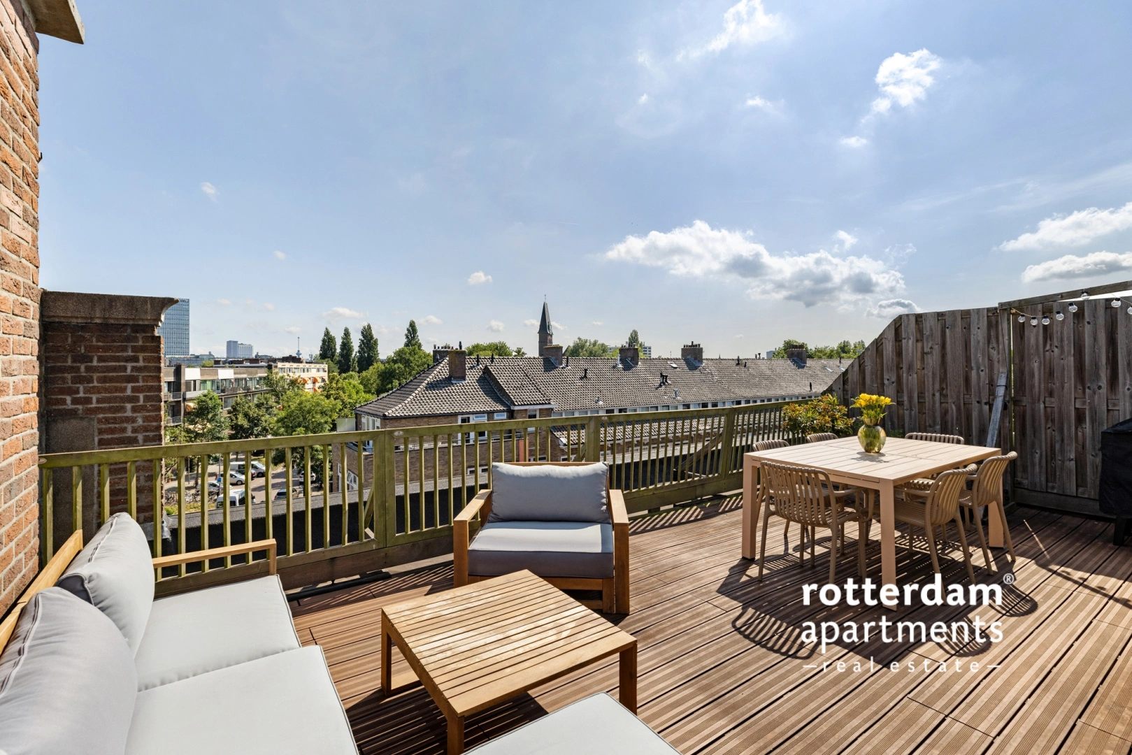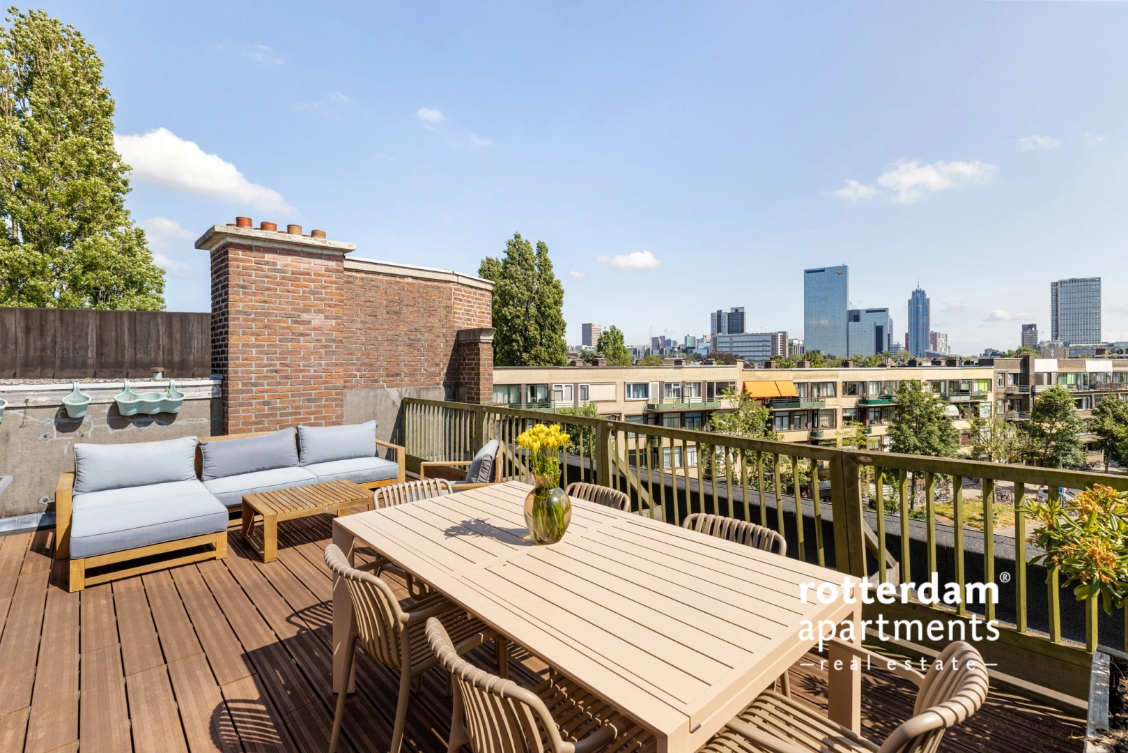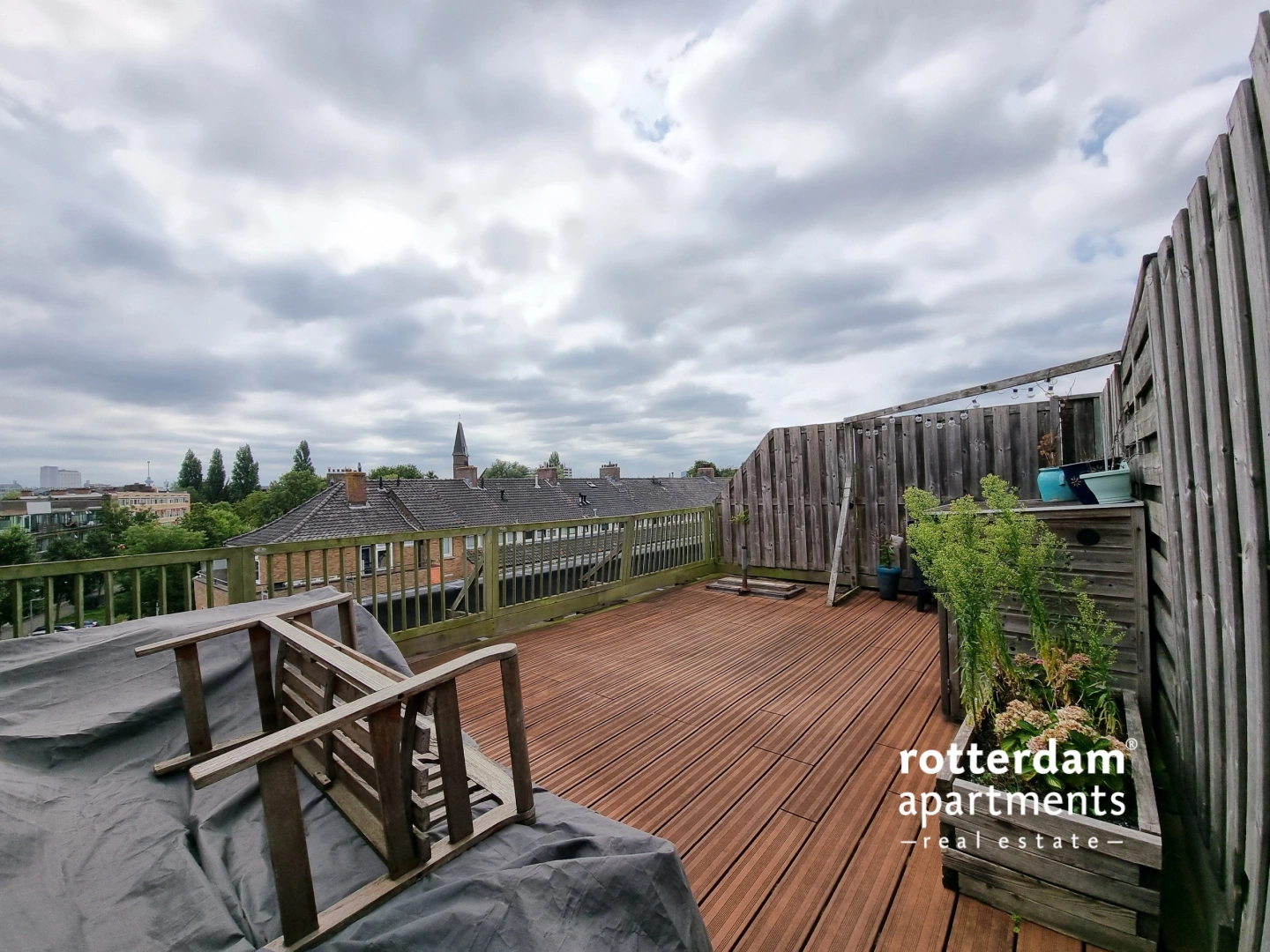 Spacious landing with access to the rooms and toilet. Bedroom I and II are spacious and equipped with sufficient storage units. The fully tiled bathroom has a shower, bath, washbasin with mirror and design radiator. The sunny roof terrace is equipped with storage space and a cozy lounge set.