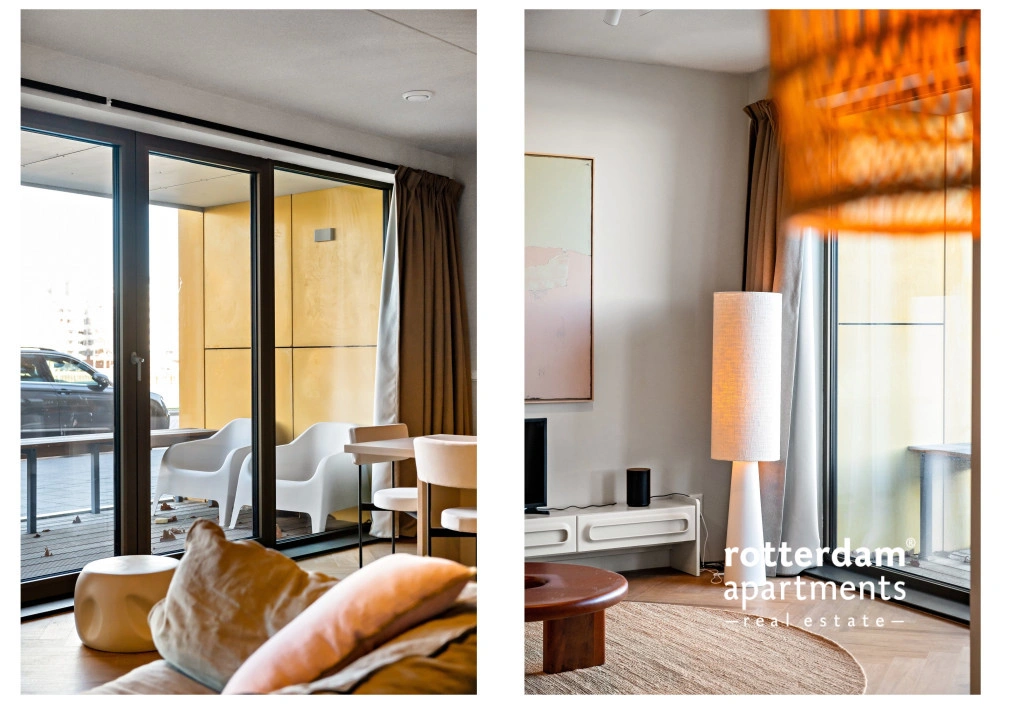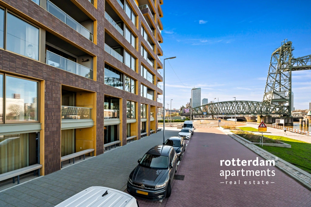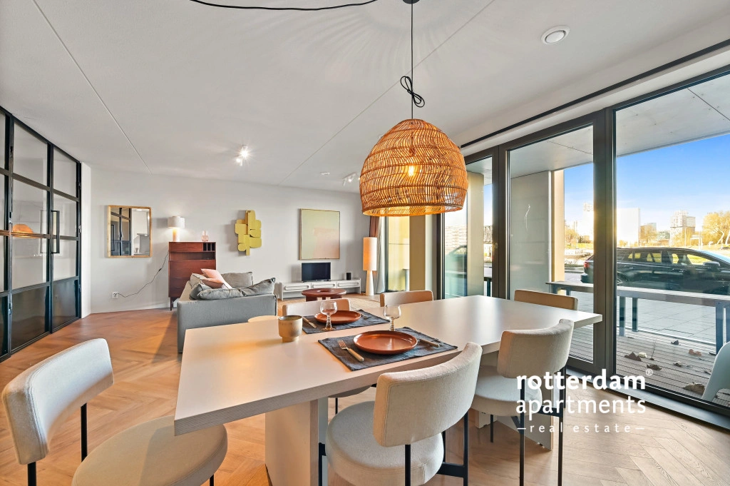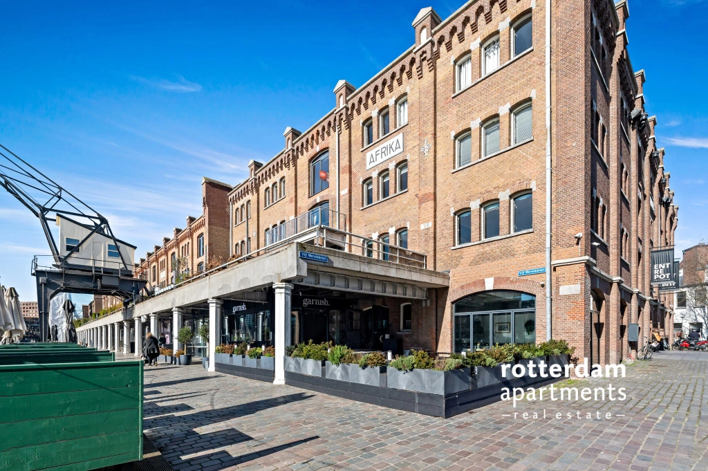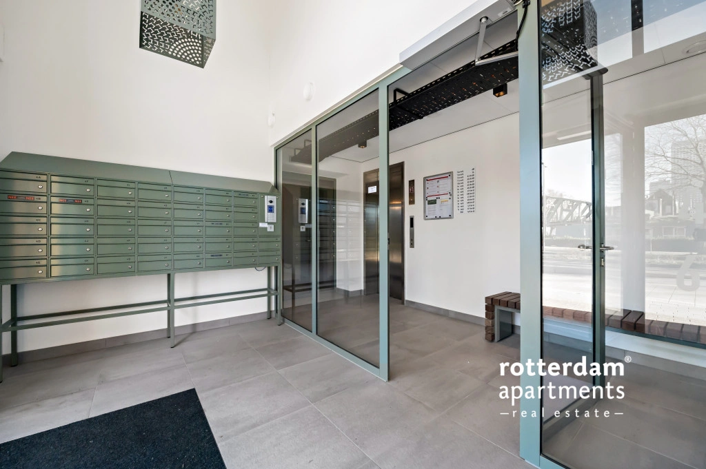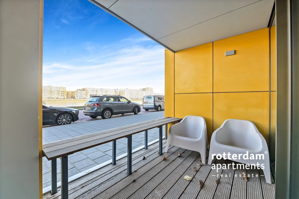 The apartment also has a front garden with seating and a beautiful view of De Hef, which provides a unique and typical Rotterdam experience.