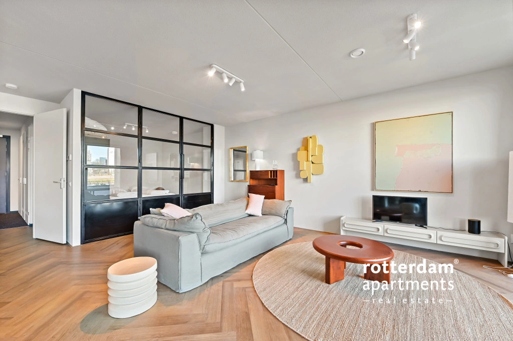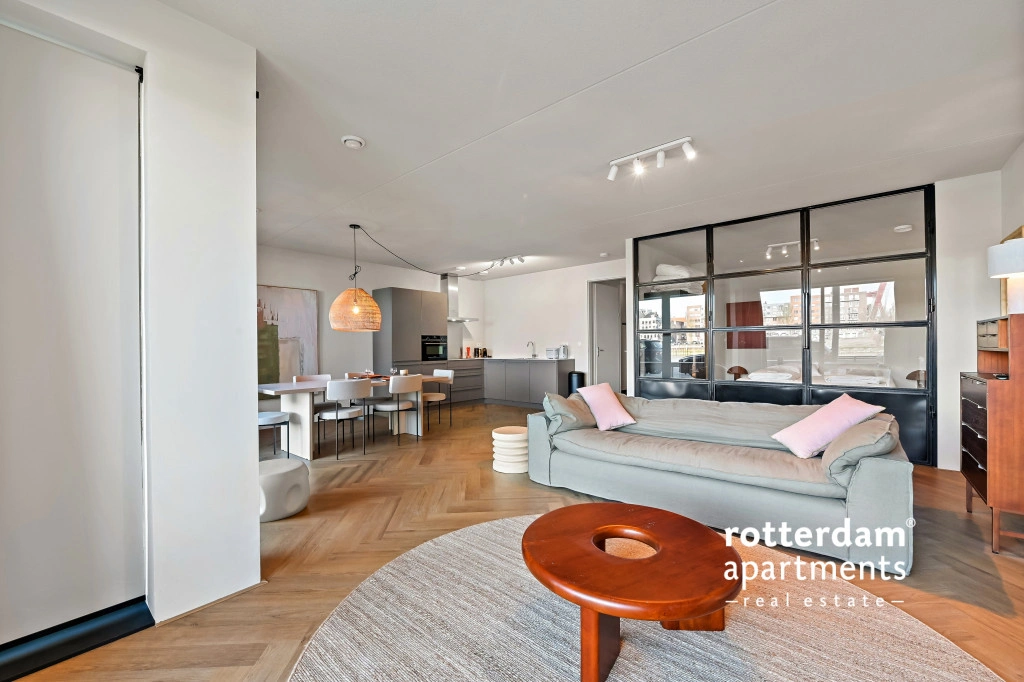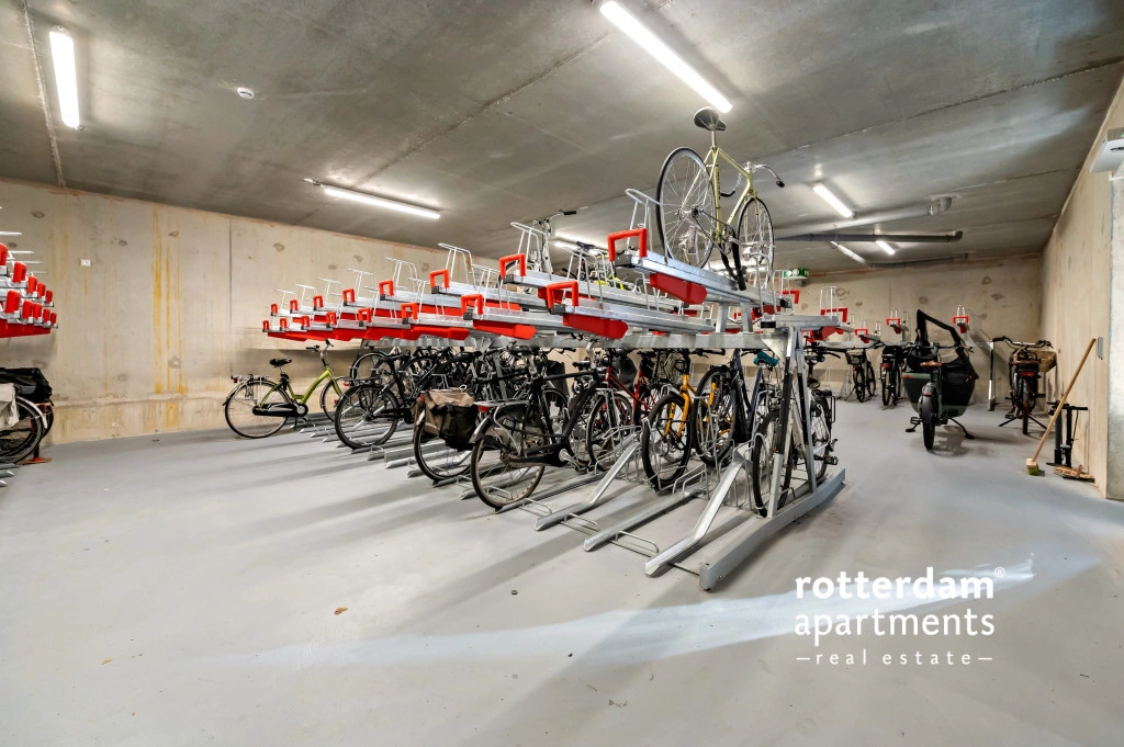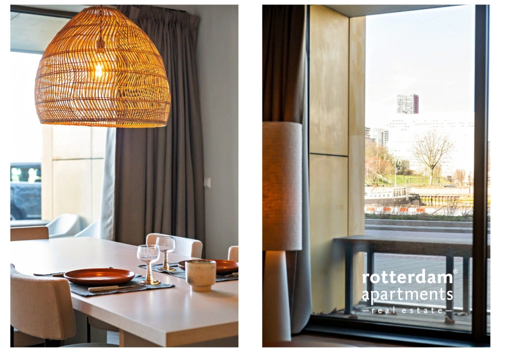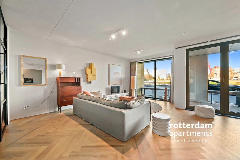The apartment also has a front garden with seating and a beautiful view of De Hef, which provides a unique and typical Rotterdam experience.