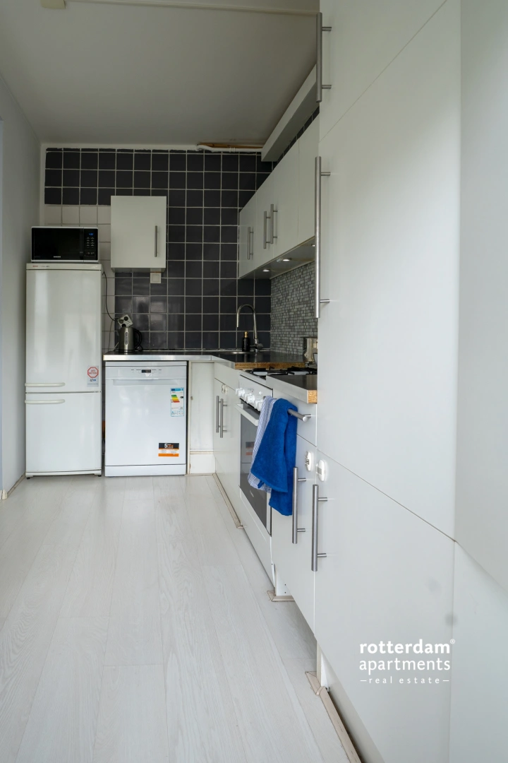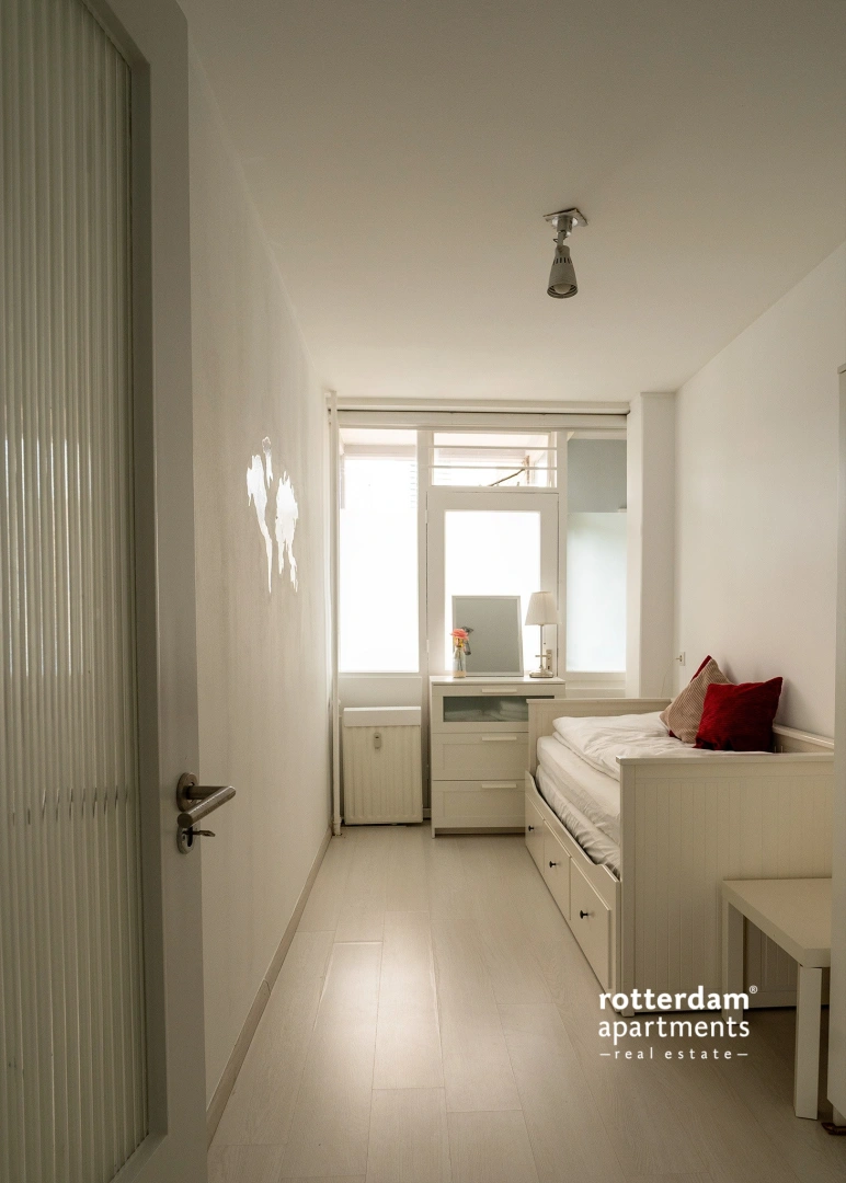 Fully furnished 2 bed-room apartment located on the edge of Rotterdam city centre, in the maritime heart of the city, with a beautiful view over the Leuvehaven. The property is situated on the third floor and is within walking distance of various restaurants in the Westerlijk Handelsterrein, the lively Witte de Withstraat, tram lines 8 and 20, and the Beurs en Leuvehaven metro station. A great location for those who want to live centrally with everything within reach, without the hassle, and with a view.