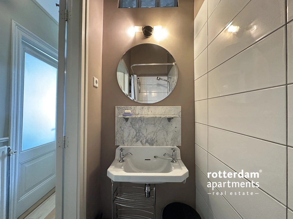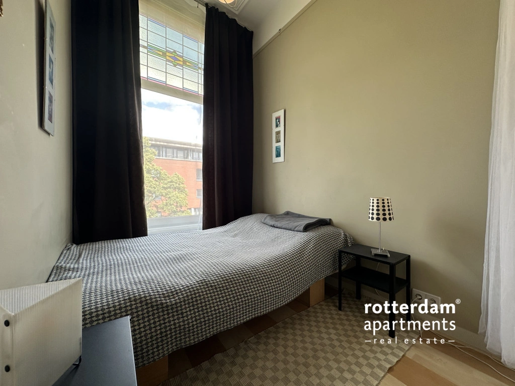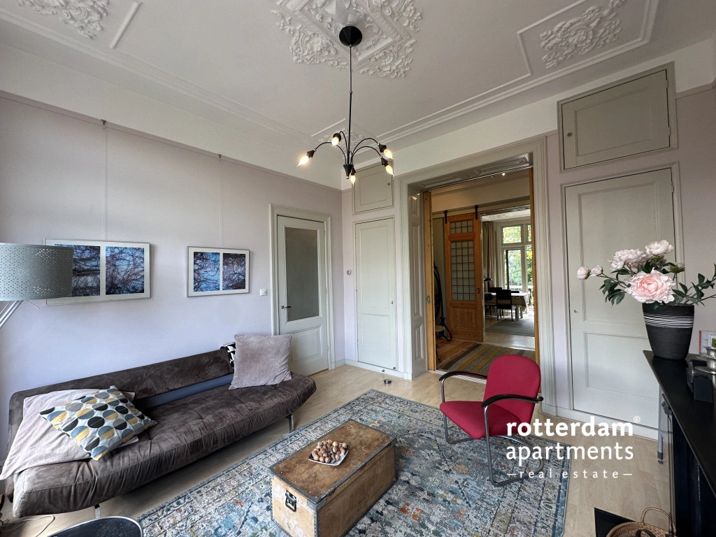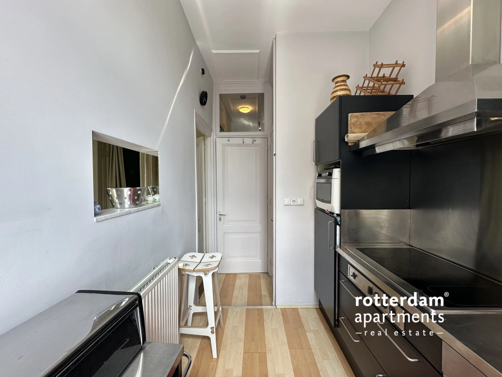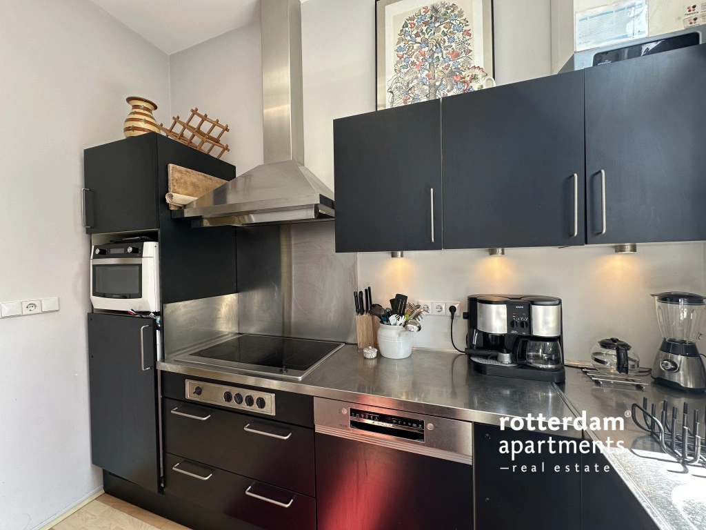 The apartment is situated opposite a small green park on a quiet lane with ample parking. Additionally, it is within walking distance of the Erasmus MC, various museums, cinemas, and other cultural amenities.