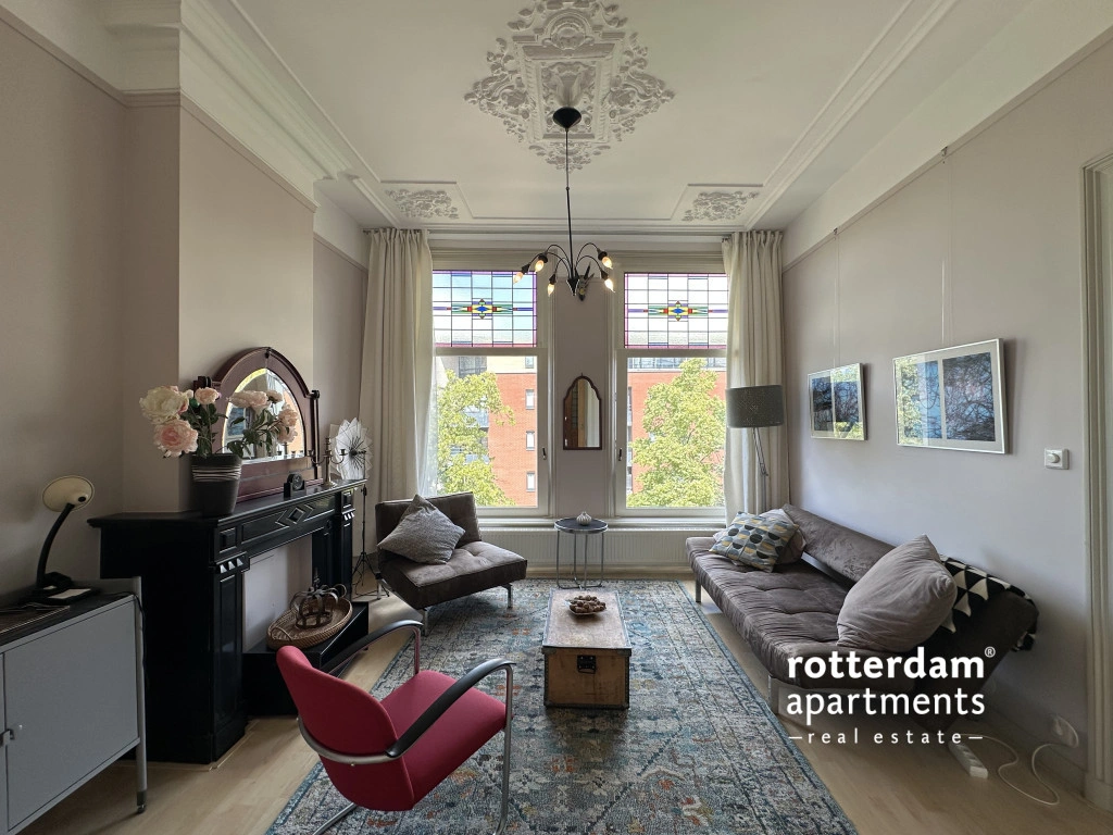 Located in the popular Middelland neighborhood, within walking distance of Heemraadspark and various cafés, shops, and public transport, is this charming and characteristic apartment on the second floor of a charming townhouse. The house boasts a wealth of original features, including stained glass windows, sliding doors, moldings, built-in wardrobes, and fireplaces, combined with modern amenities.