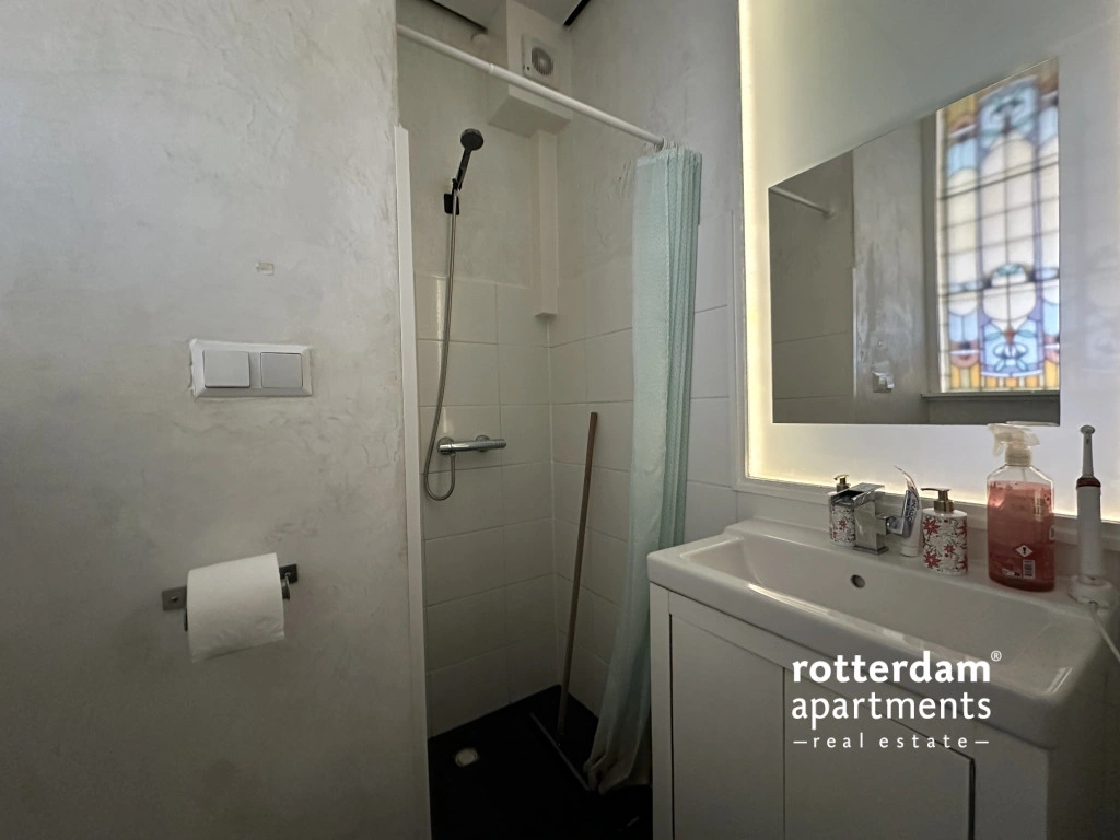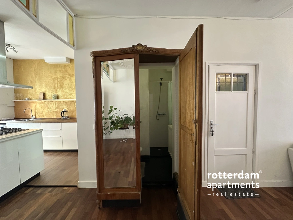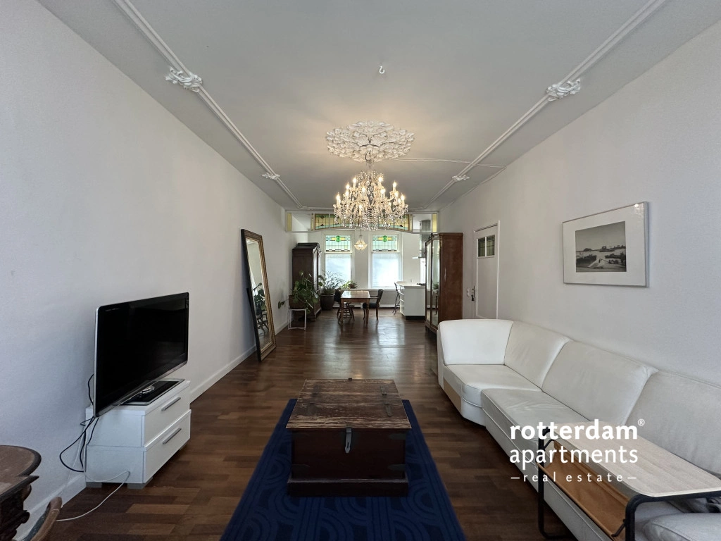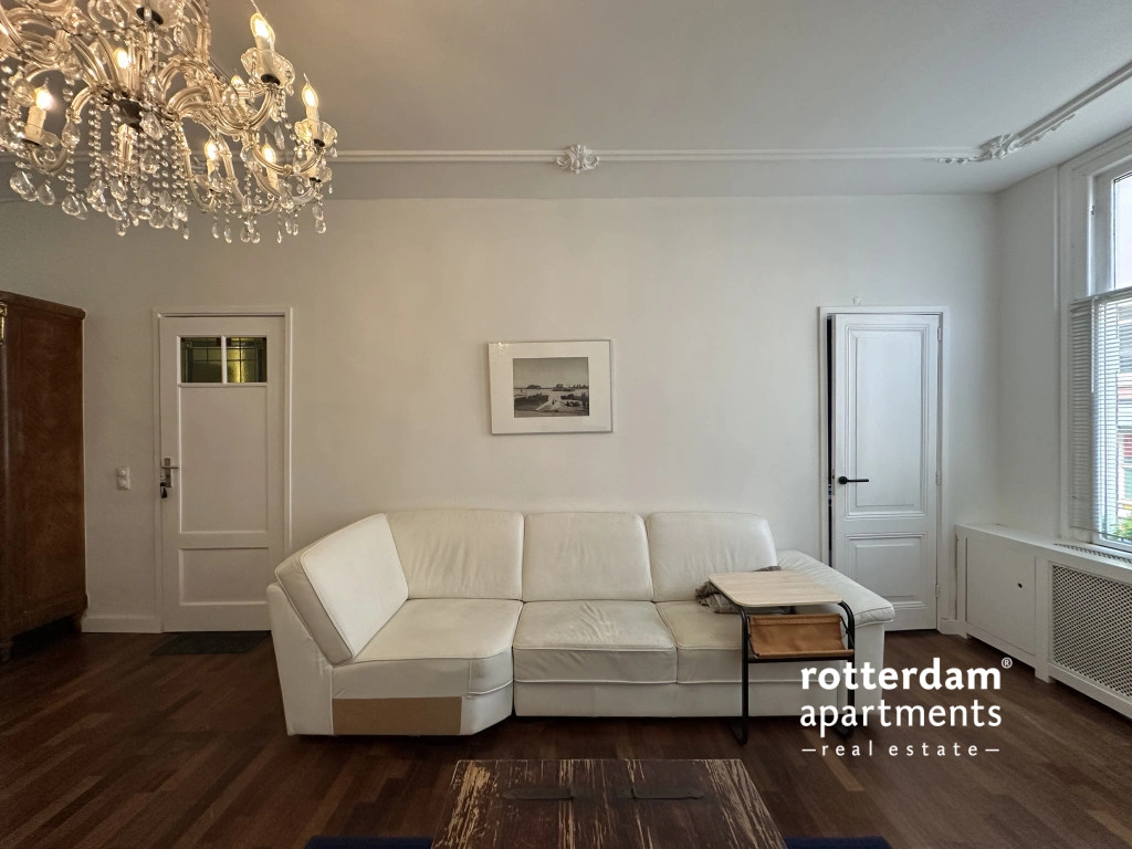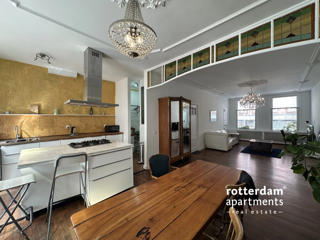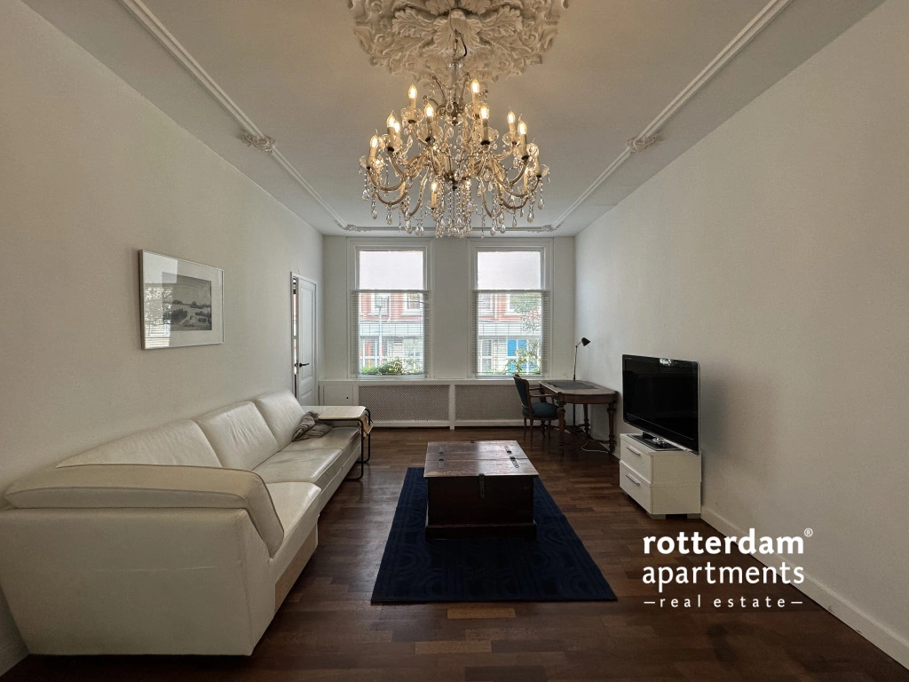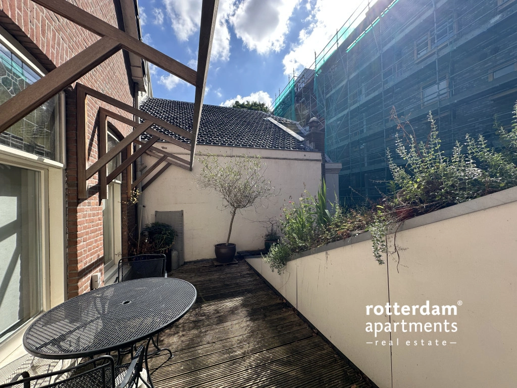Stylish 1-bedroom apartment with private terrace in the heart of Rotterdam. This furnished home features stained glass details, high ceilings, wooden floors, and a bright kitchen with cooking island. Located within walking distance of Erasmus MC, Museumpark, tram 4, metro Dijkzigt, and various cafés. Quick access to the Maastunnel and A13/A20 highways.