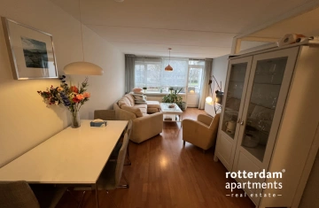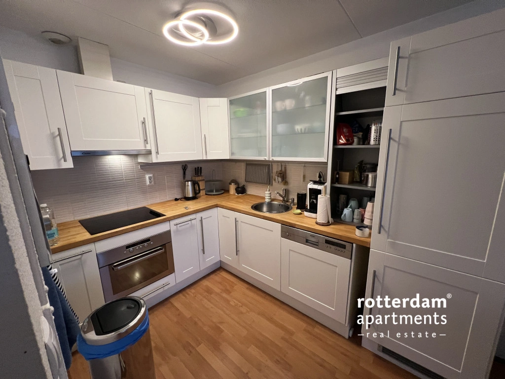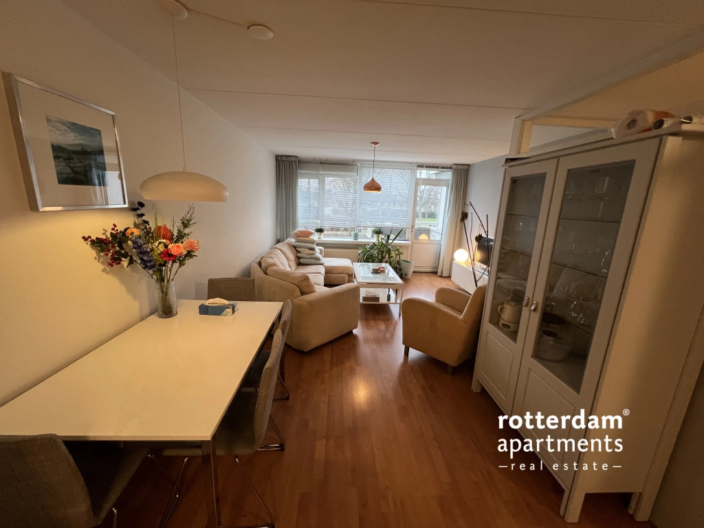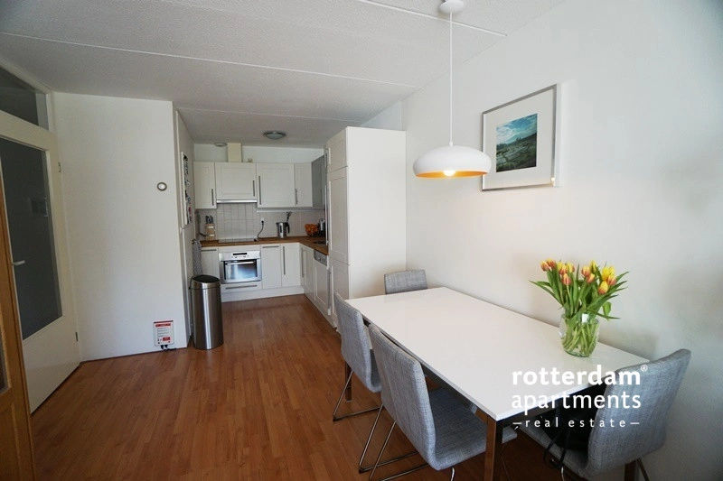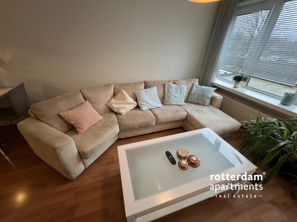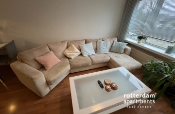 This fully furnished 2 bed-room apartment, spread over the ground and first floors, is located in Rotterdam-Oosterflank. It features a street-facing balcony. The extensive Alexandrium shopping center, various restaurants and takeaways, the Oosterflank metro station, and the motorway are all within walking distance. Rotterdam city center is just 15 minutes away, and (paid) parking is available right outside. An Intercity train station just a 5-minute walk away, connecting you to Schiphol Airport in 45 minutes.