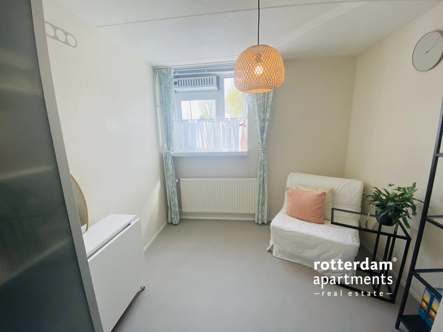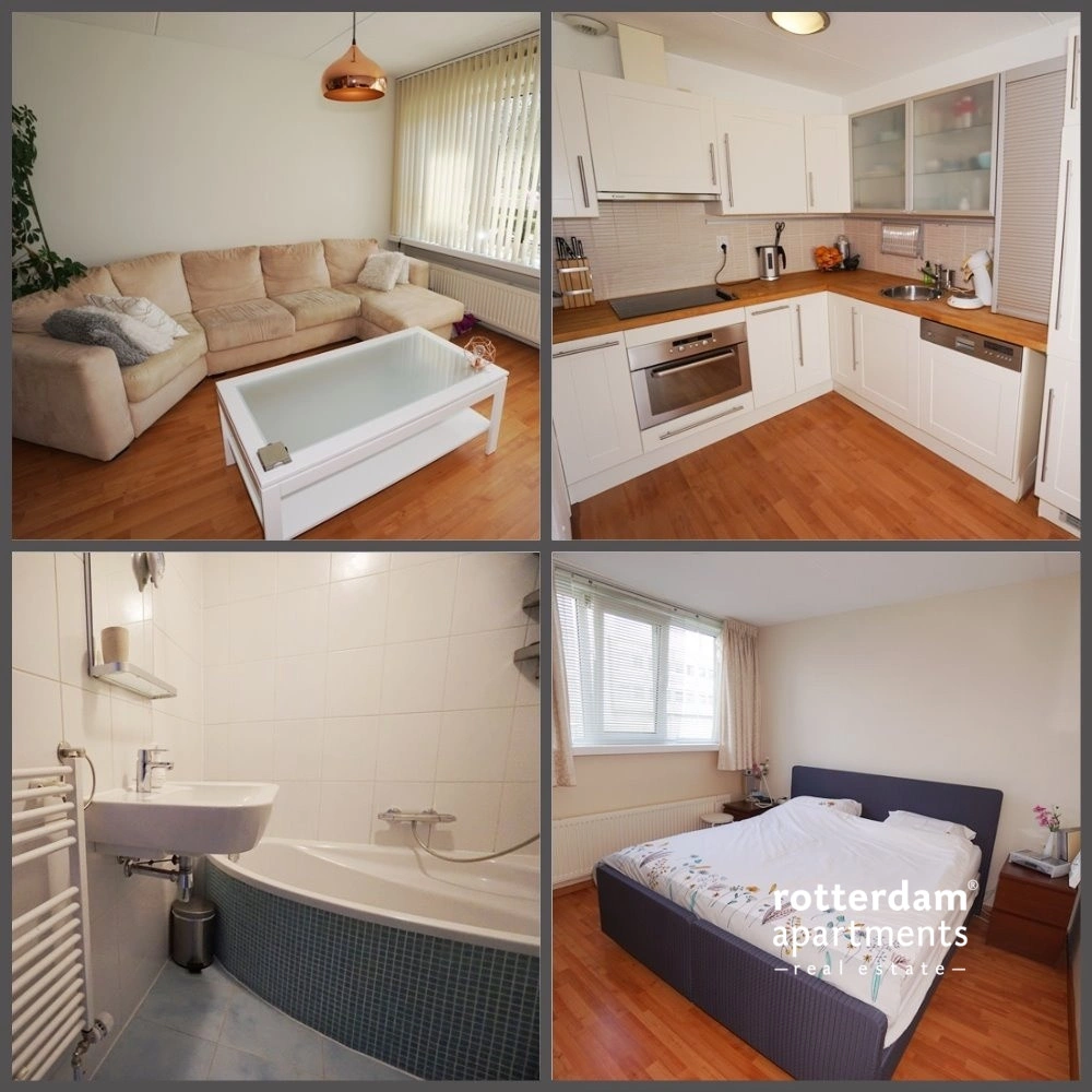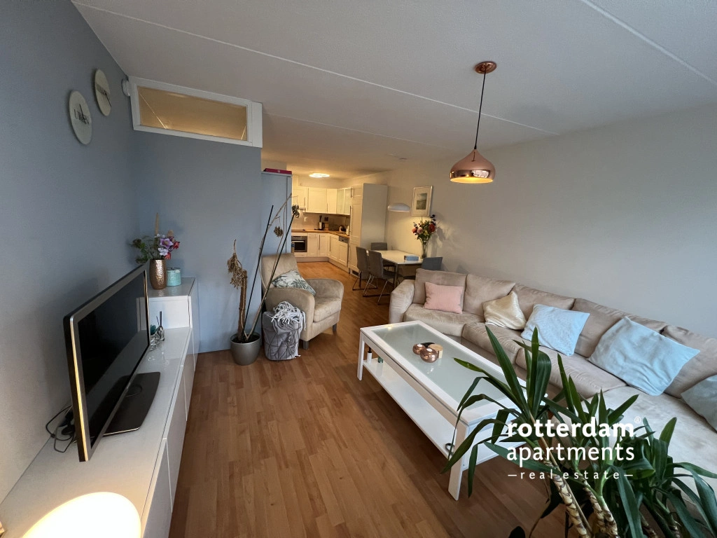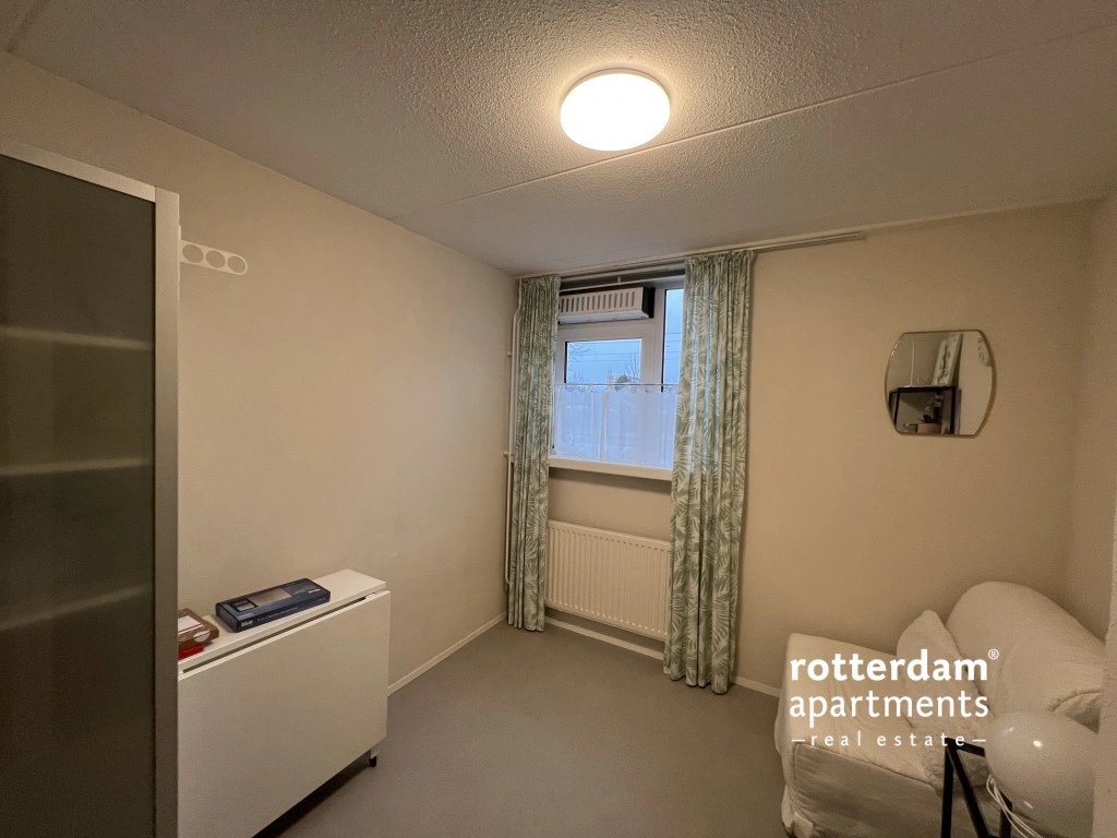 This fully furnished 2 bed-room apartment, spread over the ground and first floors, is located in Rotterdam-Oosterflank. It features a street-facing balcony. The extensive Alexandrium shopping center, various restaurants and takeaways, the Oosterflank metro station, and the motorway are all within walking distance. Rotterdam city center is just 15 minutes away, and (paid) parking is available right outside. An Intercity train station just a 5-minute walk away, connecting you to Schiphol Airport in 45 minutes.