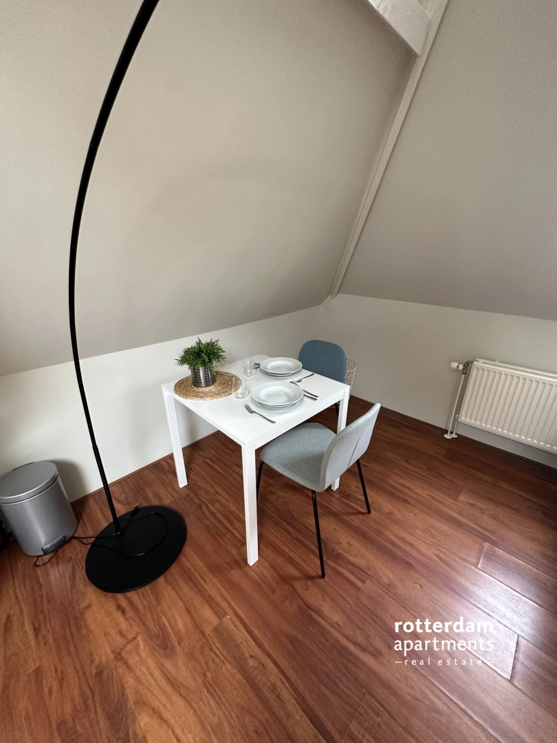 In Rotterdam East, in the popular Kralingen district, we offer this furnished 1 bed-room apartment located on the second floor (attic) of a characteristic building. The property is situated within walking distance of public transport, various shops, and cozy restaurants and cafes. Ideal for those seeking a pleasant temporary place to live in a prime location in the city.