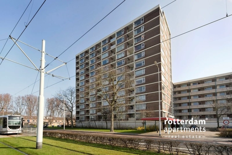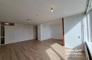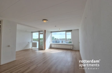 Furnished , 2 bedroom apartment on Wilgenplaslaan in Rotterdam-Schiebroek. Located on the 5th floor of the "De Hildegaerde" apartment building, the apartment features a spacious L-shaped living room, 2 bedrooms, and a large balcony.