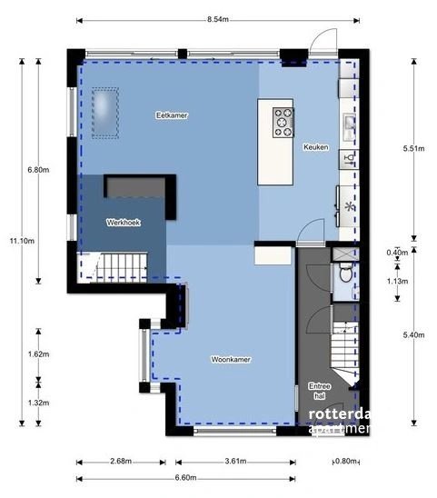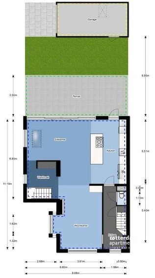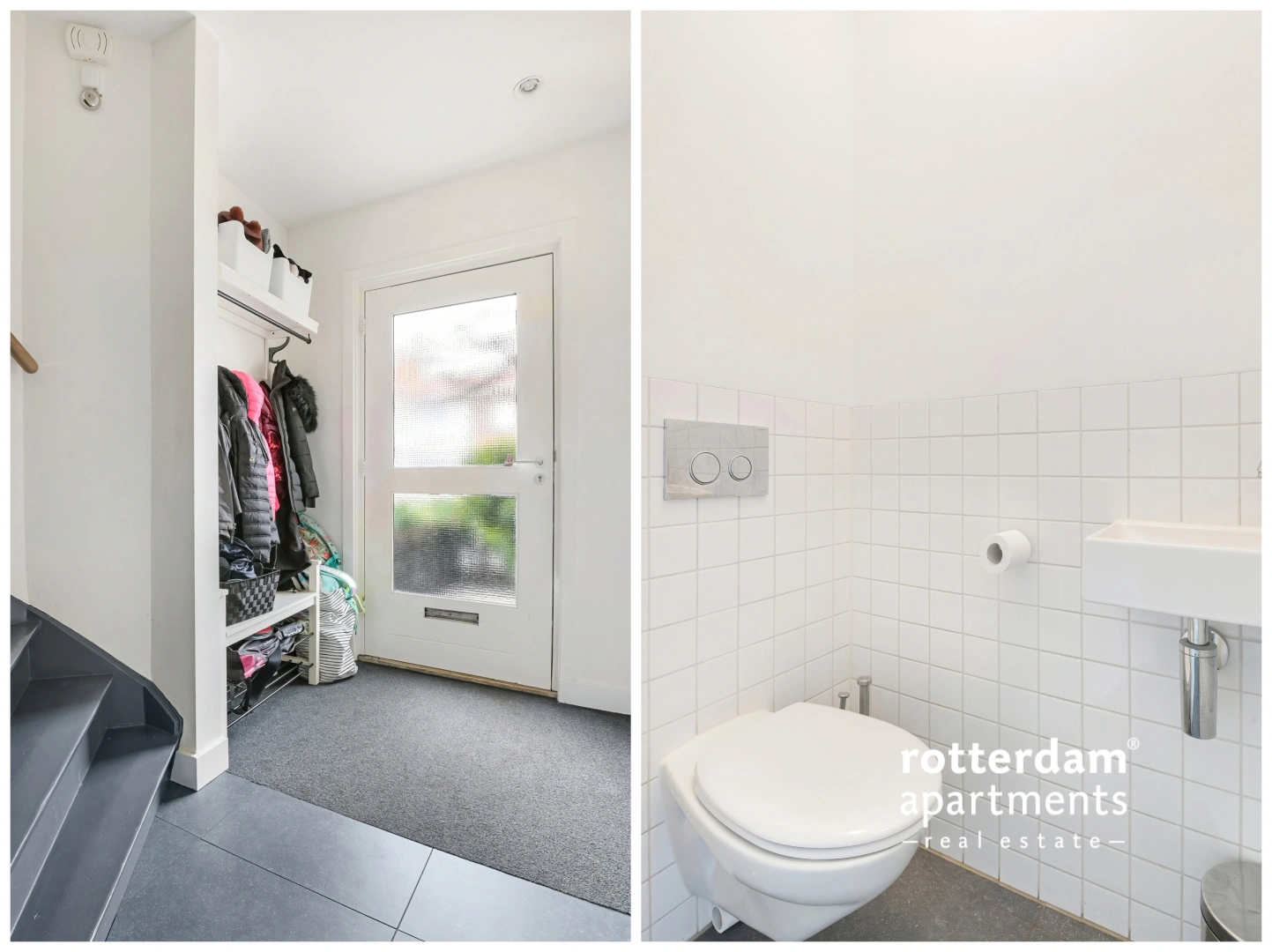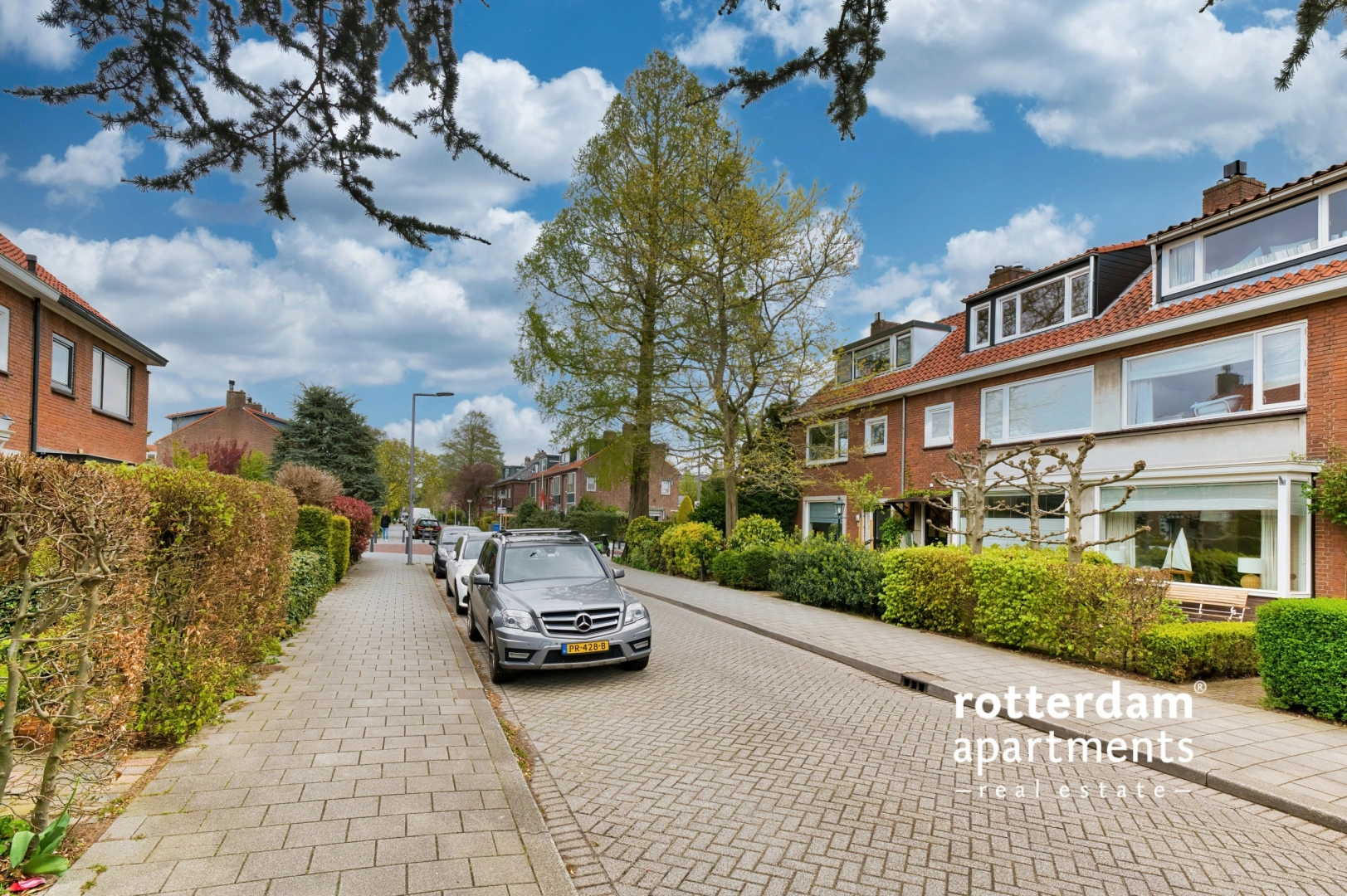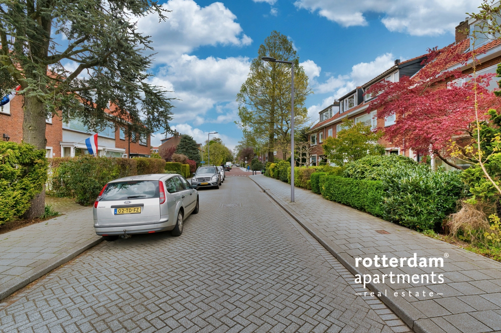 Furnished CORNER house (5/6 rooms) with driveway and separate garage. The backyard is located on the South East with an exit on the Burgemeester le Fevre de Montignylaan and located in the district called "Hillegersberg". Very conveniently located in relation to shops on Bergse Dorpsstraat and shops on Van Beethovenlaan and various supermarkets. Both Bergsche Plassen, Het Bergse Bos and the Rotte are also within walking distance. The center of Rotterdam is easily accessible by bicycle and public transport such as tram line 4 and bus lines 35 and 36 are nearby. Also well located in relation to international schools/primary and secondary schools.