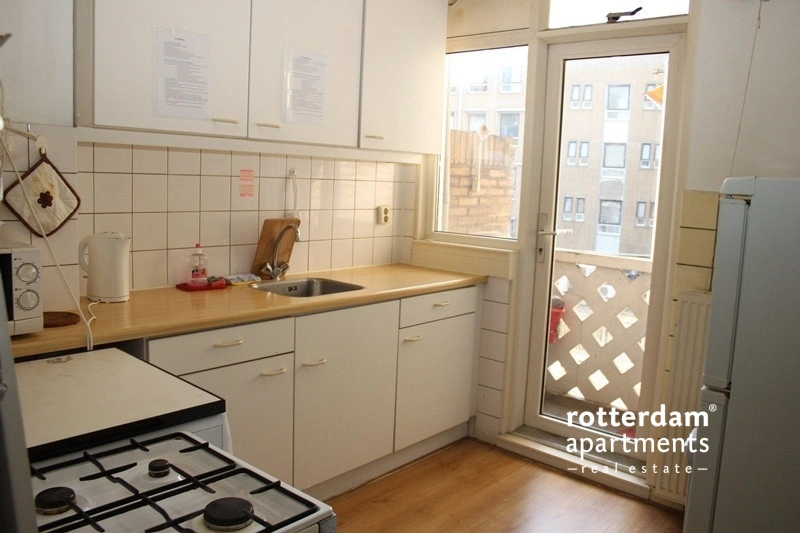 For rent for a maximum of 1 year: neat semi-furnished room located on the third floor in the heart of Rotterdam city centre. The property is situated on Leeuwenstraat, within walking distance of various shops, restaurants, nightlife venues, and Beurs metro station. Major roads such as the A16, A13, and A20 are also easily accessible. Facilities are shared with two roommates.