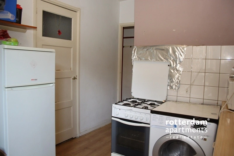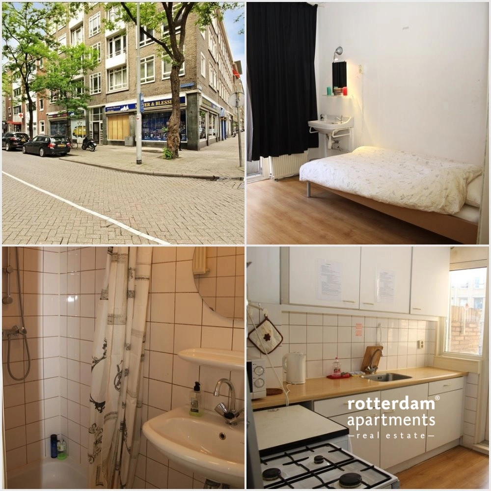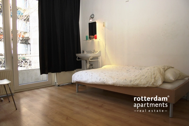 This unfurnished room is located on the third floor of a building in the heart of Rotterdam's bustling city center. The property is situated on Leeuwenstraat, within walking distance of various shops, restaurants, nightlife venues, and Beurs metro station. Major roads such as the A16, A13, and A20 are also easily accessible. Facilities are shared with two roommates.