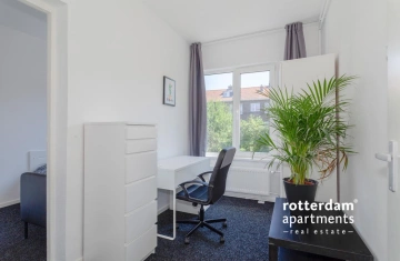 The room is located on the quiet Leplaarssingel, with shops, supermarkets, and public transport within walking distance. It's conveniently located near schools, sports facilities, and major roads, making Rotterdam city center and other parts of the city easily accessible.