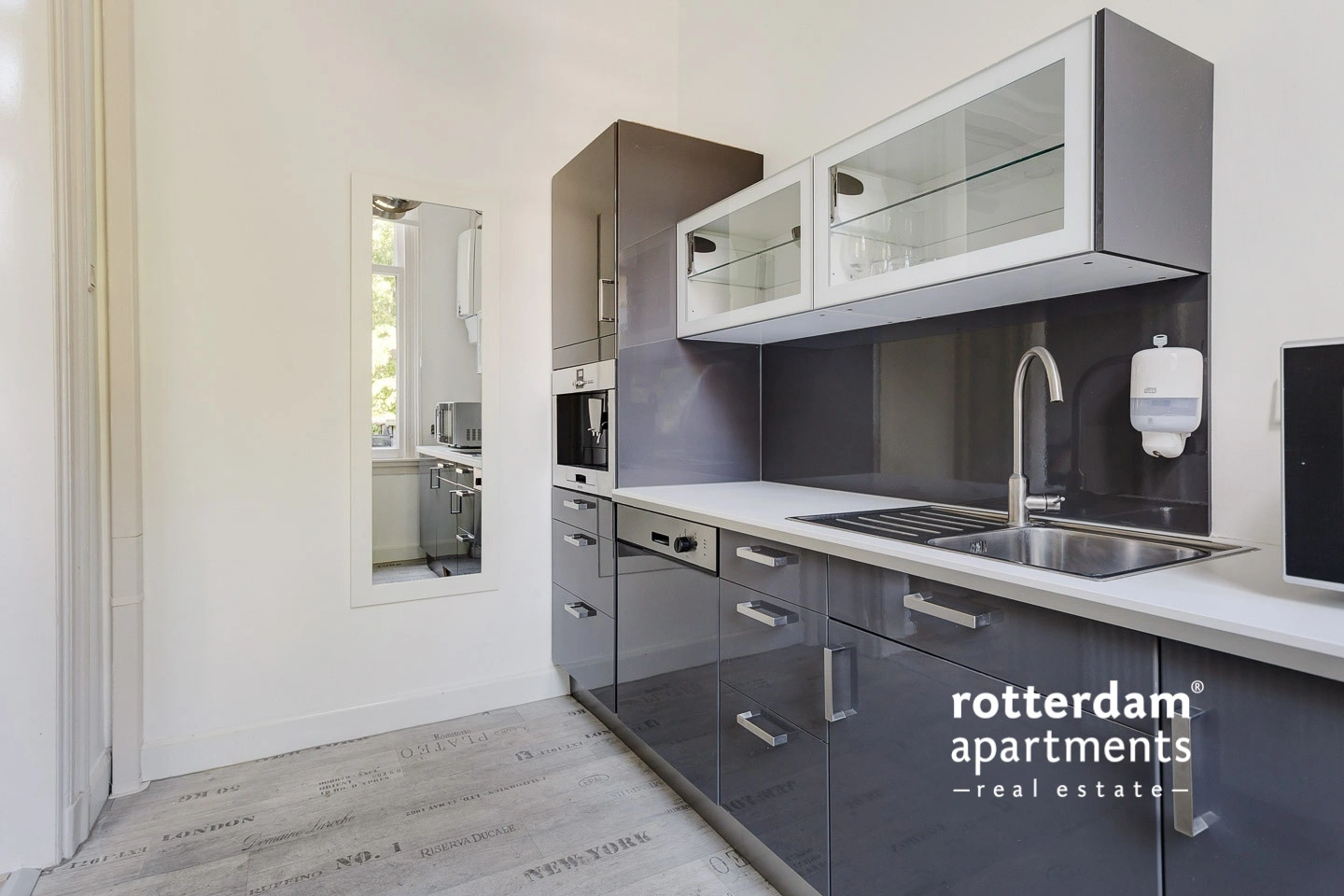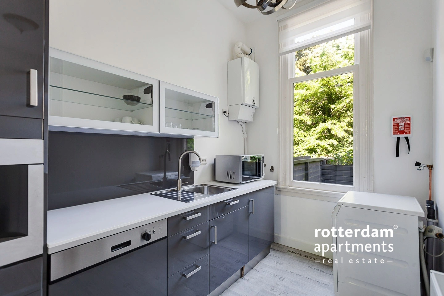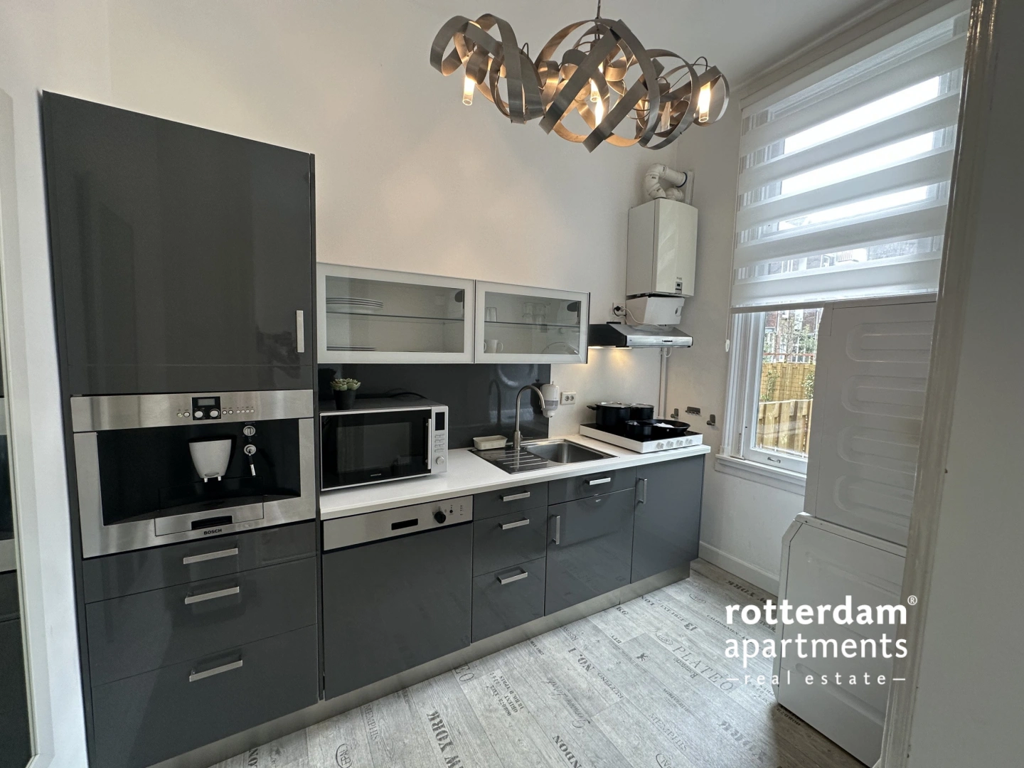 Entrance: Hall with access to all rooms. The shared living room is located at the rear and offers access to the garden via a staircase. The semi-closed kitchen is accessible from the living room and is fully equipped in modern high-gloss (anthracite) and equipped with, among other things, a microwave, built-in coffee machine, dishwasher & refrigerator. The ROOM is located in the middle of the house and has a built-in wardrobe and a bed. The SHARED new bathroom is fully tiled and equipped with a shower, washbasin and mirror. Separately tiled hanging toilet and cast floor