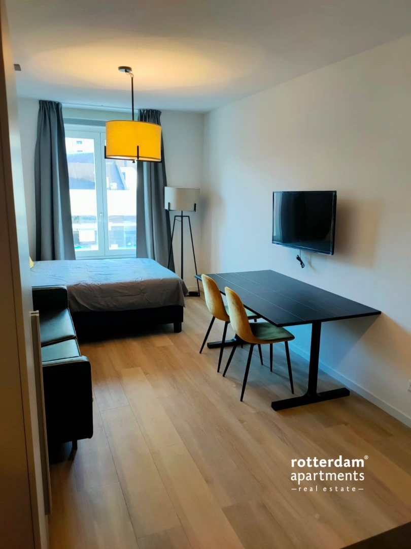 Fully furnished studio on the 2nd floor at the front in a new complex in Rotterdam Center. Within walking distance of the cozy Witte de Withstraat, the Meent and public transport a stone's throw away.