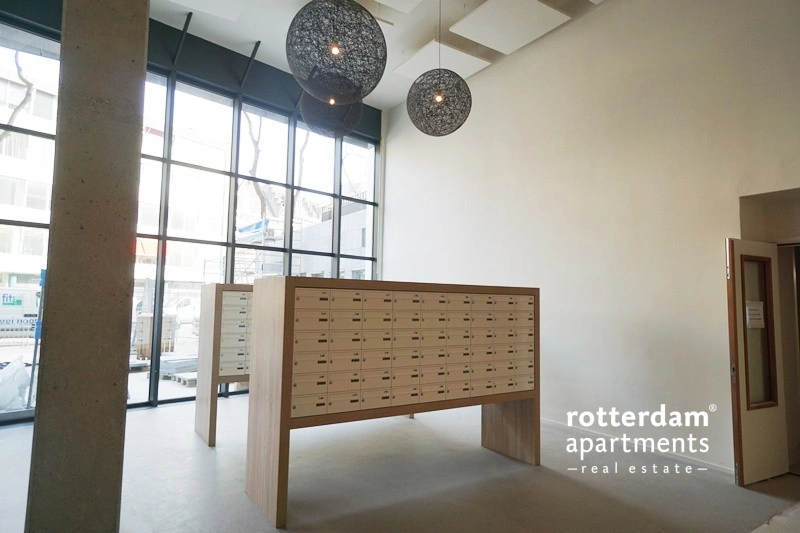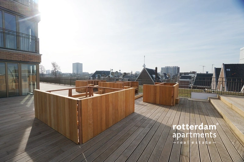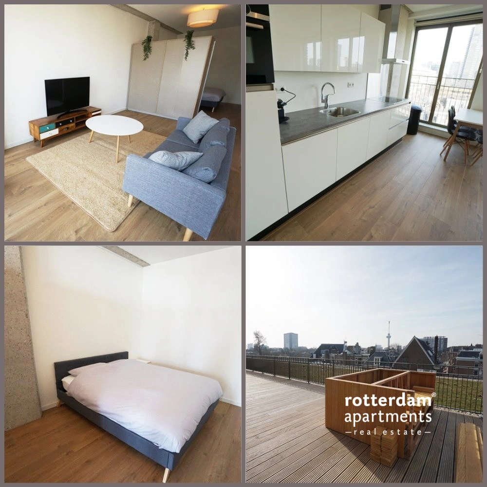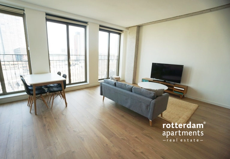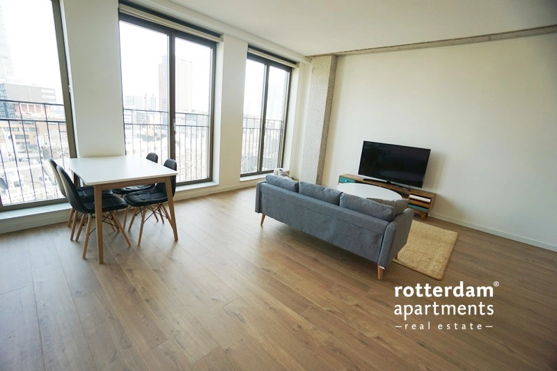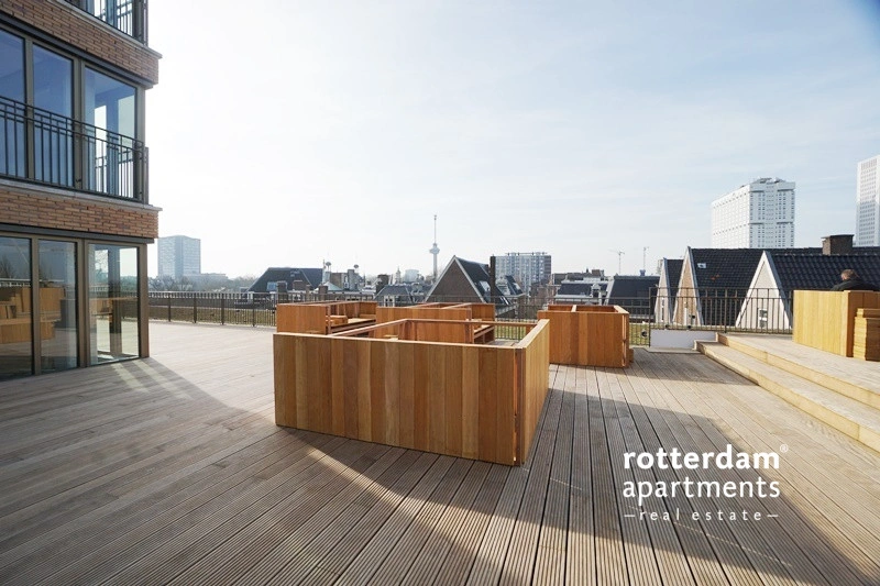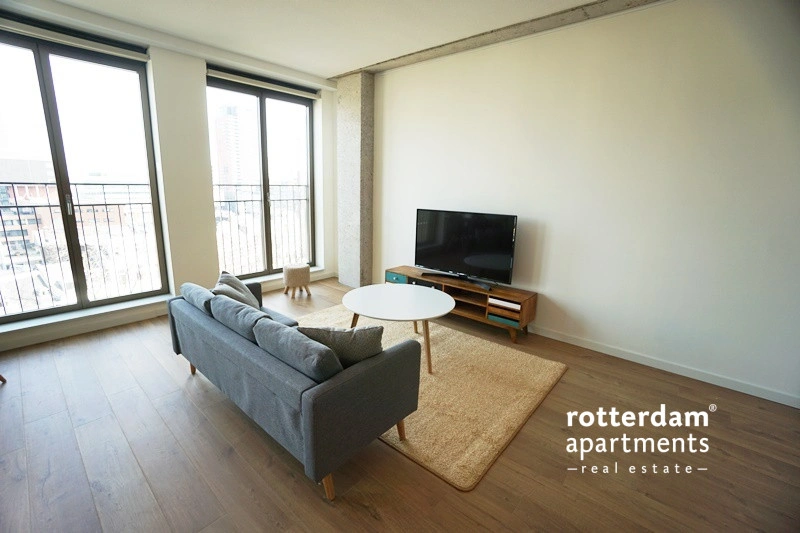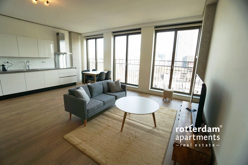 Stylish communal entrance. The house is fully equipped, modernly furnished and sleekly finished. There is a lot of light through the large floor-to-ceiling windows, the loft has a modern light quick step laminate. The modern kitchen is equipped with a dishwasher, combi oven, gas hob and extractor hood and a refrigerator. The beautifully finished bathroom has a walk-in shower, washbasin and mirror. The loft has a French balcony with a view of the Erasmus Bridge and the historic Scheepvaartkwartier.