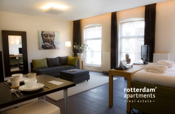 Fully furnished Hotel Studios ranging from 40m2 to 50m2 with a view over the Witte de Withstraat. Located in the heart of Rotterdam. In the bustling street, Witte de Withstraat, you will find art, culture, theatre, film, the pub and good food. Everything less than a step away from the front door. Both Leuvenhaven metro station and Beurs train station are within walking distance.