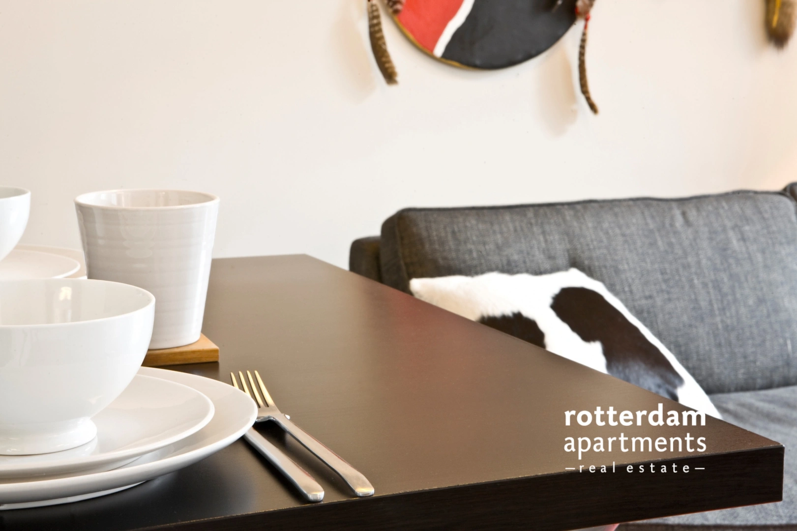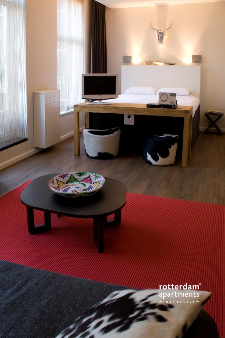 Fully furnished hotel studios ranging from 40m2 to 50m2 with a view of the Witte de With street. Located in the center of Rotterdam. In the bustling Witte de Withstraat you will find art, culture, theater, cinema, the pub and fine dining. Anything less step away from the door. Both metro station Leuvenhaven and Train Fair are within walking distance.