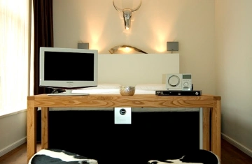 Shared entrance. Entrance on the 1st / 2nd or 3rd floor. Entrance of studio which is situated at the front with fantastic views over the Witte or at the backsite. The studios are equipped with a double bed, two seater sofa, coffee table and TV. The breakfast bar is provided with a coffee maker, electric kettle, and refrigerator. The bathroom features a bathtub, washbasin, mirror and toilet.