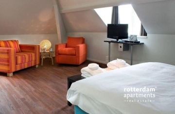 Fully furnished hotel studios ranging from 40m2 to 50m2 with a view of the Witte de With street. Located in the center of Rotterdam. In the bustling Witte de Withstraat you will find art, culture, theater, cinema, the pub and fine dining. Anything less step away from the door. Both metro station Leuvenhaven and Train Fair are within walking distance.