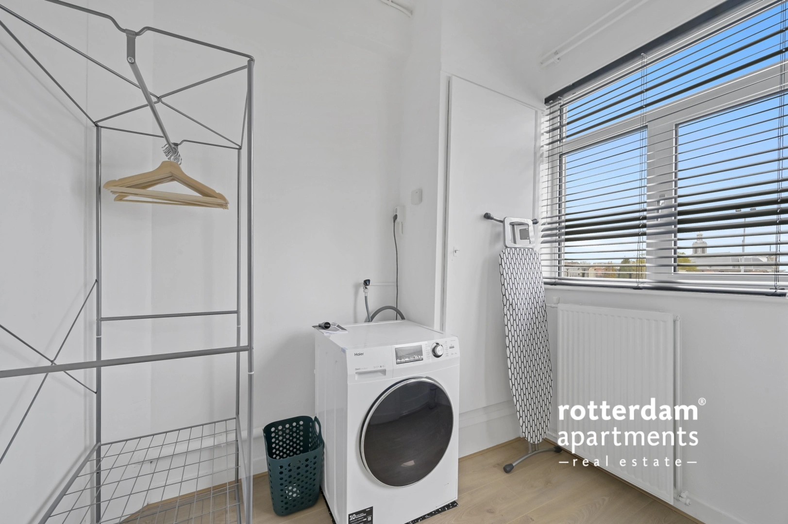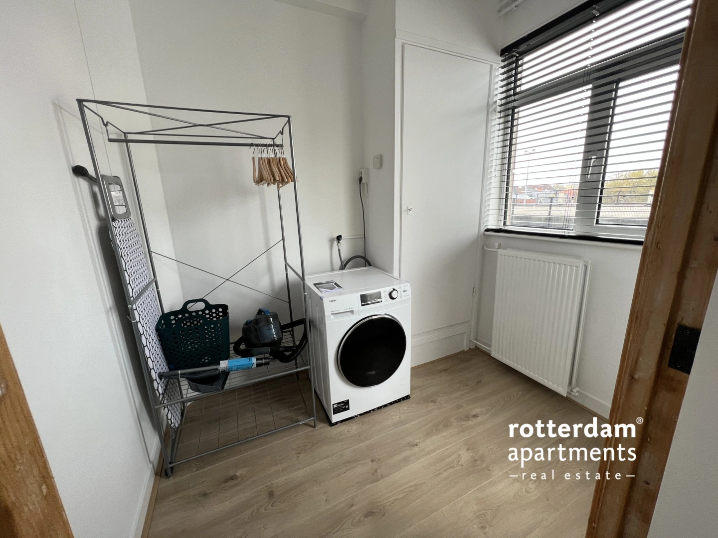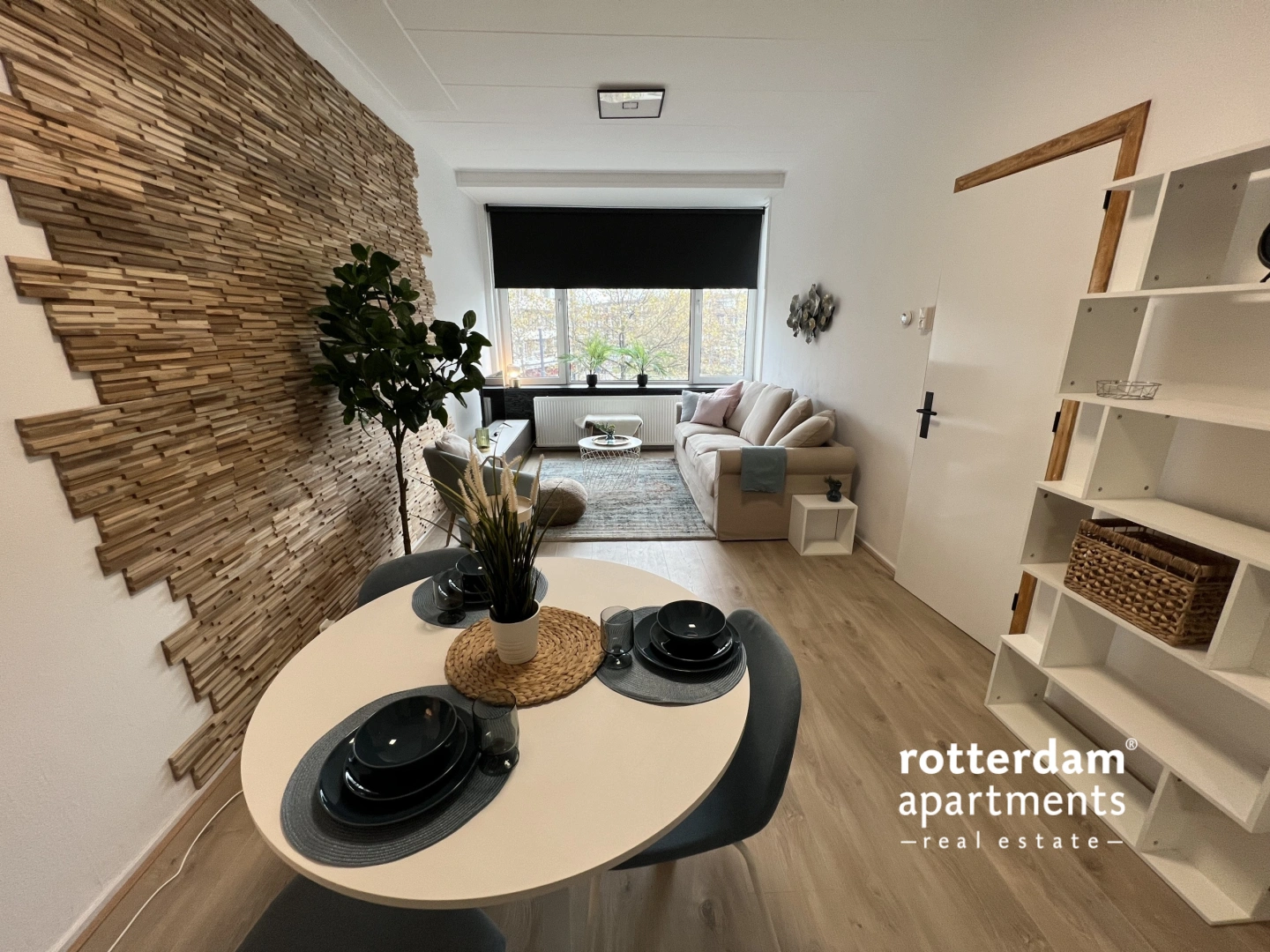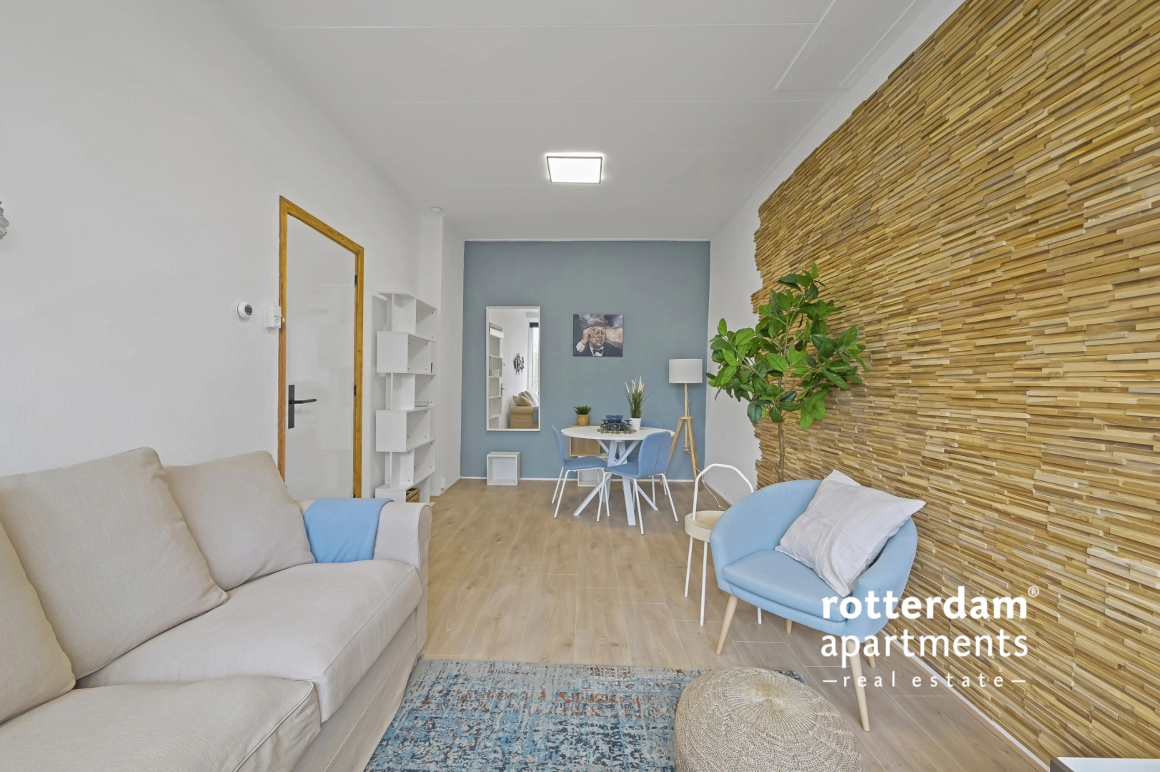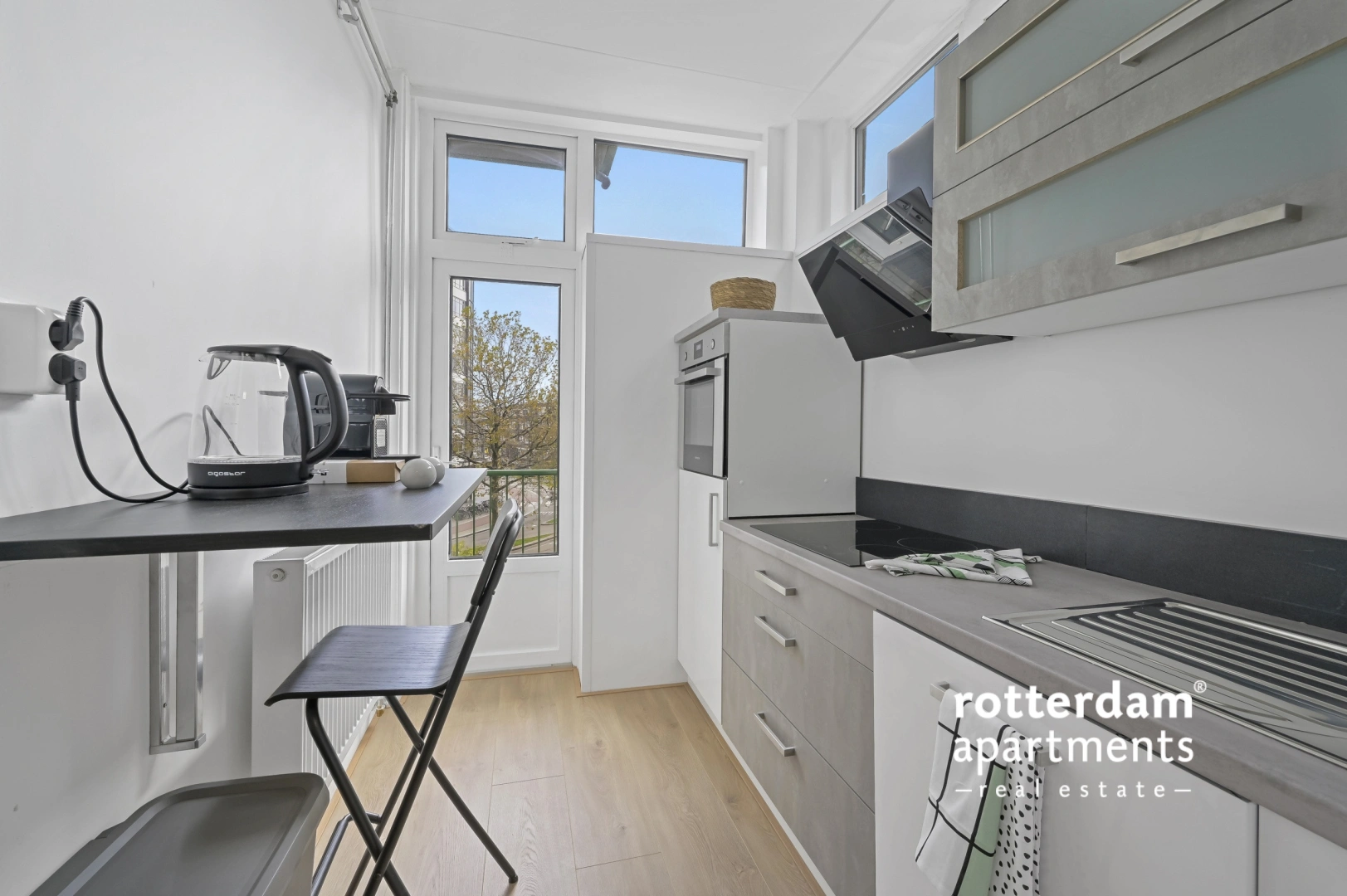 This bright, furnished 2/3-room apartment is located in the heart of Schiedam on the second floor, featuring a balcony and unobstructed views at the rear. The property boasts a prime location, within walking distance of shops, restaurants, public transport (tram and train), and other amenities.
