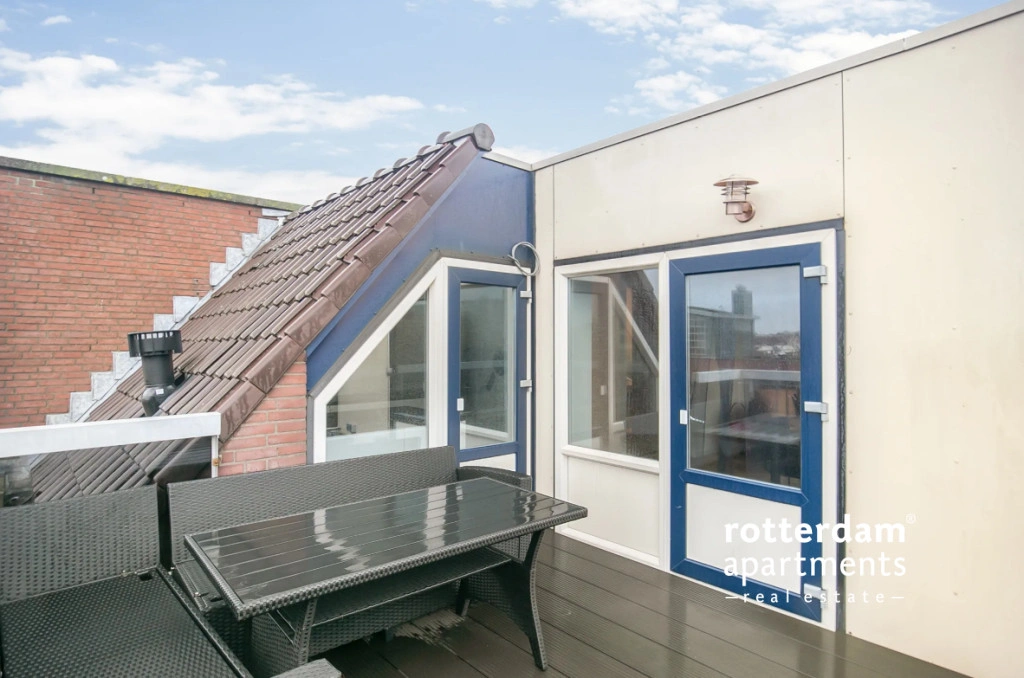 The apartment features a balcony and a spacious roof terrace where you can relax and enjoy the view. The apartment is spread over two floors, creating a spacious and playful atmosphere.