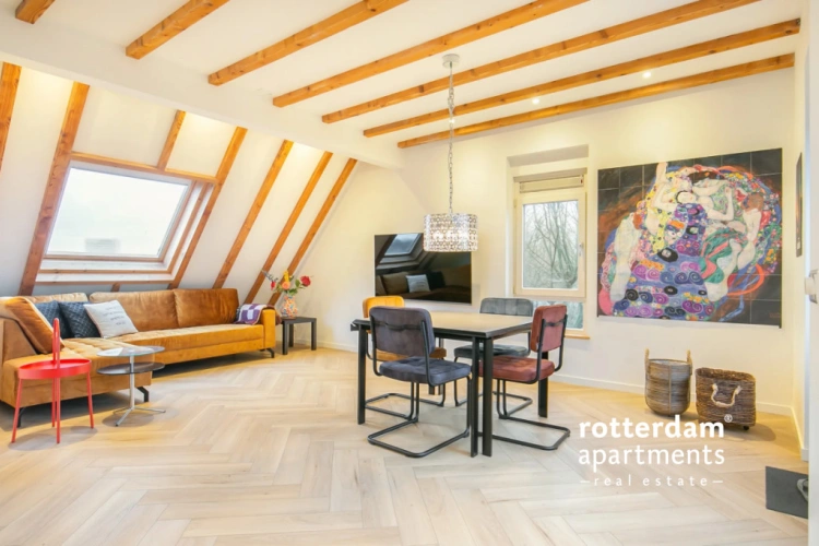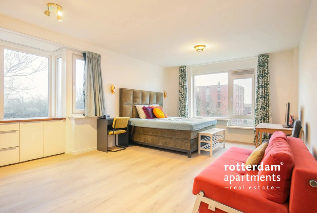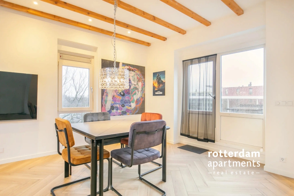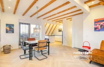 Spacious and furnished 3 bed-room apartment of approximately 125 m² located on Westvest in Schiedam. The apartment is situated on the 4th floor and offers pleasant views of the water, among other things. The location is very central, with various shops, restaurants, and amenities nearby. Public transport such as tram, bus, and metro are easily accessible and offer fast connections to the center of Schiedam and Rotterdam, among other places.