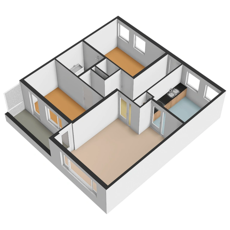 The apartment has two bedrooms. Bedroom 1 is located at the backside and offers enough space for a double bed and wardrobe. The bedroom also provides access to the balcony. Bedroom 2 is located at the front and is also spacious.