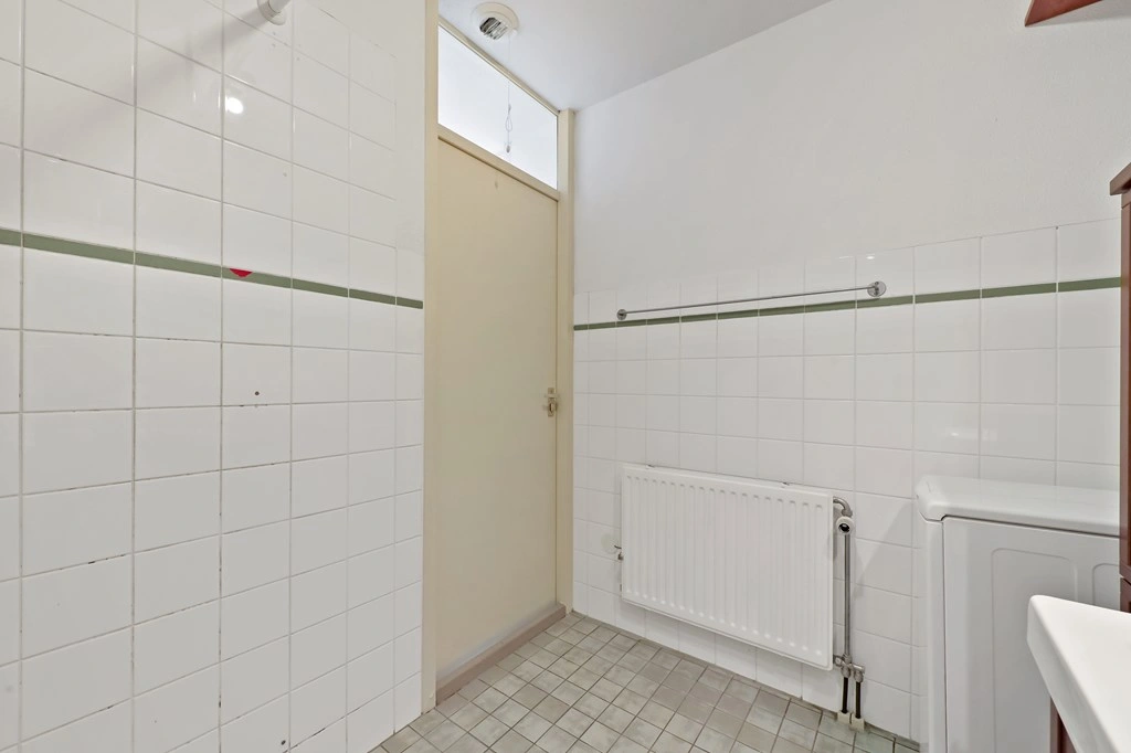 The kitchen is equipped with a neat kitchen unit in warm wood tones and has plenty of storage space. There is room for various (built-in) appliances and a separate cupboard with washing machine connection.