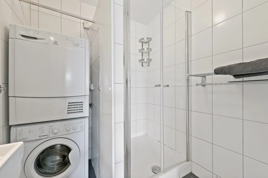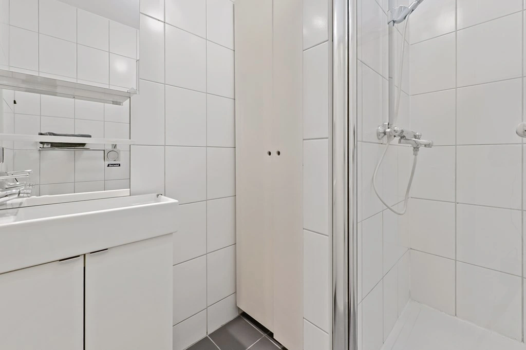 De badkamer is in 2002 geplaatst en beschikt over een douchecabine, wastafel en de aansluitingen voor wasmachine en droger. Het toilet is separaat en werd in 2005 vernieuwd, deze is voorzien van een fonteintje. Daarnaast is er nog een handige interne bergkast in de gang aanwezig.