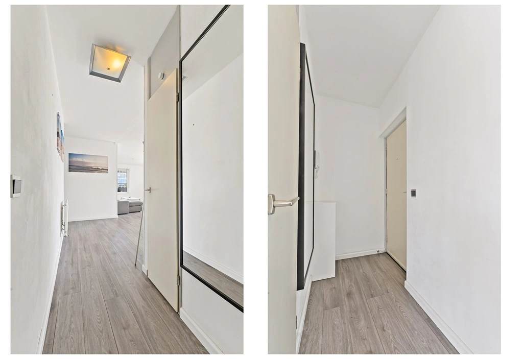 Op de vierde verdieping bereikt u de voordeur van het appartement. De ruime hal geeft toegang tot alle vertrekken en biedt direct een gevoel van ruimte.
