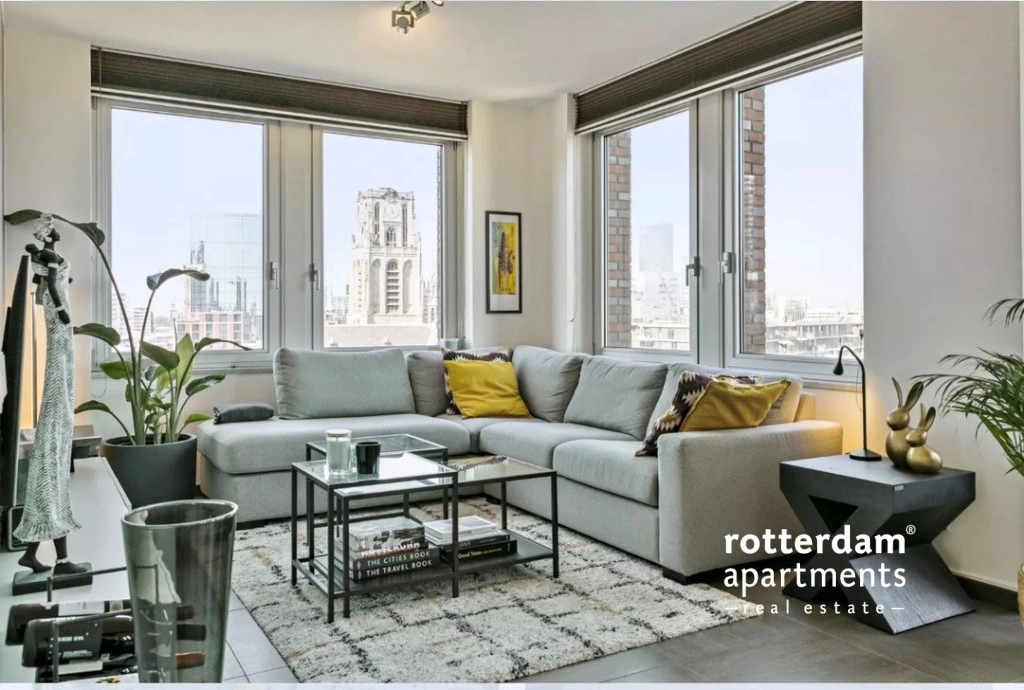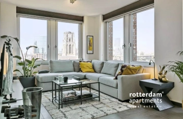 Op een fantastische locatie aan de Botersloot in hartje Rotterdam bieden wij dit ruime en luxe gemeubileerde 3-kamer appartement aan, gelegen op de 11e verdieping met een prachtig uitzicht over de stad. De woning bevindt zich op steenworp afstand van de Markthal, de bruisende Pannekoekstraat, de Meent en station Blaak. Winkels, horeca, supermarkten en openbaar vervoer liggen letterlijk om de hoek. Hier woont u midden in het centrum, maar toch met rust en comfort op hoogte.
